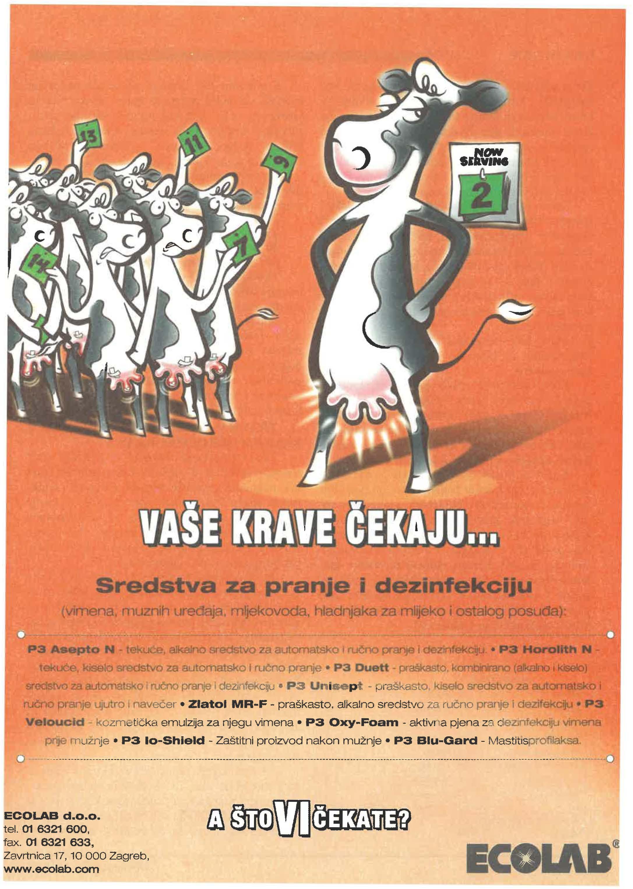 Redakcijski koleglj: dr. Ivo Belan, dipl. ing. Stjepan Brlek, dr. Stjepan Feldhofer, dr. Zoran dipl. ing. ljiljana Huslnec, dipl. ing. Darko Kantoci, mr. se. Antun dipl. ing. Darko Uher, Glavni I odgovorni urednik: dipl. ing. Juraj Redaktorlca: dipl. ing. Vera urednica: ing. Mirna Lektorica: Katarina-Zrinka prof., Vlasnik I Hrvatska mljekarska udruga, zagreb, Uprava I uredništvo: zagreb, llica 31/111,tel.: 01/4833-349, 4831-265, fax: 01/4833-349, e-mail: hmu@zg.htnet.hr, MB: 3206599, Žiro 2360000-1101408596, Cijena: 4,50 kn, priprema I tlBSk: "Hlad", Pluska, Nikole Halpera 1, Naklada: 43.000 primjeraka