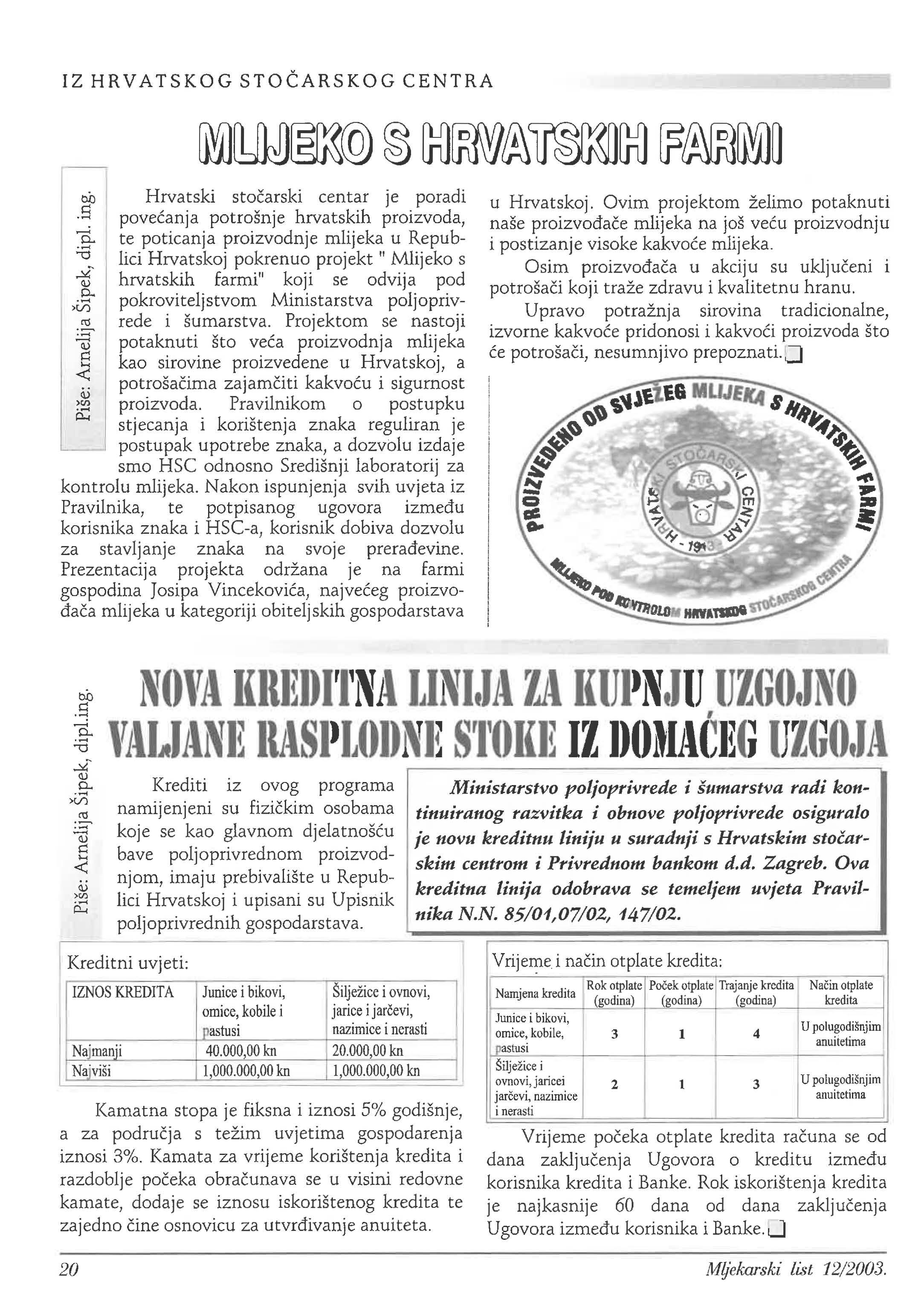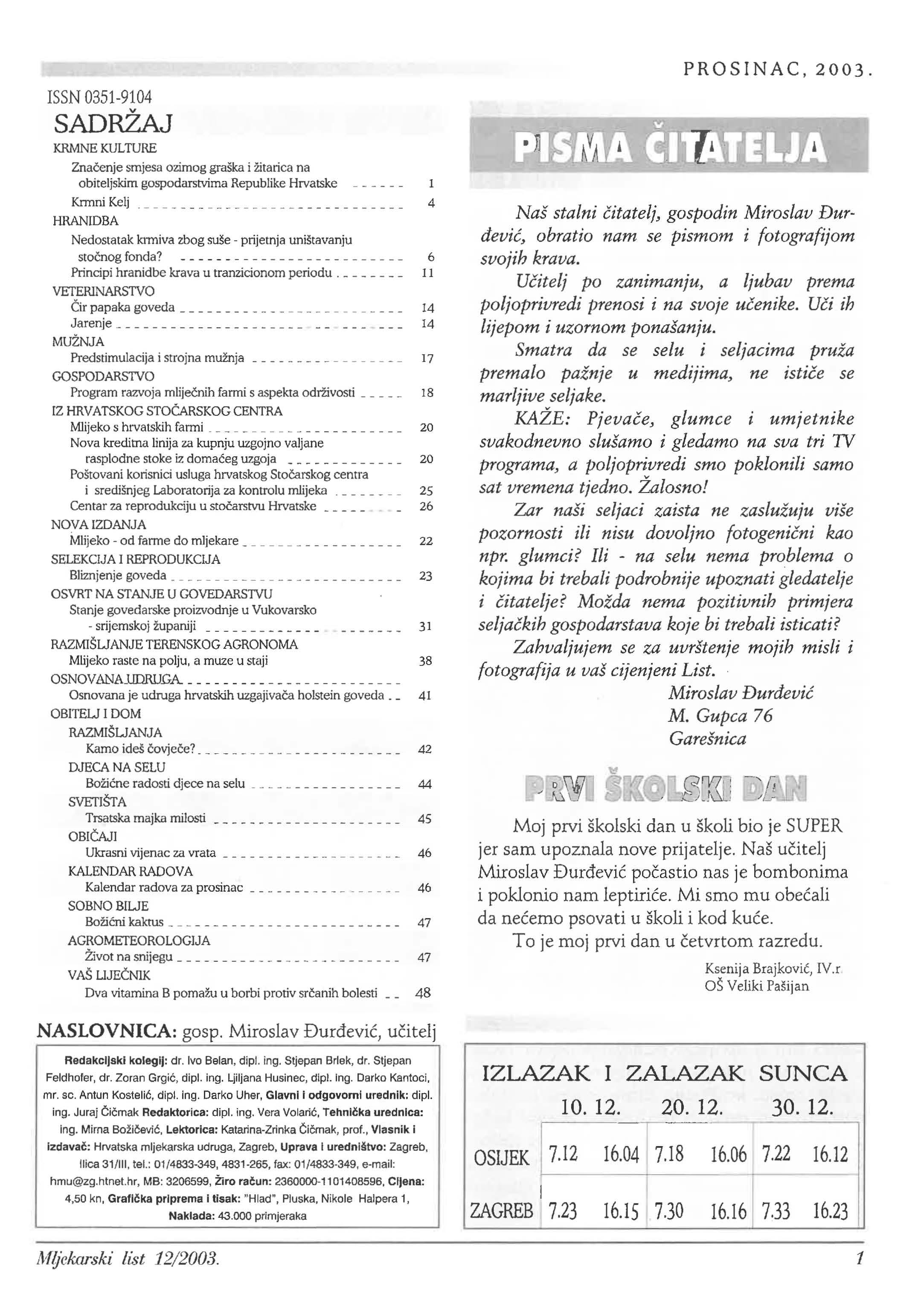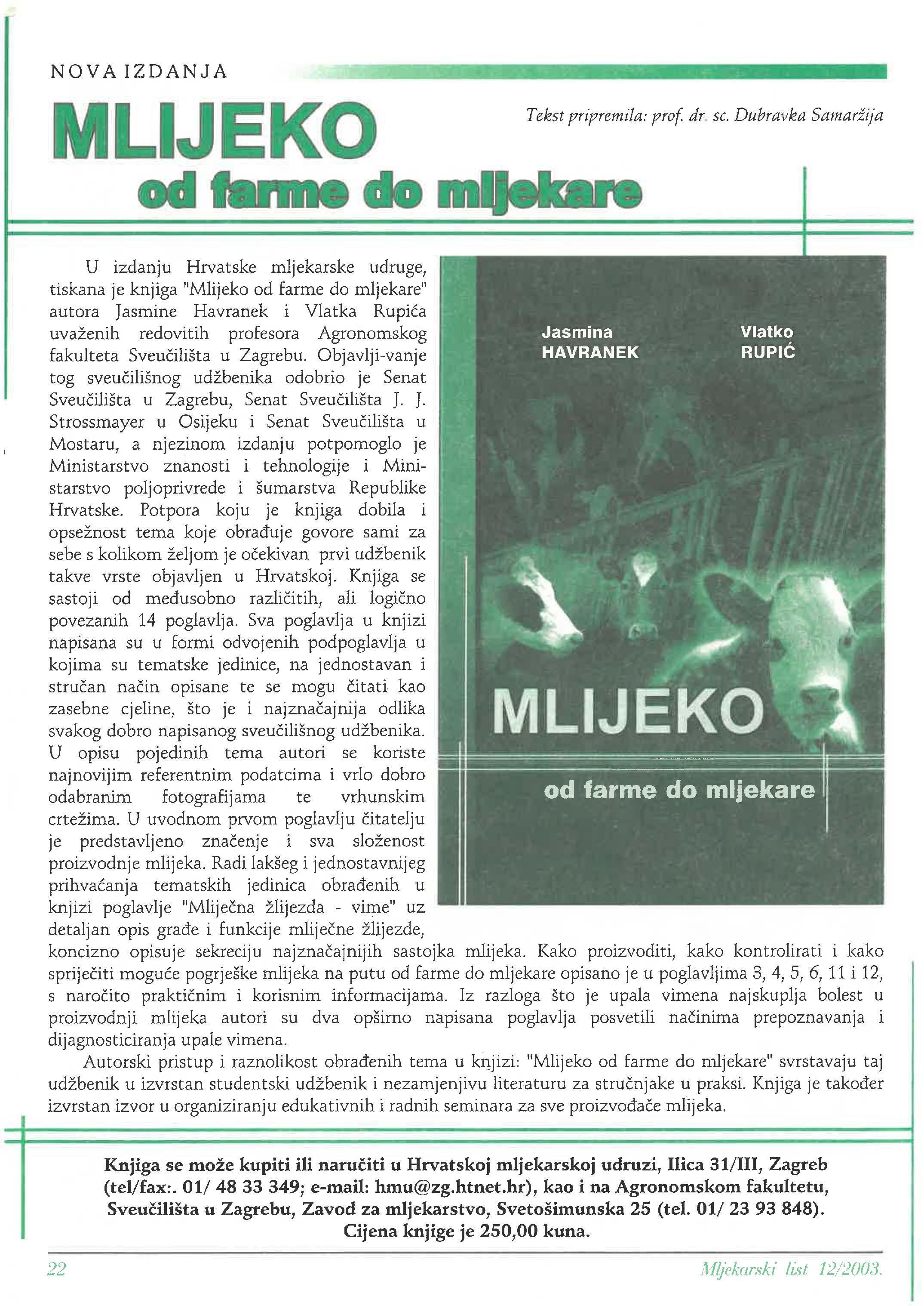 Redakcijski kolegi]: dr. Ivo Belan, dipl. ing. Stjepan B~ek, dr. Stjepan Feldhofer, dr. Zoran dipl. ing. Ljiljana Husinec, dipl. lng. Darko Kantoci, mr. se. Antun dipl. ing. Darko Uher, Glavni I odgovorni urednik: dipl. ing. Juraj Redaktorica: dipl. ing. Vera urednice: lng. Mirna Lektorica: Katarina-Zrinka prof., Vlasnik i Hrvatska mljekarska udruga, Zagreb, Uprava I uredništvo: Zagreb, llica31/III, tel.: 01/4833-349, 4831-265, fax: 01/4833-349, e-mail: hmu@zg.htnet.hr, MB: 3206599, Žiro 2360000-1101408596. Cijena: 4,50 kn, priprema i tisak: "Hlad", Pluska, Nikole Halpera 1, Naklada: 43.000 primjeraka
