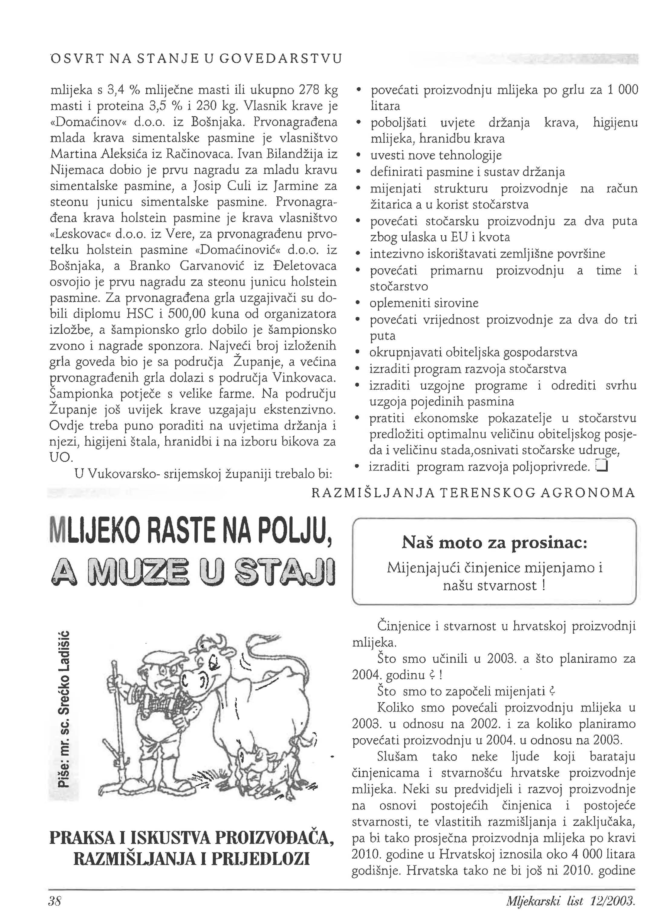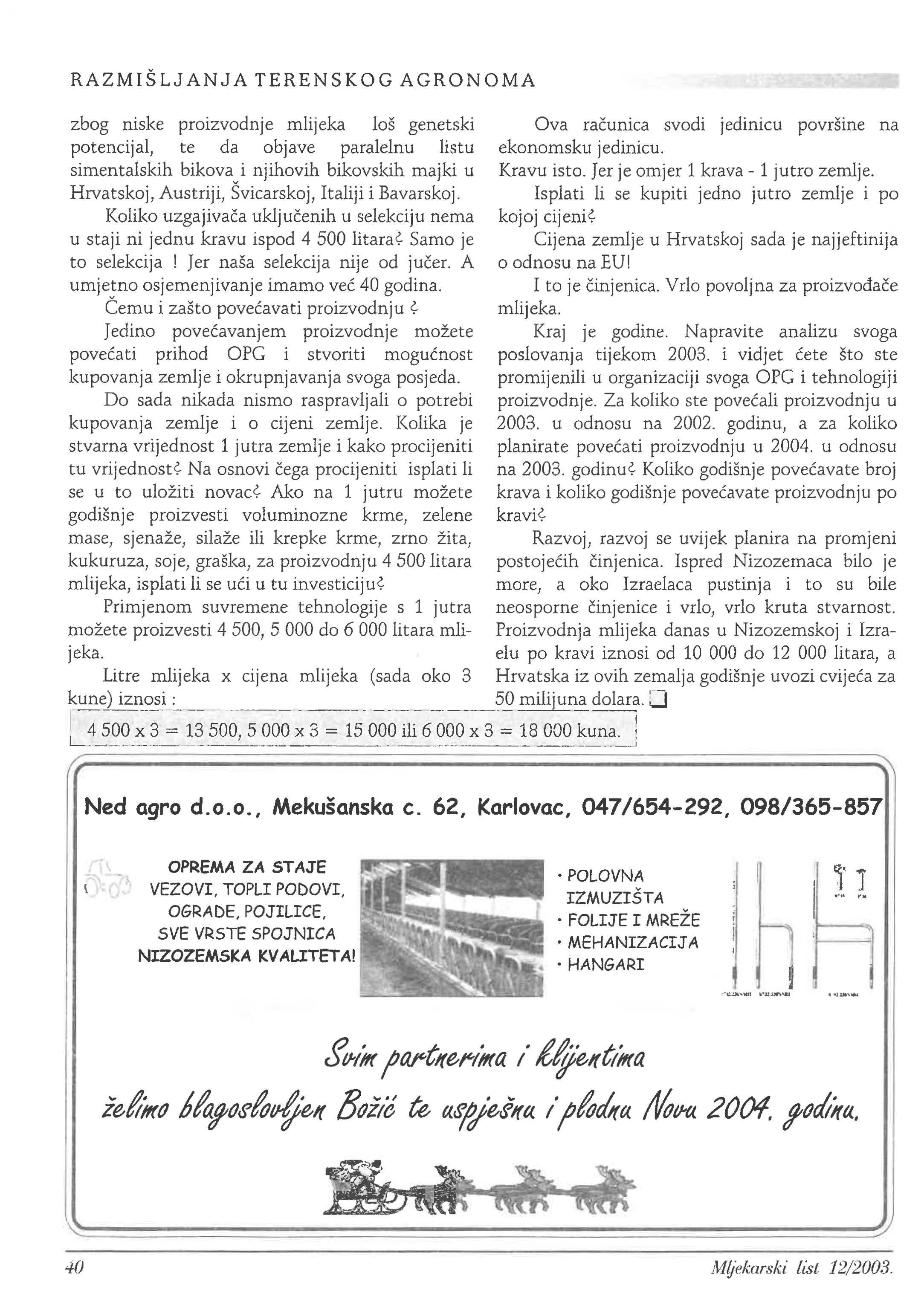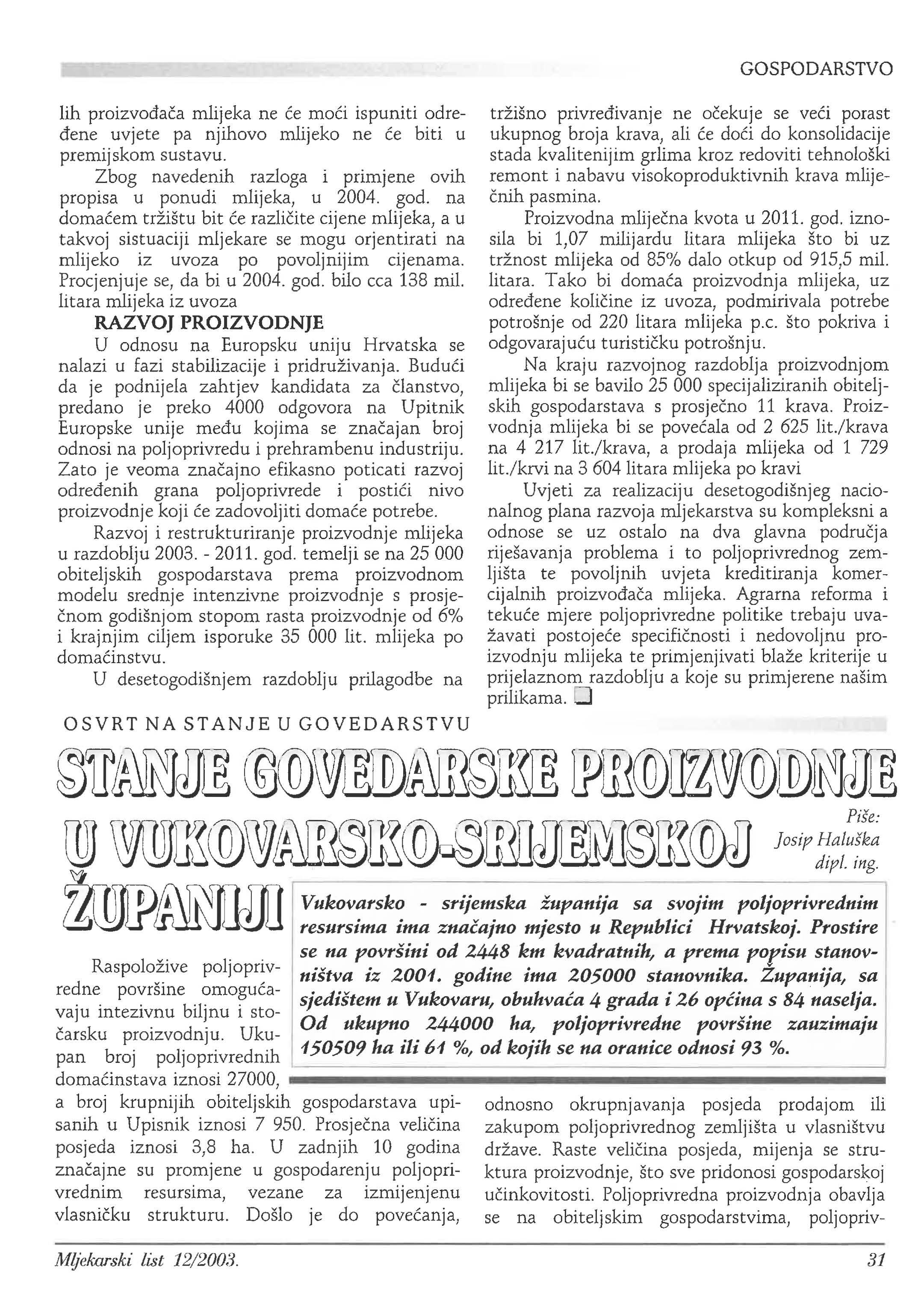 Redakcijski kolegi]: dr. Ivo Belan, dipl. ing. Stjepan B~ek, dr. Stjepan Feldhofer, dr. Zoran dipl. ing. Ljiljana Husinec, dipl. lng. Darko Kantoci, mr. se. Antun dipl. ing. Darko Uher, Glavni I odgovorni urednik: dipl. ing. Juraj Redaktorica: dipl. ing. Vera urednice: lng. Mirna Lektorica: Katarina-Zrinka prof., Vlasnik i Hrvatska mljekarska udruga, Zagreb, Uprava I uredništvo: Zagreb, llica31/III, tel.: 01/4833-349, 4831-265, fax: 01/4833-349, e-mail: hmu@zg.htnet.hr, MB: 3206599, Žiro 2360000-1101408596. Cijena: 4,50 kn, priprema i tisak: "Hlad", Pluska, Nikole Halpera 1, Naklada: 43.000 primjeraka