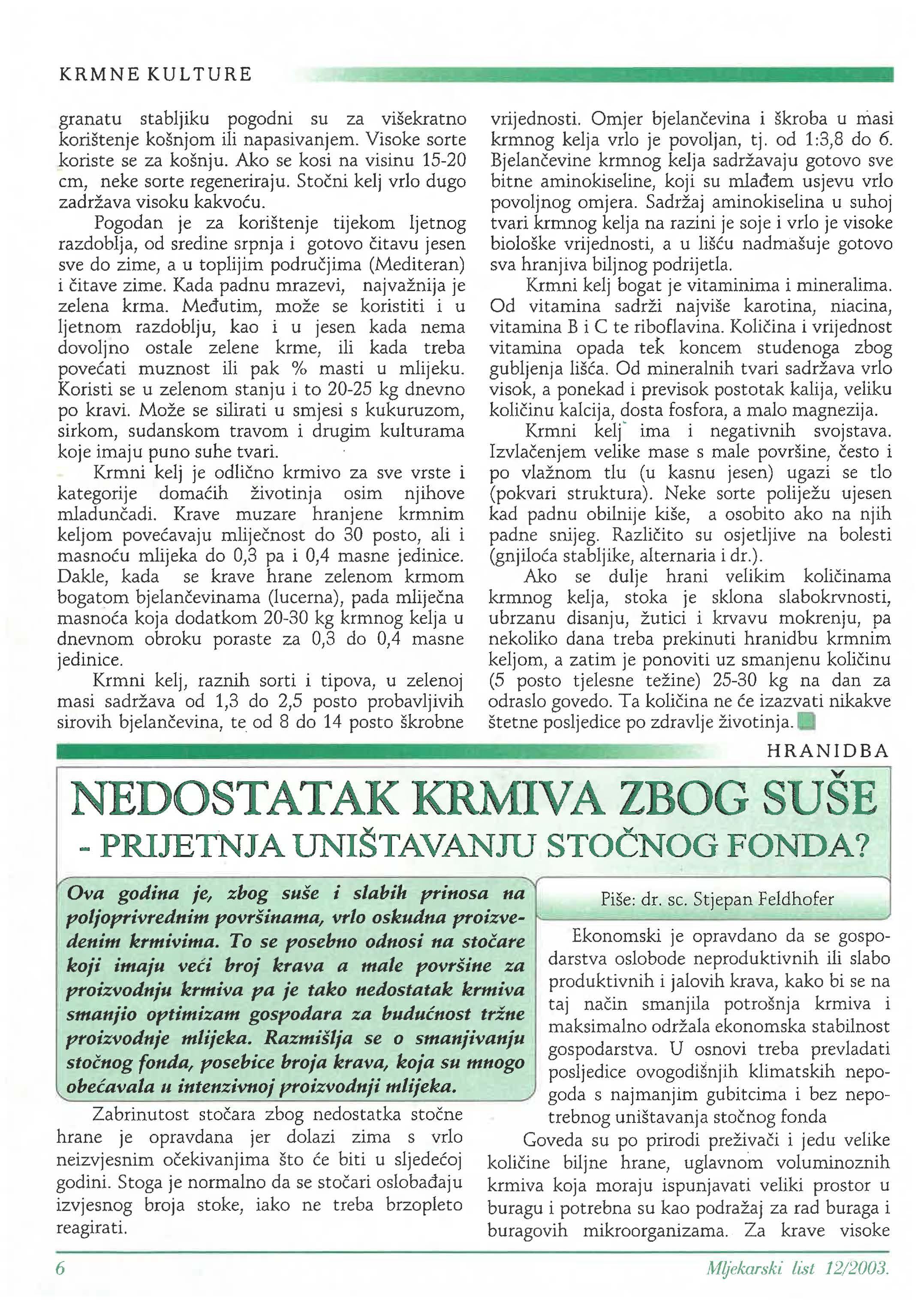 kvalitetne krme (zelena, silaža, zrno, sijeno) na usitnjenim parcelama u gusto naseljenim a za na-mirenje potreba farmi na obiteljskim gospodarstvima. U tu