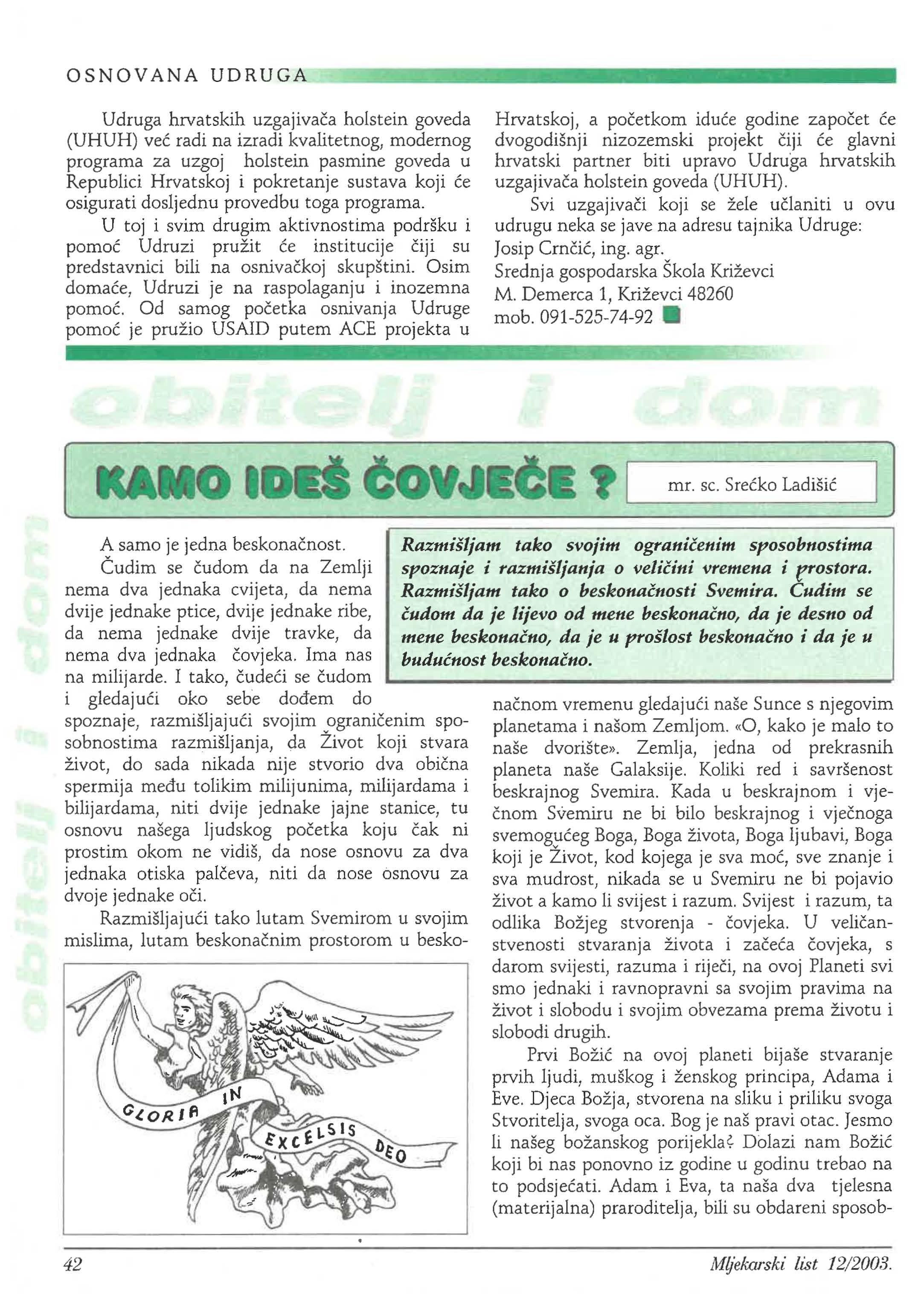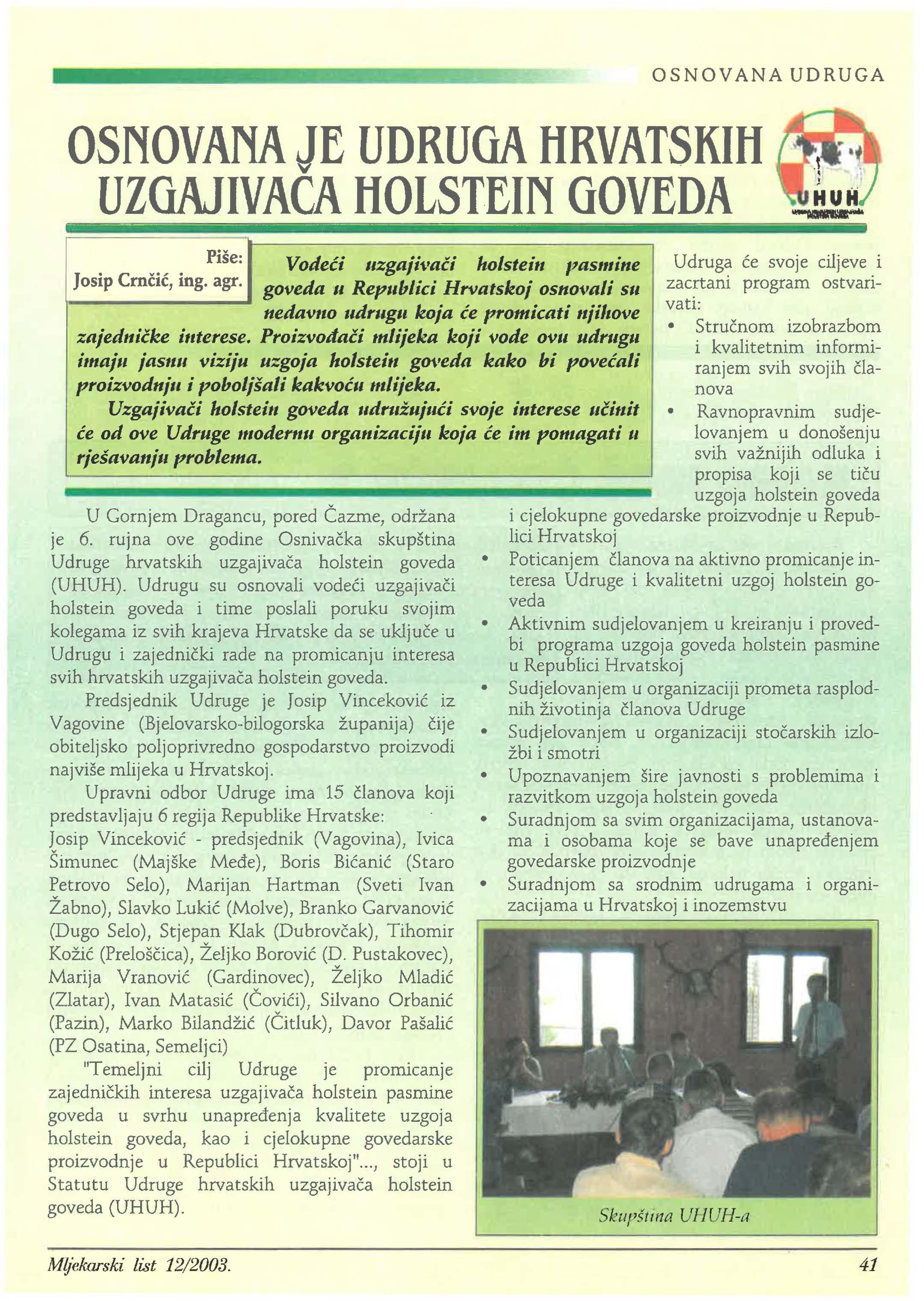 "Temeljni cilj Udruge je promicanje interesa holstein pasmine goveda u svrhu kvalitete uzgoja holstein goveda, kao i cjelokupne govedarske proizvodnje u Republici Hrvatskoj" ..., stoji u Statutu Udruge hrvatskih holstein goveda (UHUH). Ml/ekarski Hst 12/2003.