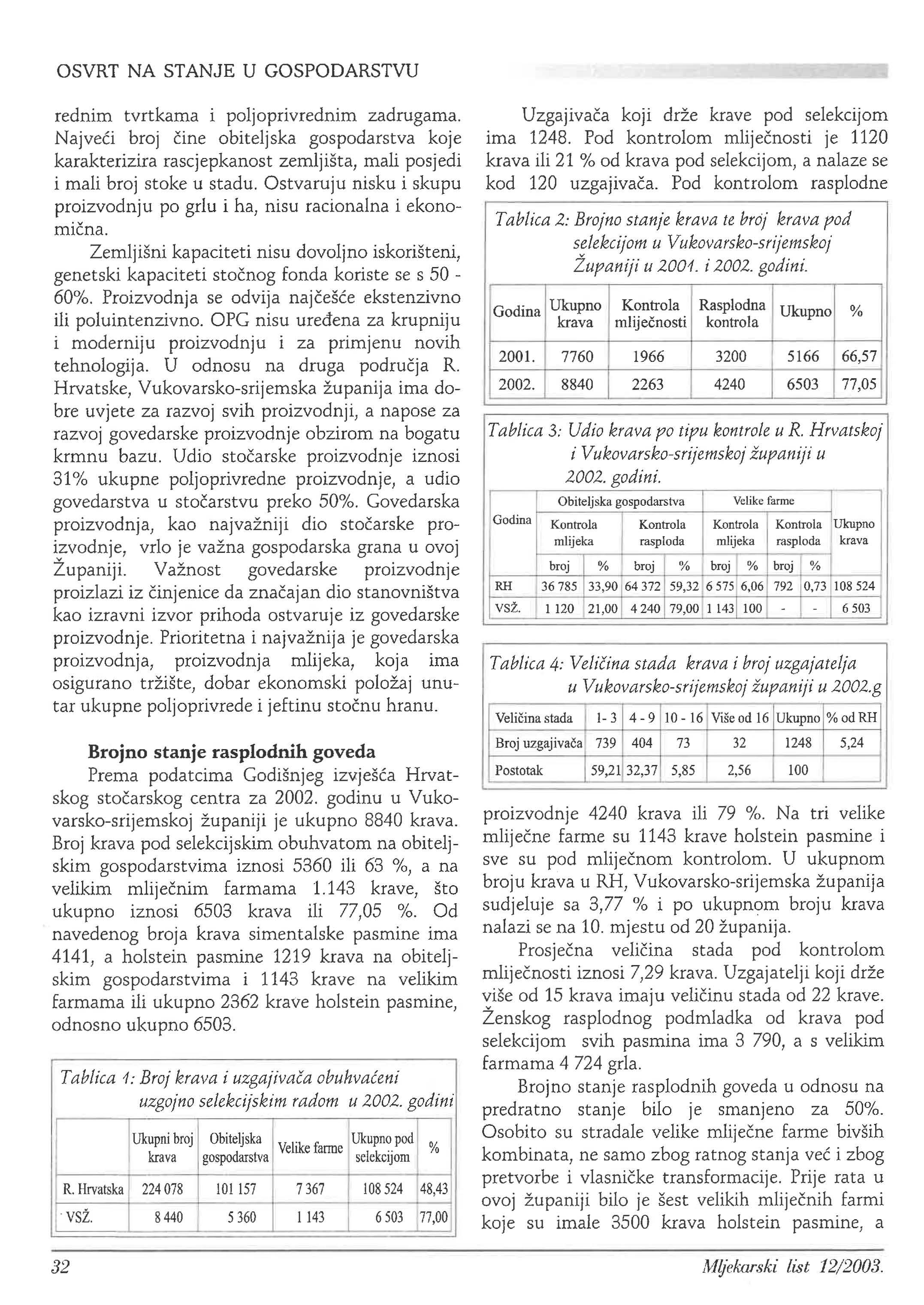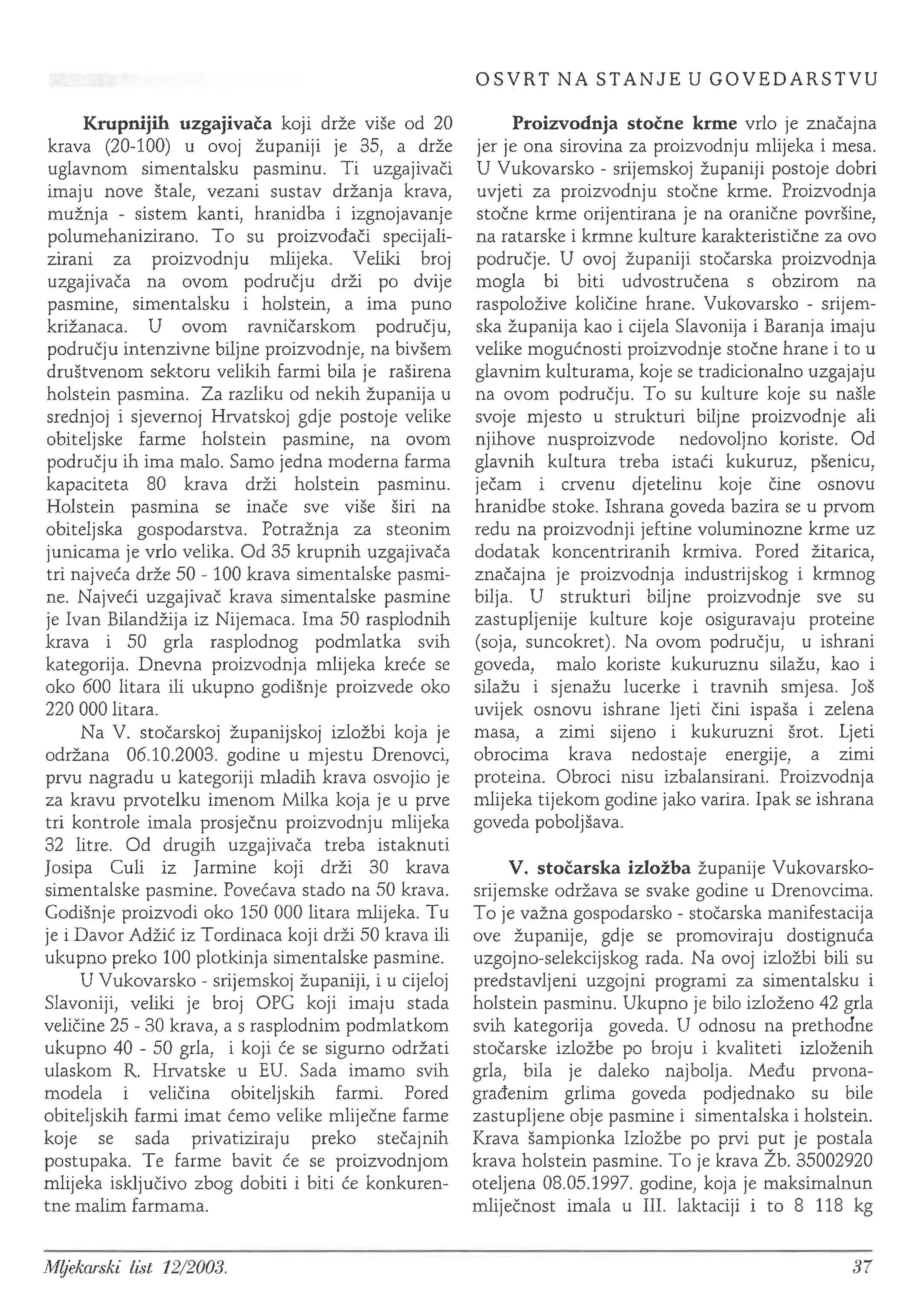 Stanje govedarske proizvodnje u Vukovarska - srijemskojžupaniji