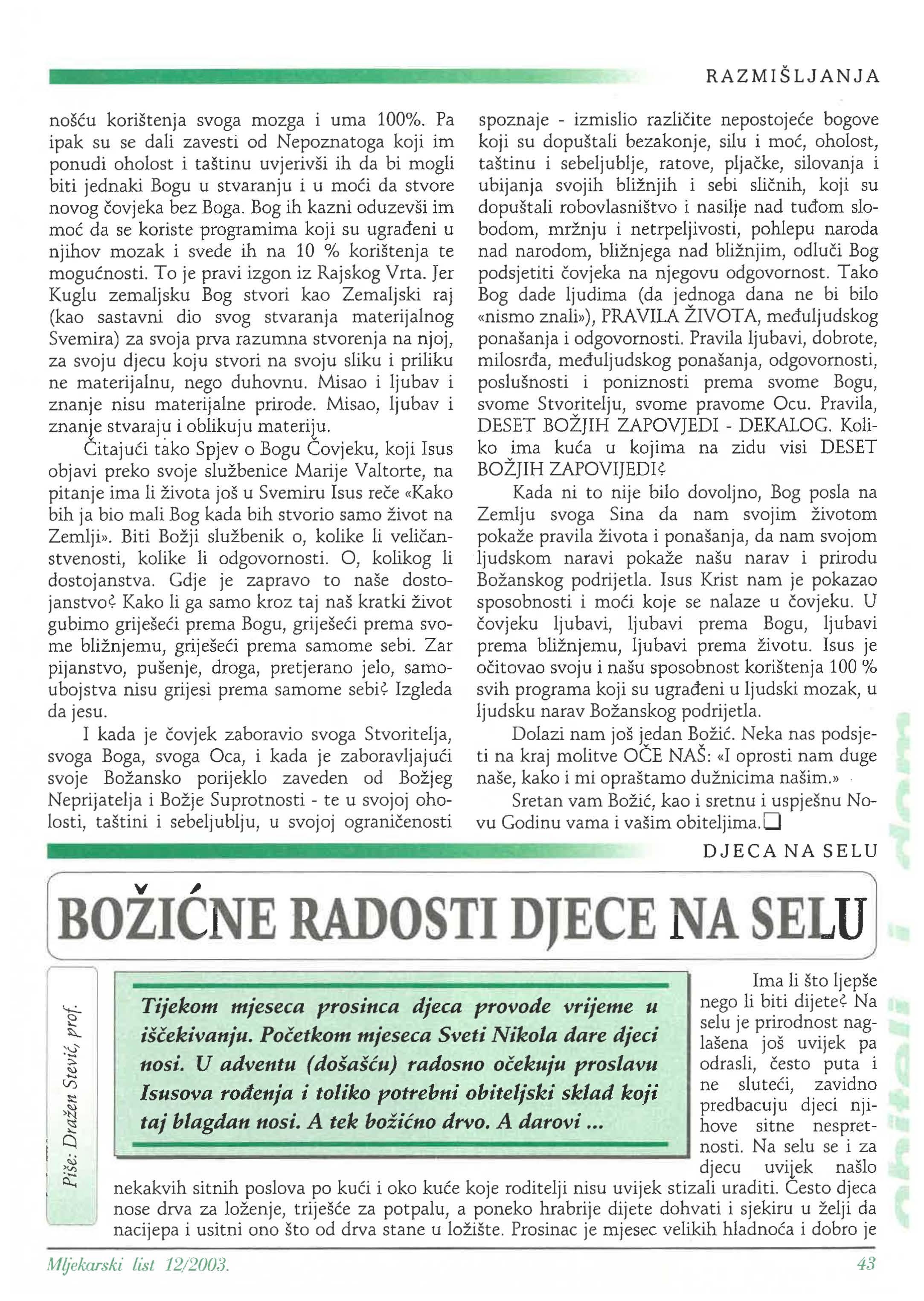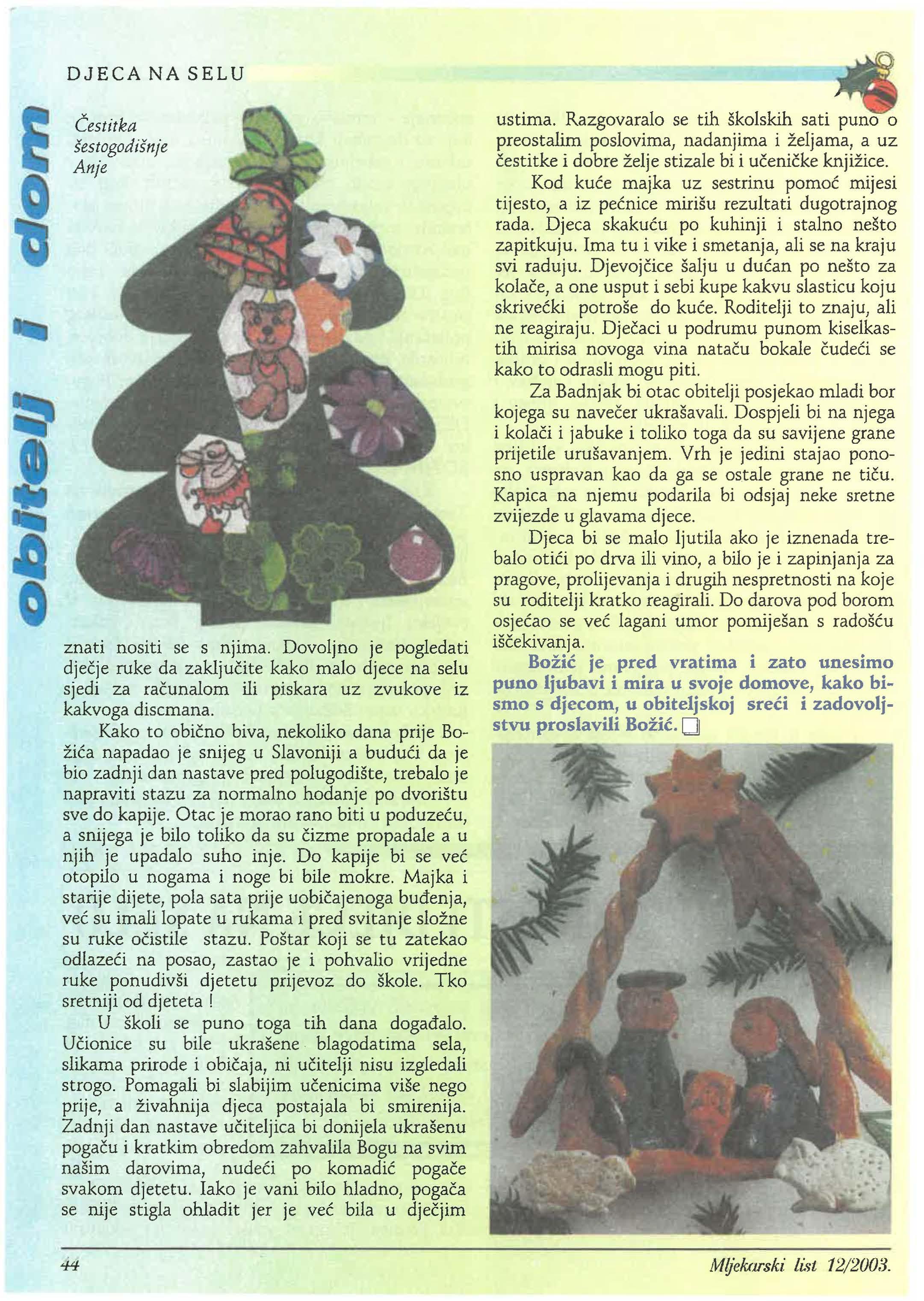 Ima li što ljepše nego li biti dijete? Na selu je prirodnost naglašena još uvijek pa odrasli, puta i ne zavidno predbacuju djeci njihove sitne nespretnosti. Na selu se i za ._ _________________________ _ djecu uviiek našla nekakvih sitnih poslova po i oko koje roditelji nisu uvijek stizali uraditi. Cesto djeca nose drva za loženje, za potpalu, a poneko hrabrije dijete dohvati i sjekiru u želji da nacijepa i usitni ono što od drva stane u ložište. Prosinac je mjesec velikih i dobro je