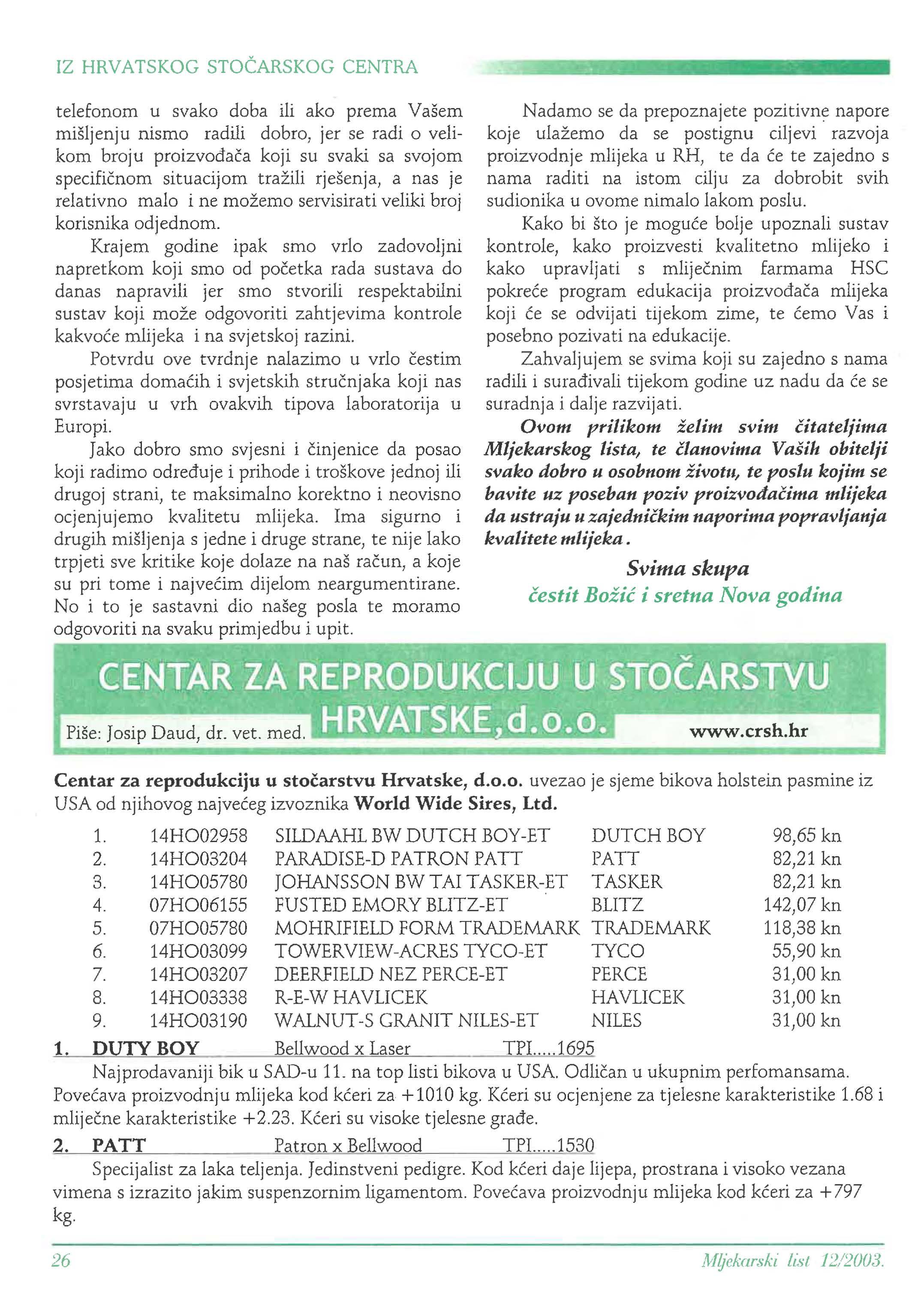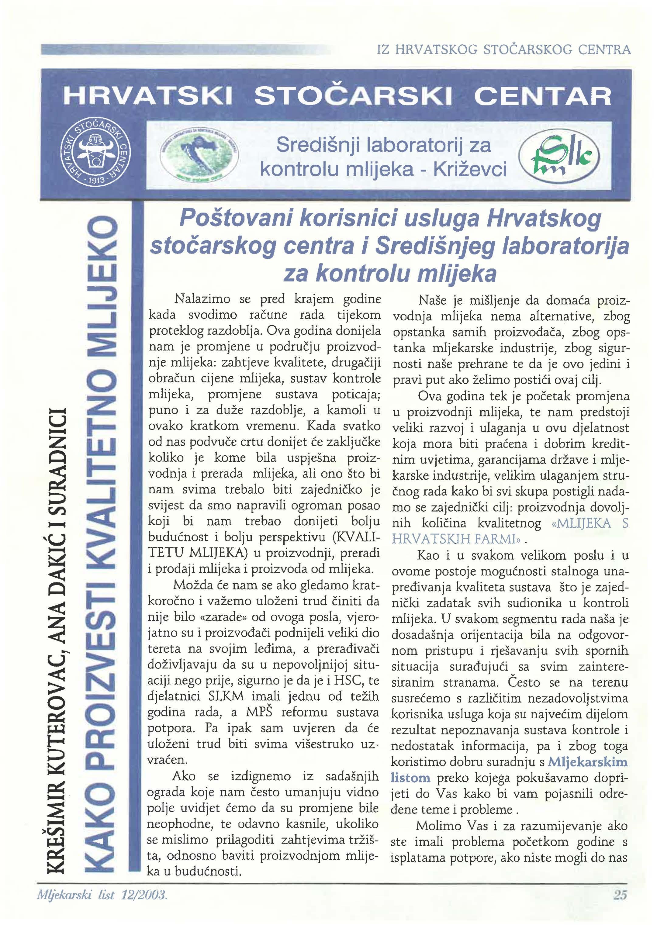 Poštovani korisniciusluga hrvatskog centra i središnjeg Laboratorija za kontrolu mlijeka ______ _ Centar za reprodukciju u Hrvatske _
