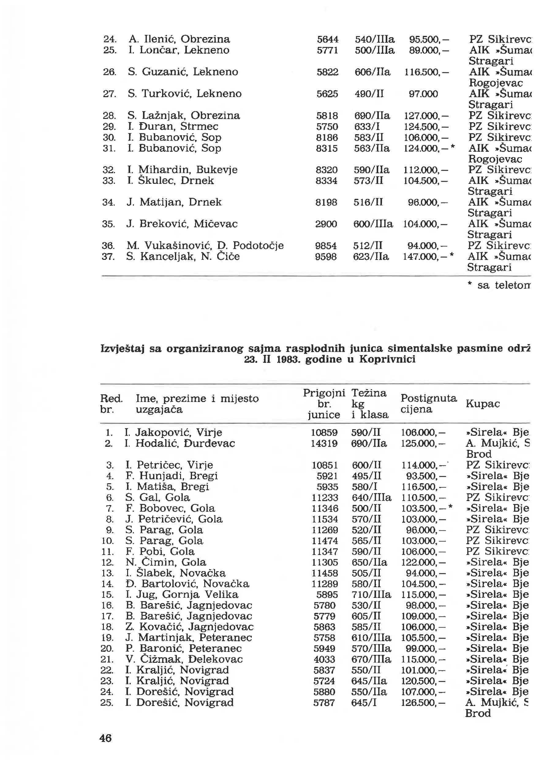 28. S. Lažnjak, Obrezina 5818 690/Ila 127.000,- PZ Sikirevc