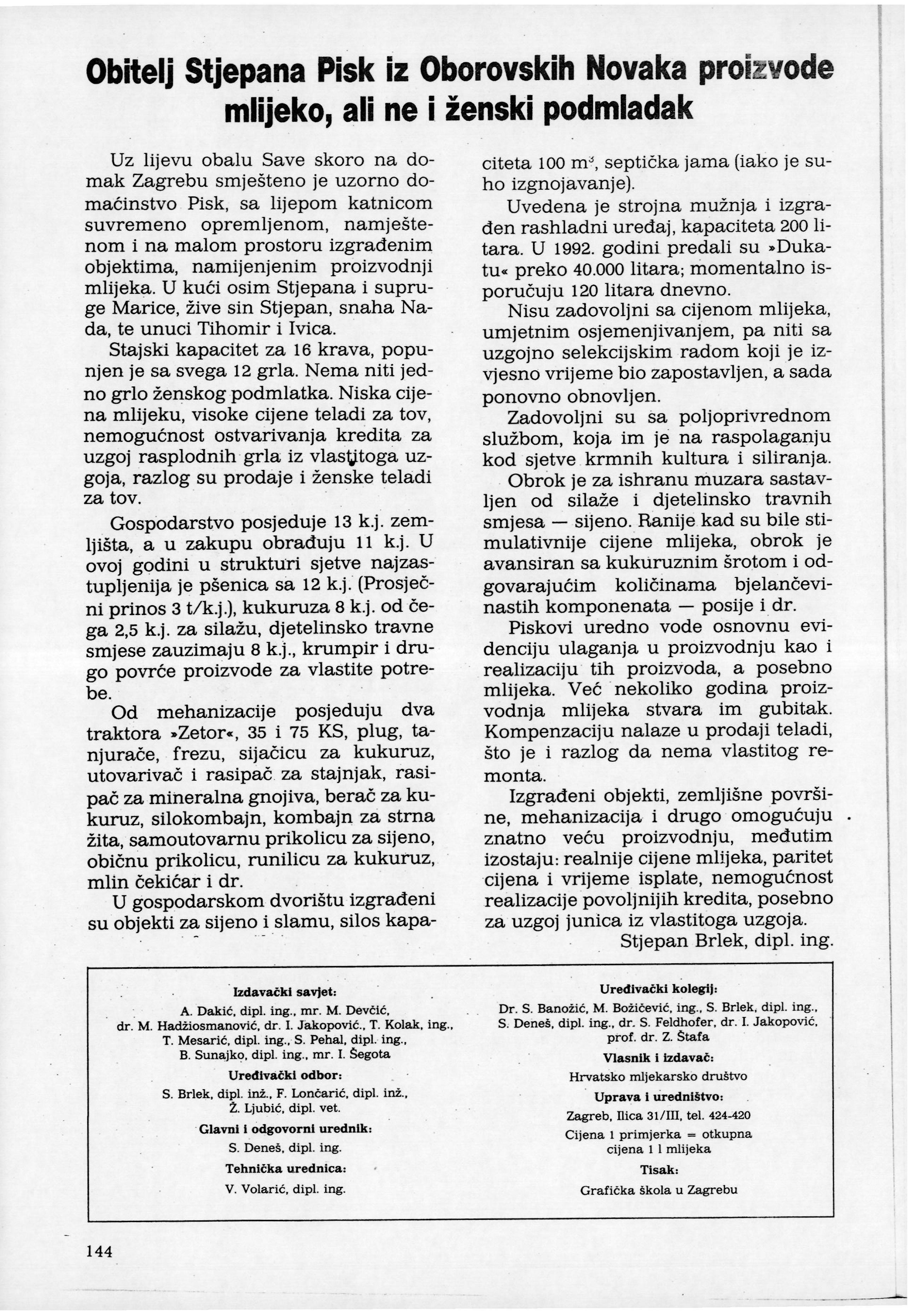 Vlasnik i izdavač: Hrvatsko mljekarsko društvo