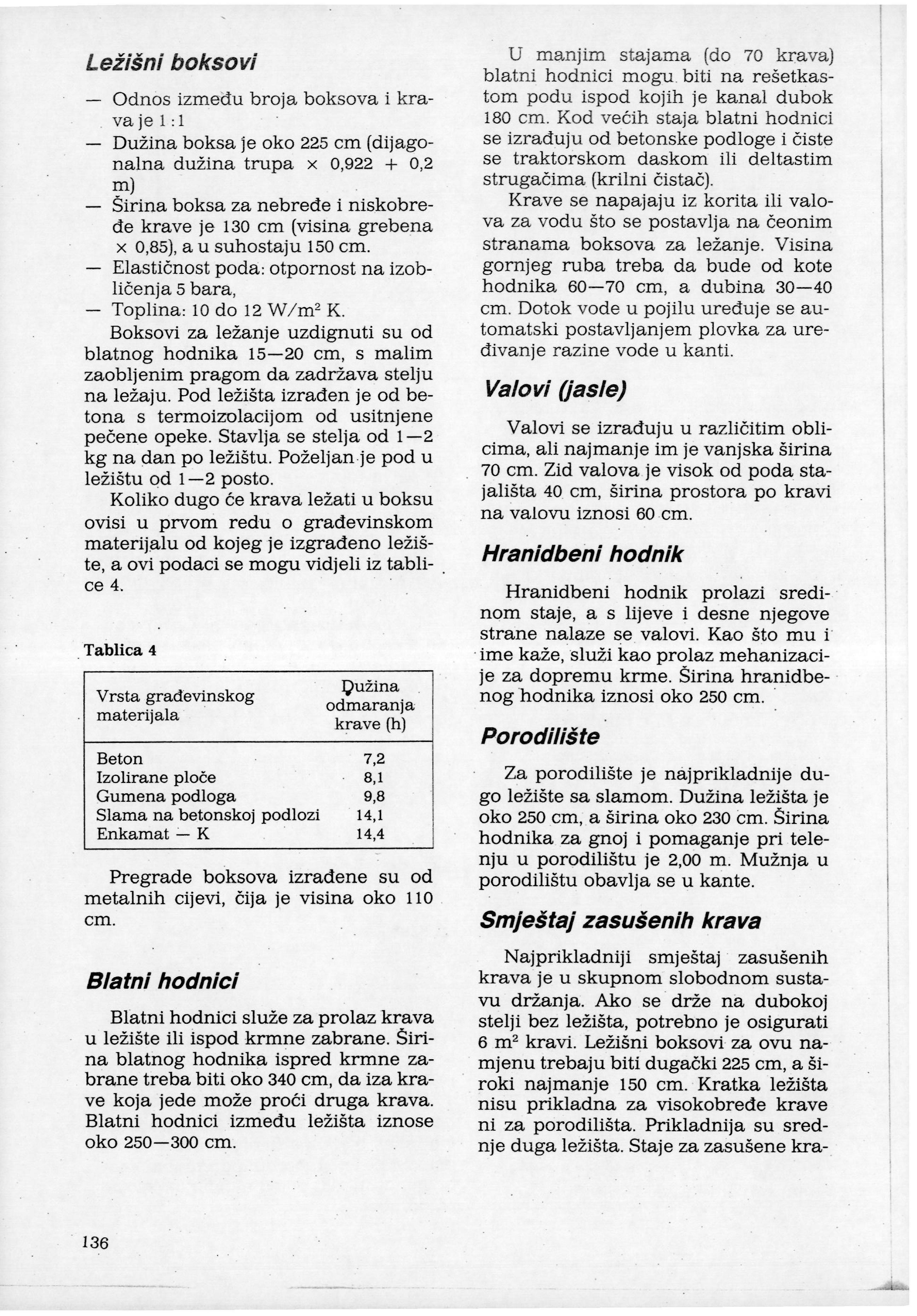 Koliko dugoće krava ležati u boksu ovisi u prvom redu o građevinskom materijalu od kojegjeizgrađenoležište, a ovi podaci se mogu vidjeli iz tablice 4.