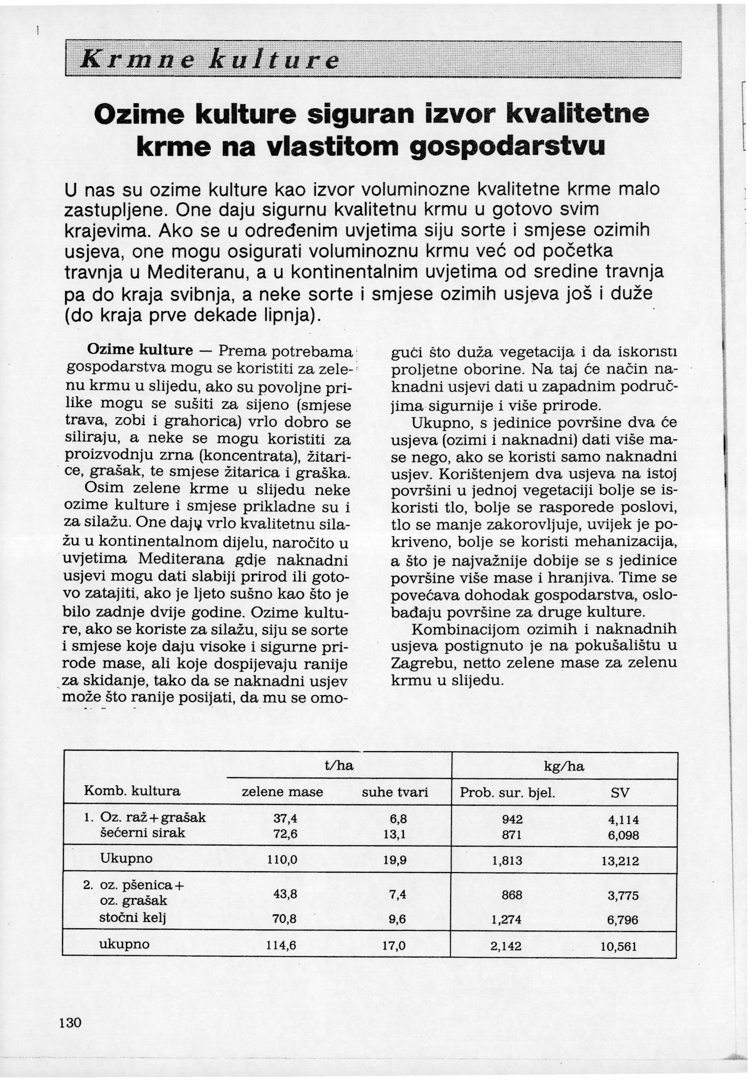 U nas su ozime kulturekao izvorvoluminoznekvalitetnekrme malo zastupljene.One dajusigurnukvalitetnukrmu u gotovo svim krajevima.Ako se u određenim uvjetimasijusorteismjese ozimih usjeva,one mogu osigurativoluminoznukrmu već od početka travnja u Mediteranu, a u kontinentalnimuvjetimaod sredinetravnja pa do krajasvibnja, a neke sorteismjese ozimihusjevajoš iduže (do krajaprve dekade lipnja).