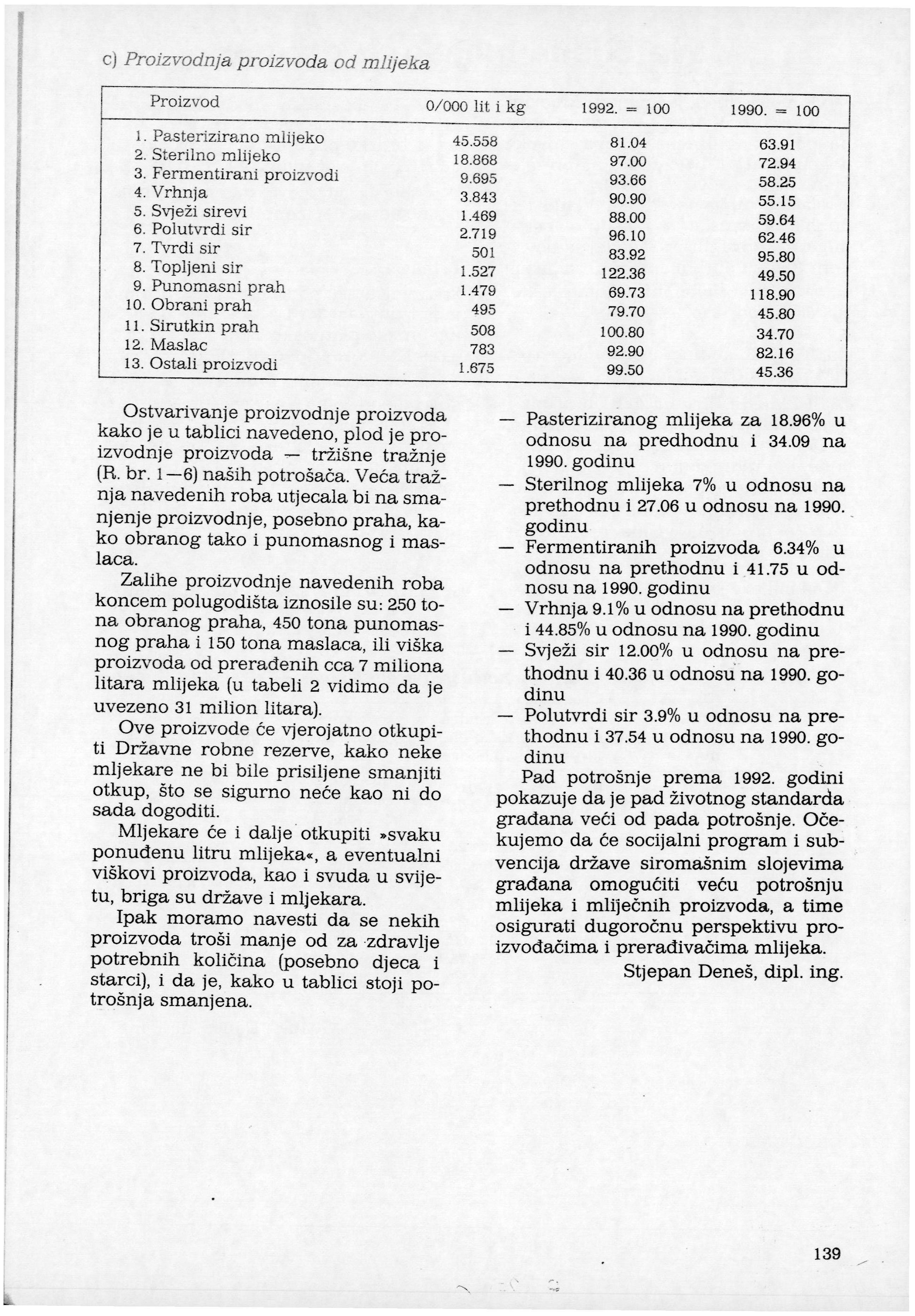 Izgrađeniobjekti,zemljišnepovršine, mehanizacija i drugoomogućuju znatno veću proizvodnju,međutim izostaju:realnijecijenemlijeka,paritet cijena i vrijemeisplate,nemogućnost realizacijepovoljnijihkredita,posebno za uzgojjunica iz vlastitogauzgoja. StjepanBrlek,dipl.ing.