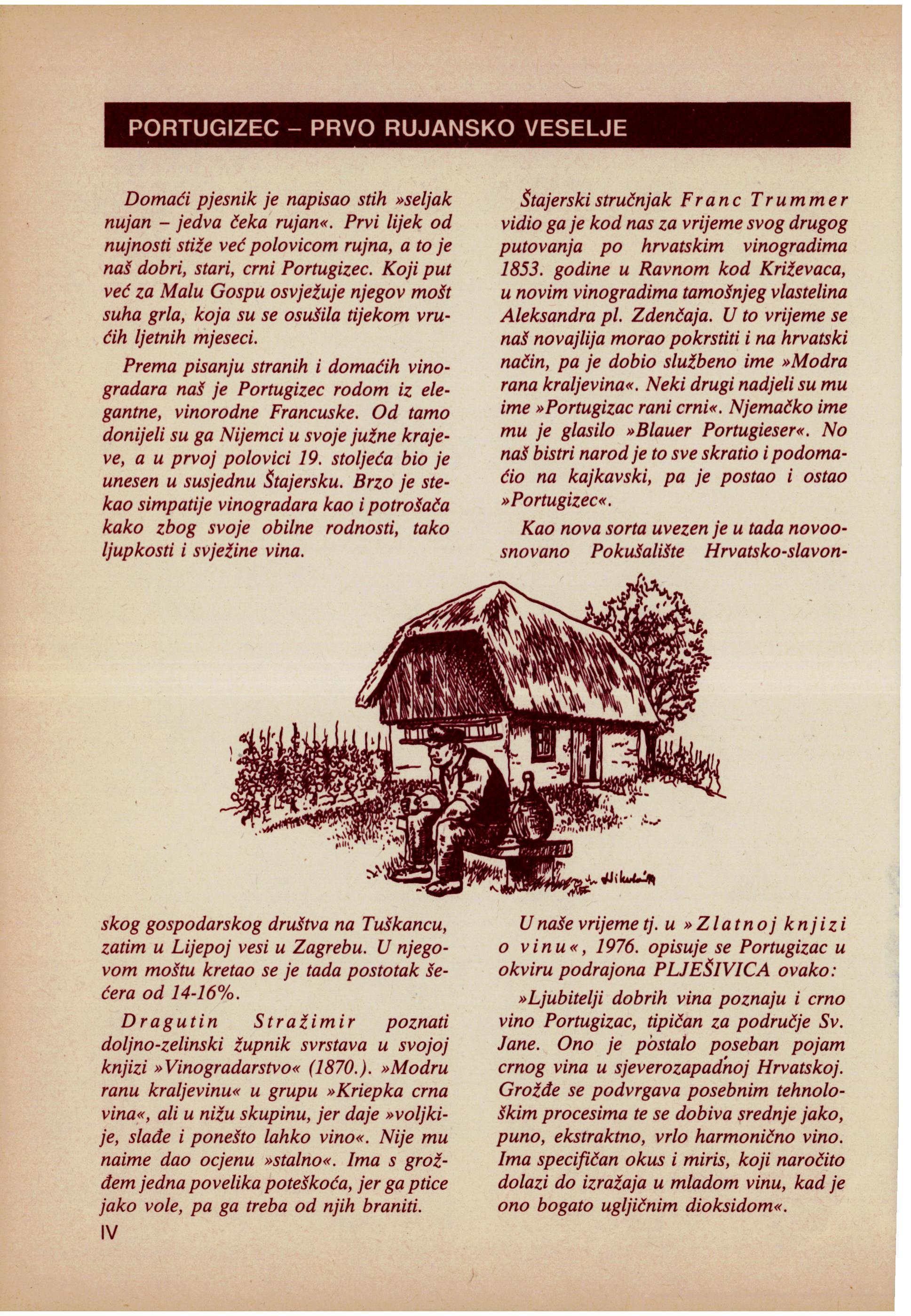 Domaći pjesnikje napisao stih »seljak nujan jedva čeka rujan«.Prvi lijekod nujnostistiže već polovicom rujna,a to je naš dobri, stari,crni Portugizec.Koji put već za Malu Gospu osvježujenjegovmošt suha grla,koja su se osušila tijekomvru.Ćih ljetnihmjeseci.