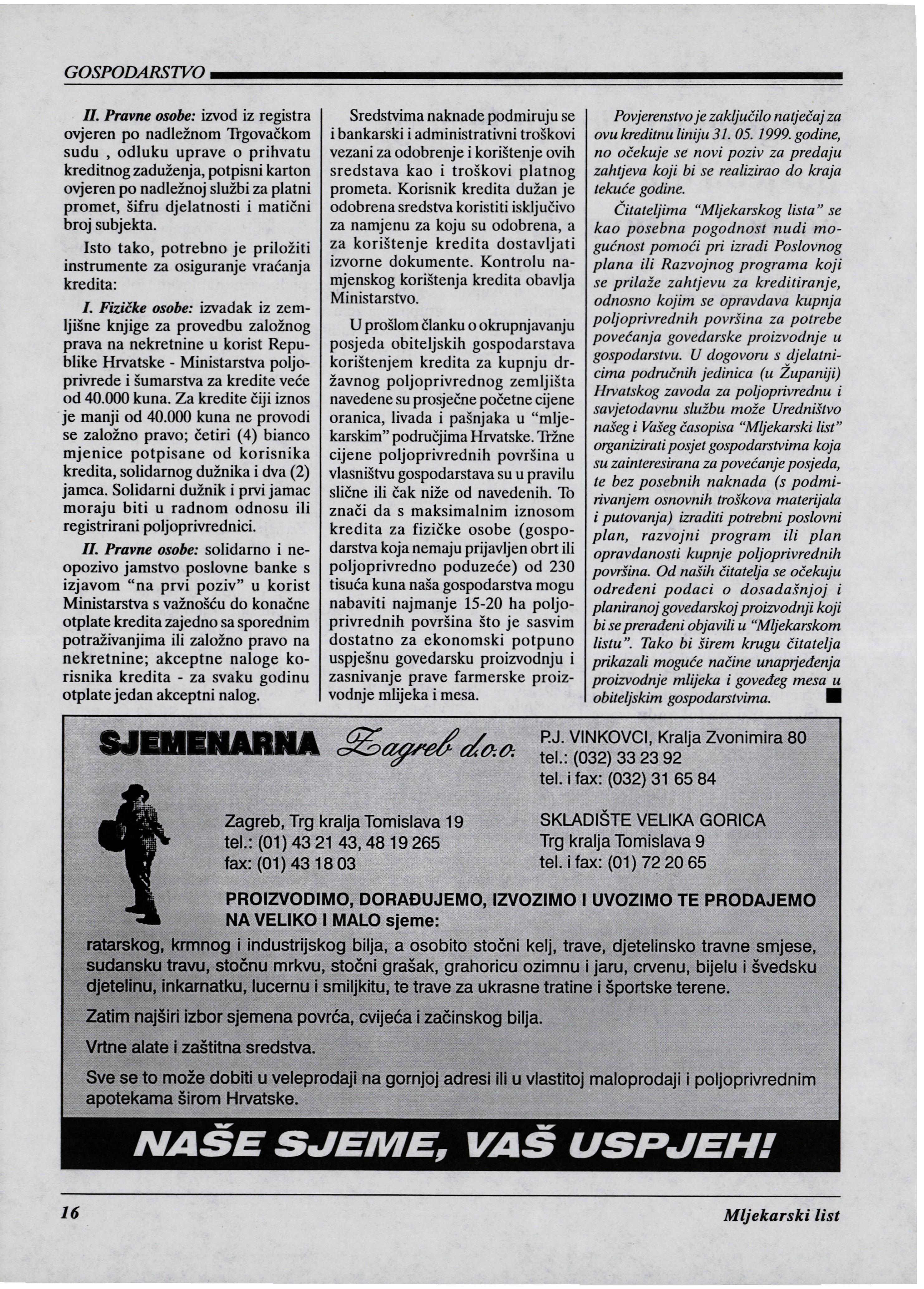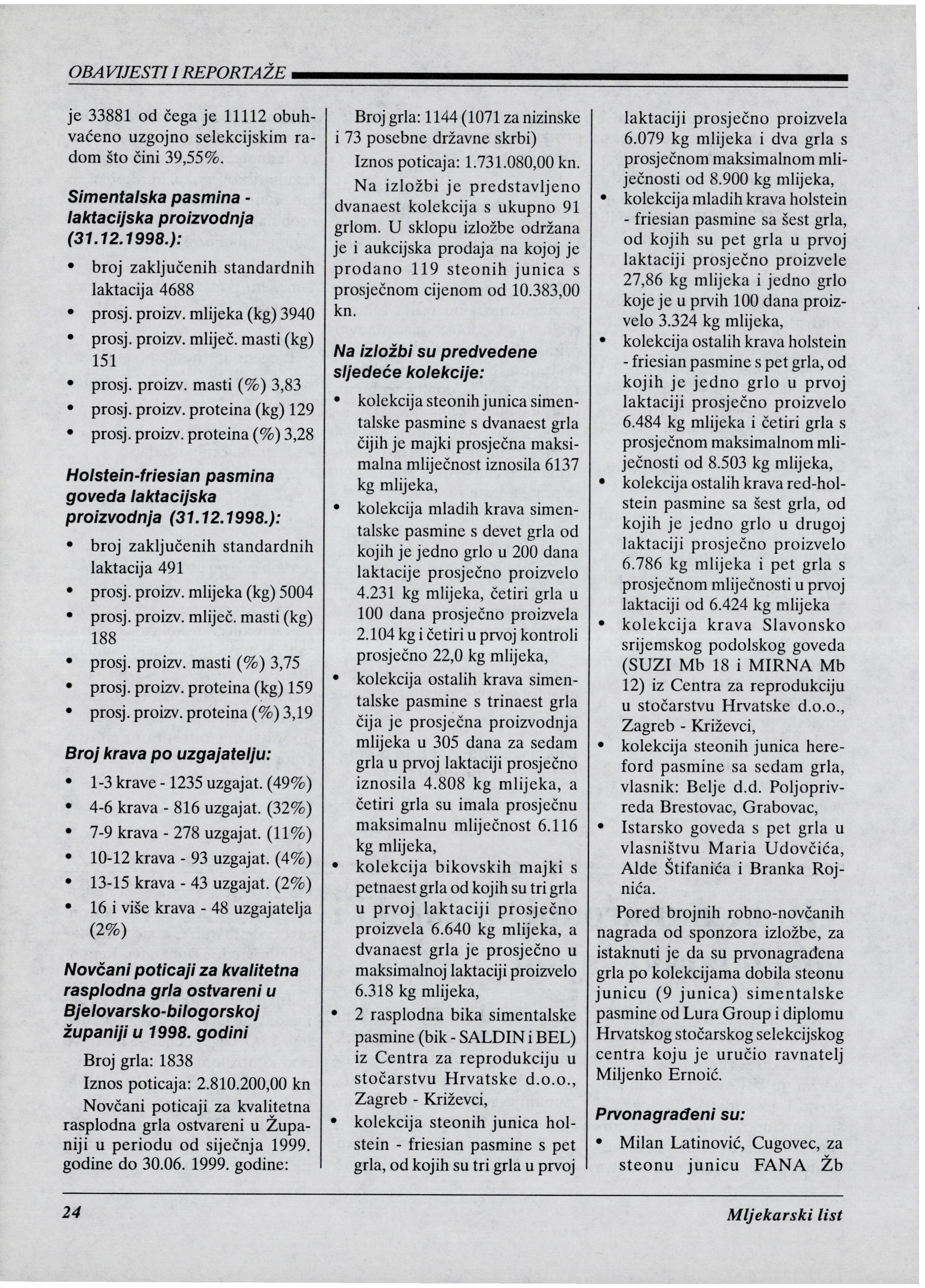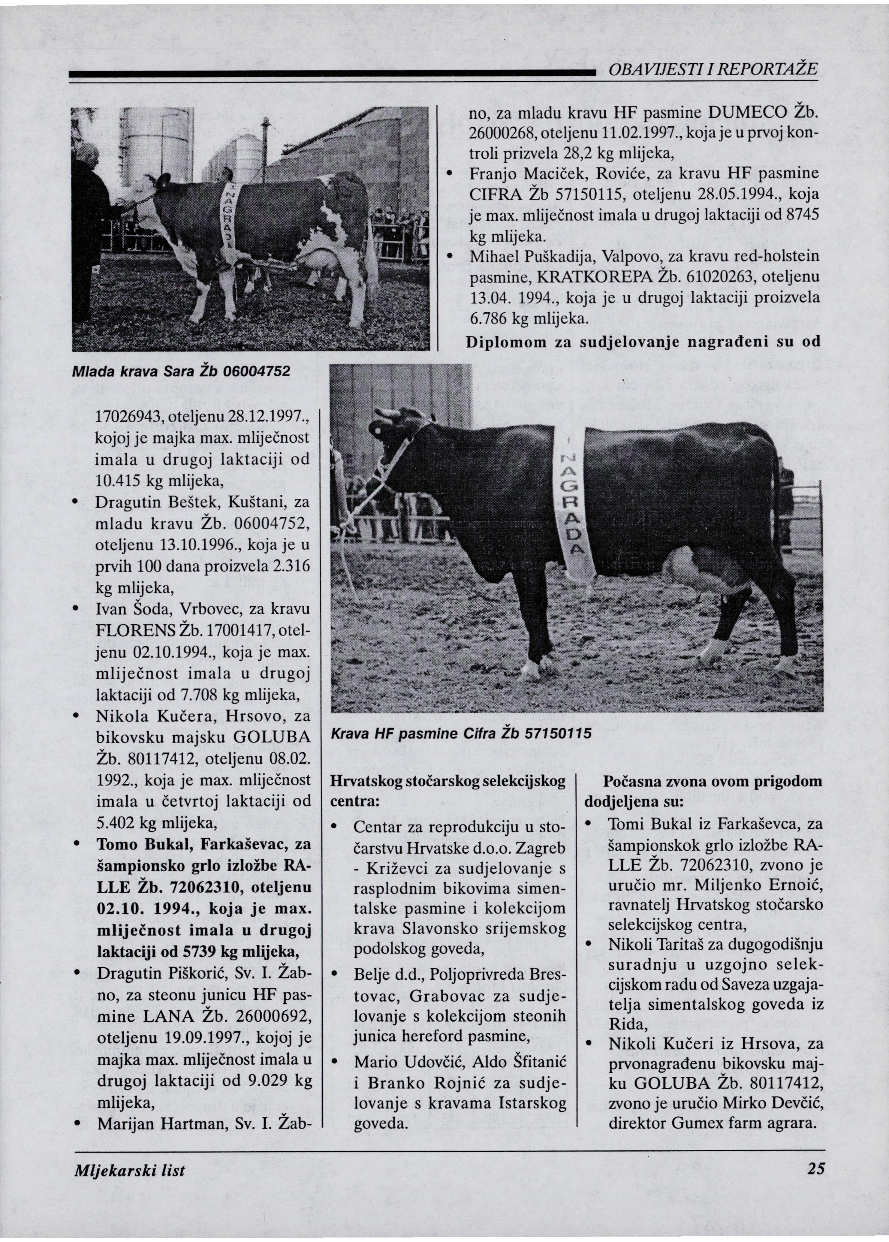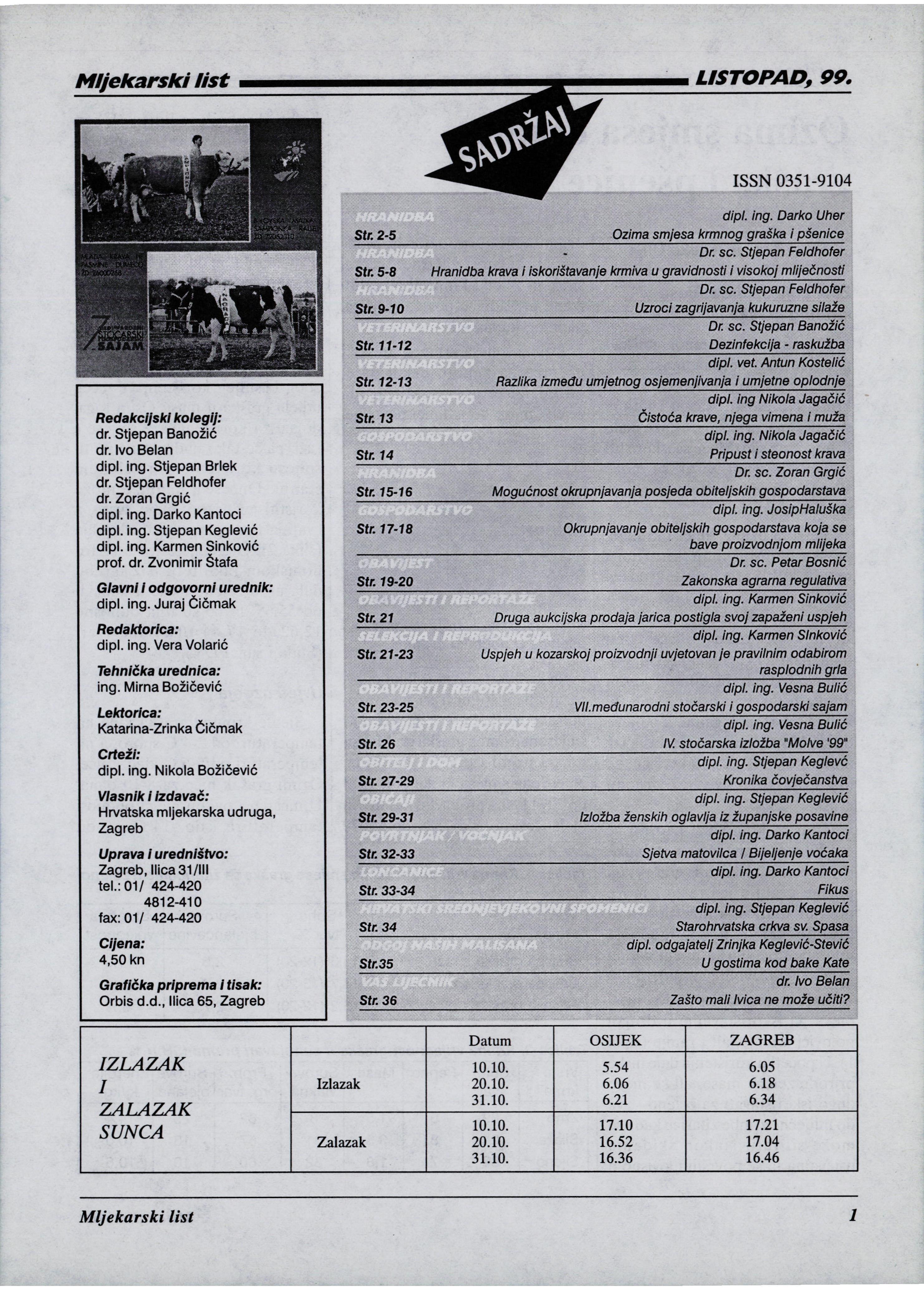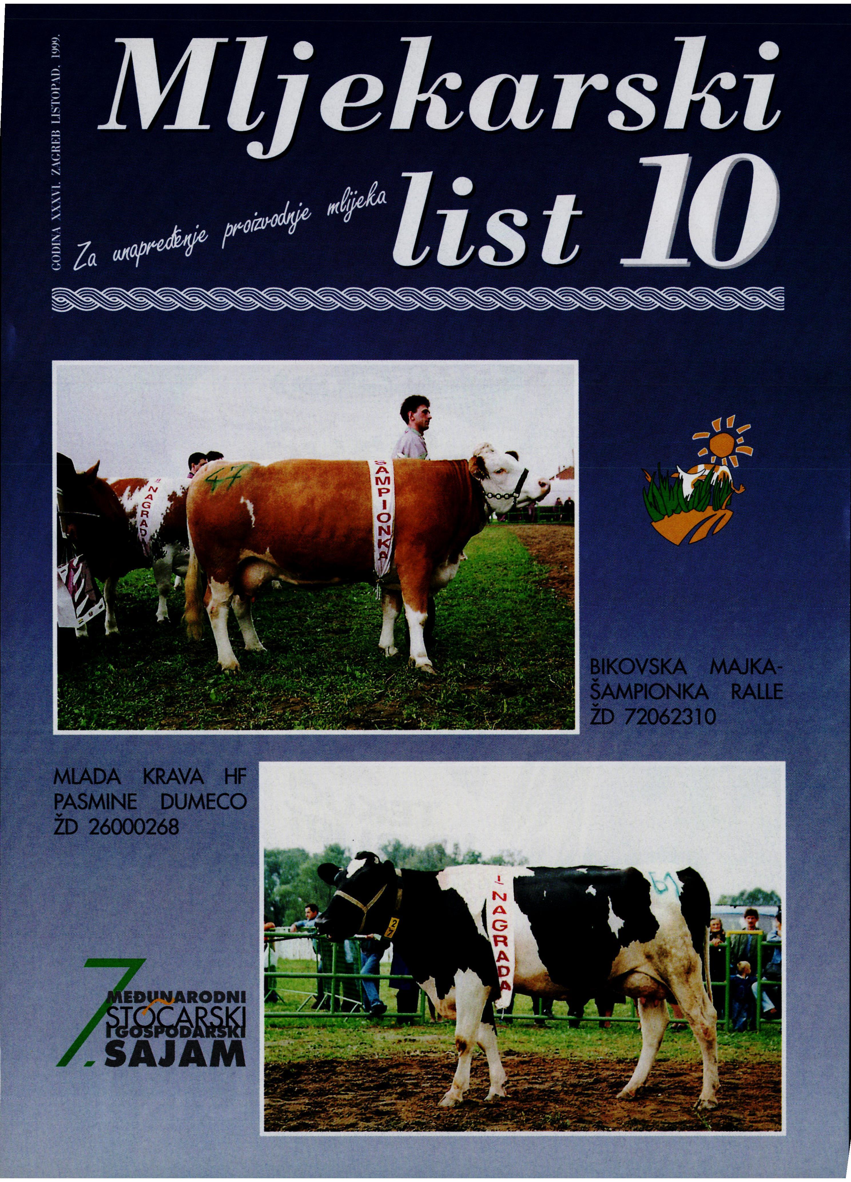 Mljekarski Z ri “lr L 10 a arap“ y GODINA XXXVI. ZAGREB LISTOPAD. 1999. ; j j nN Aa (c R A D