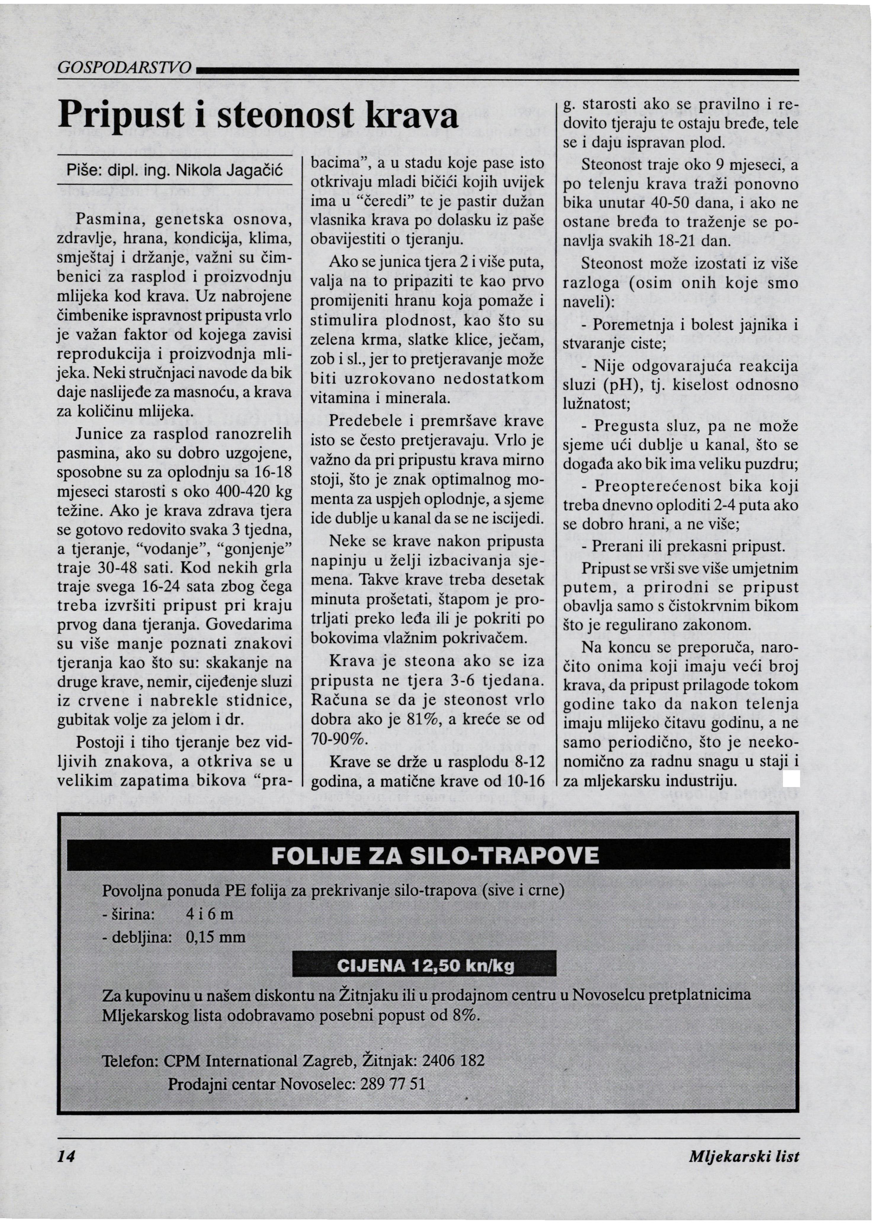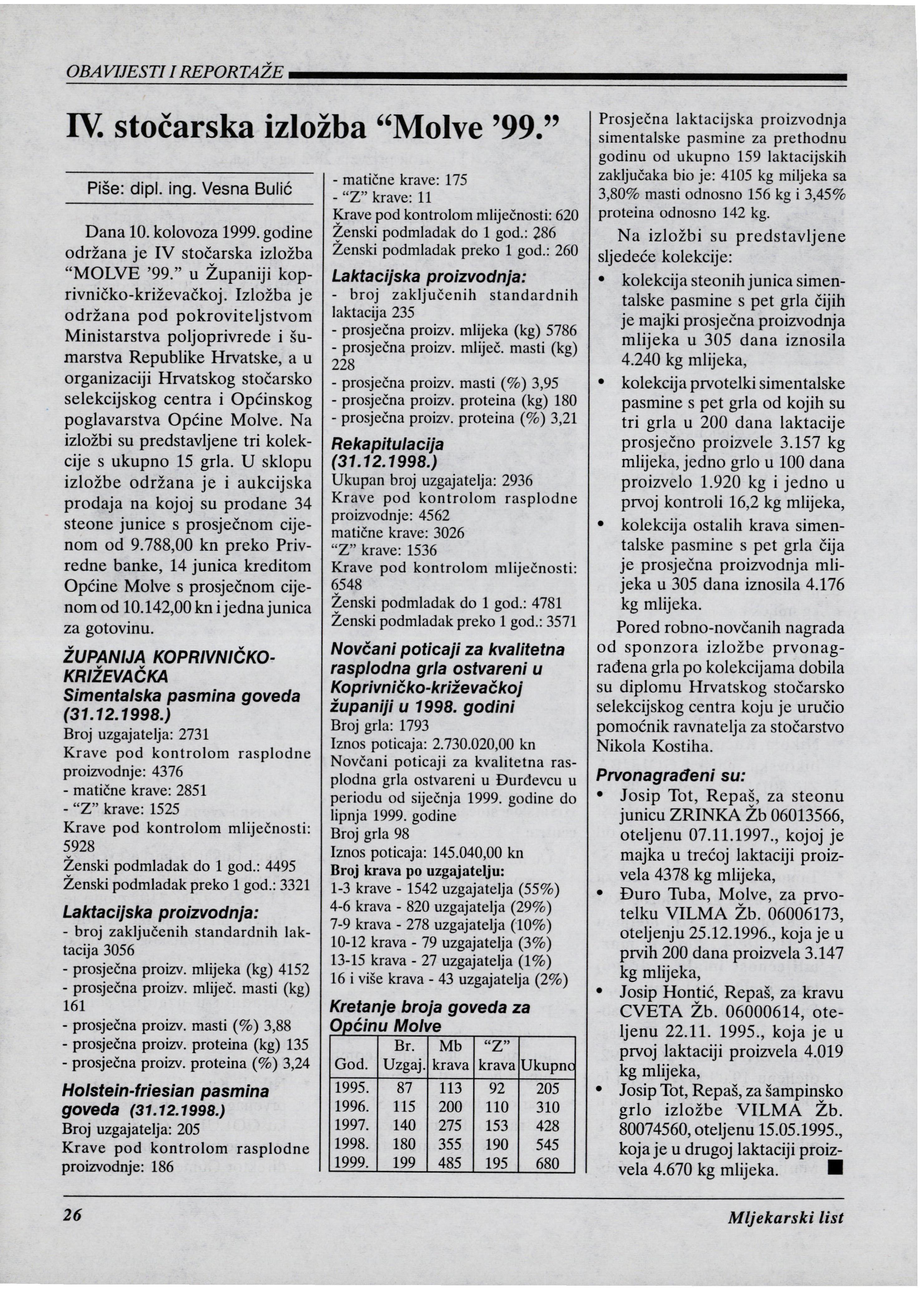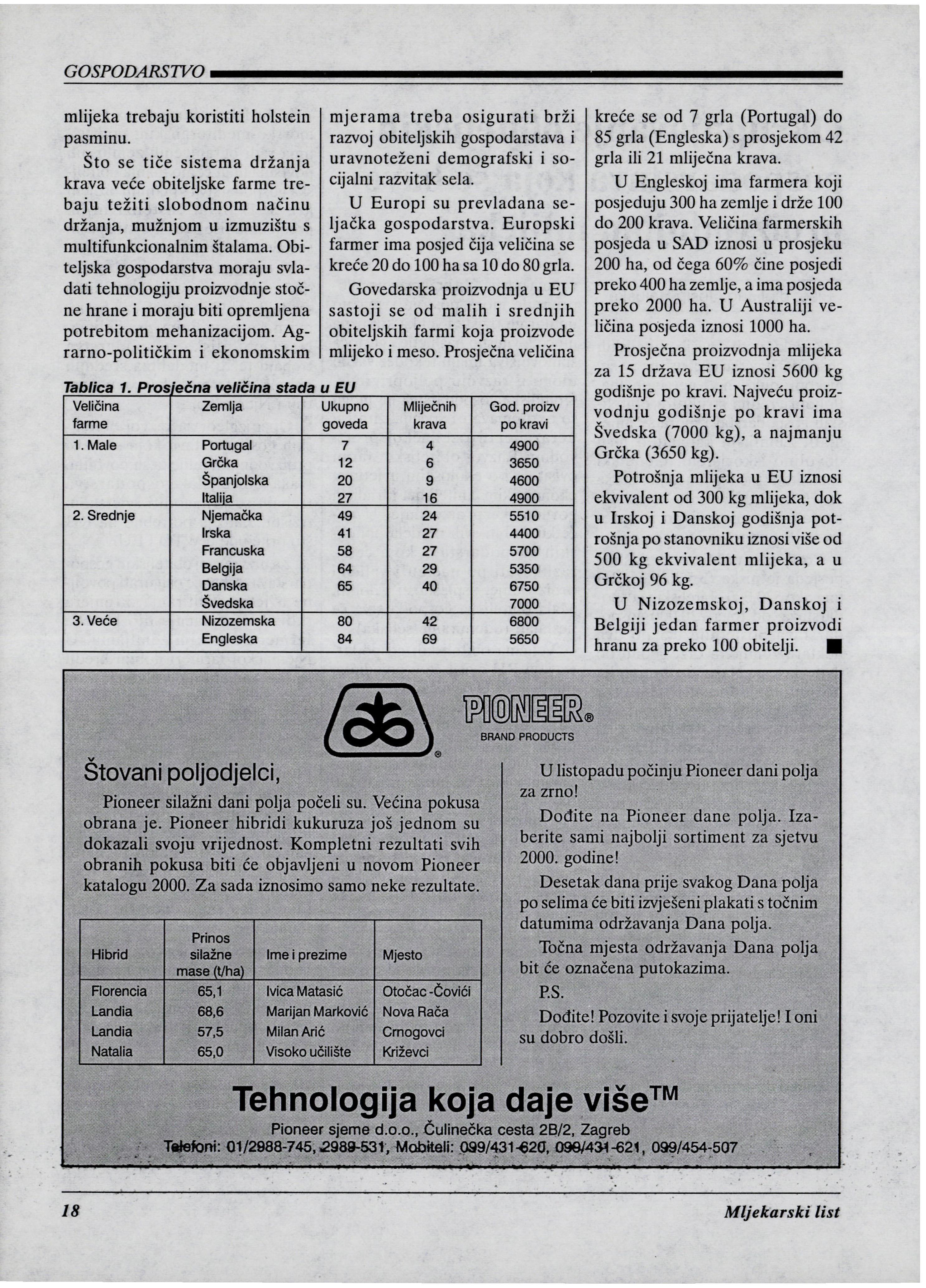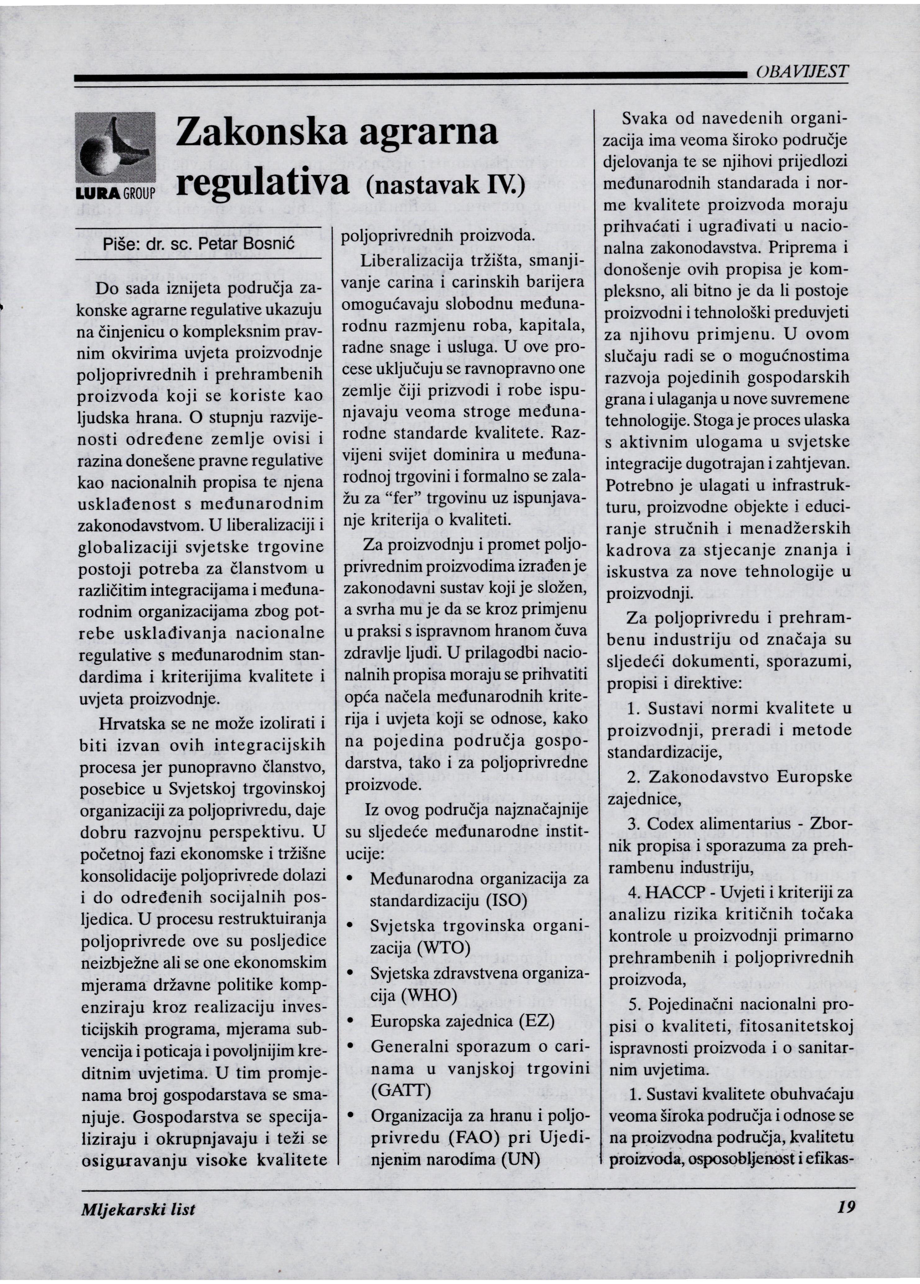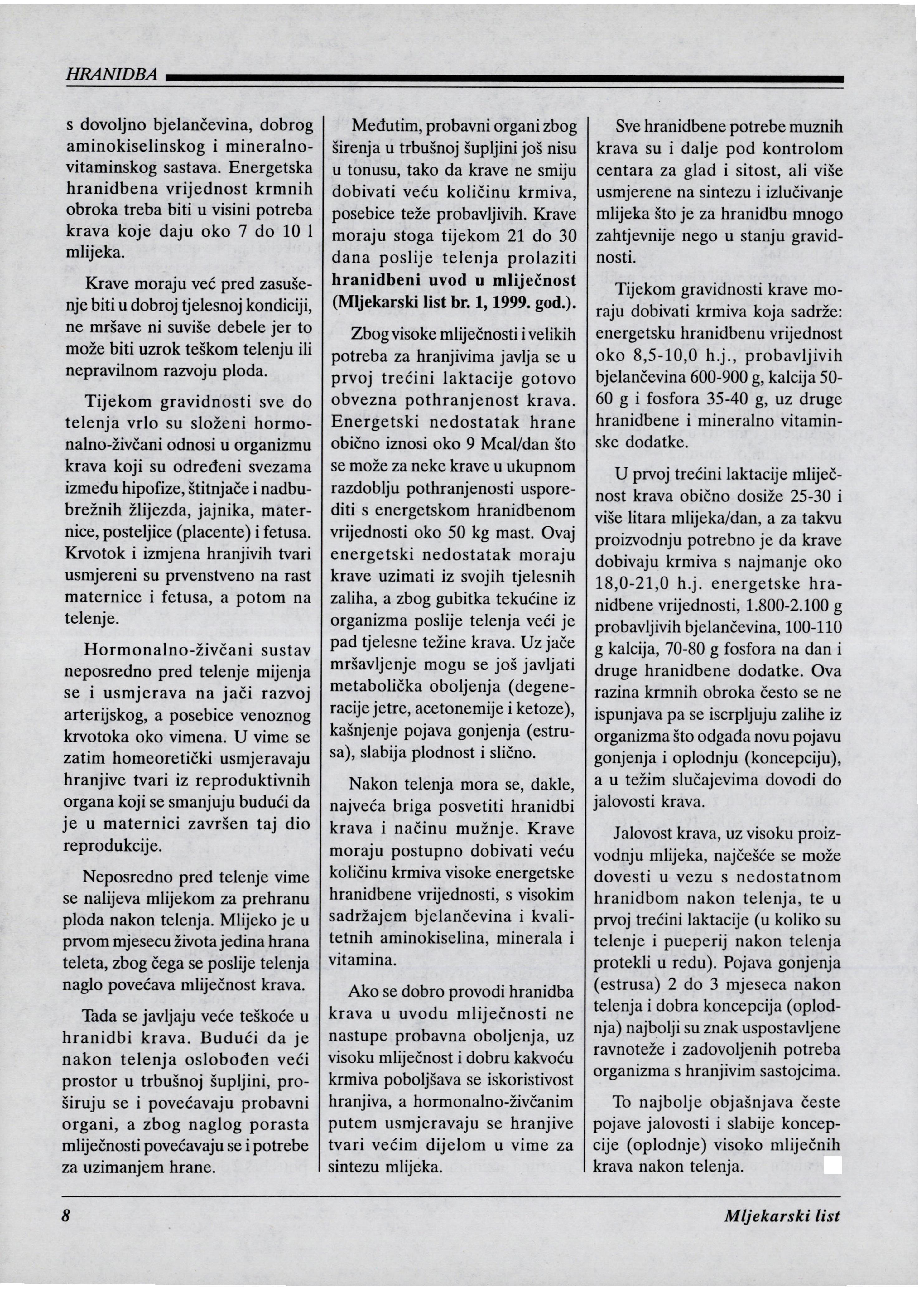 Mljekarski Z ri “lr L 10 a arap“ y GODINA XXXVI. ZAGREB LISTOPAD. 1999. ; j j nN Aa (c R A D