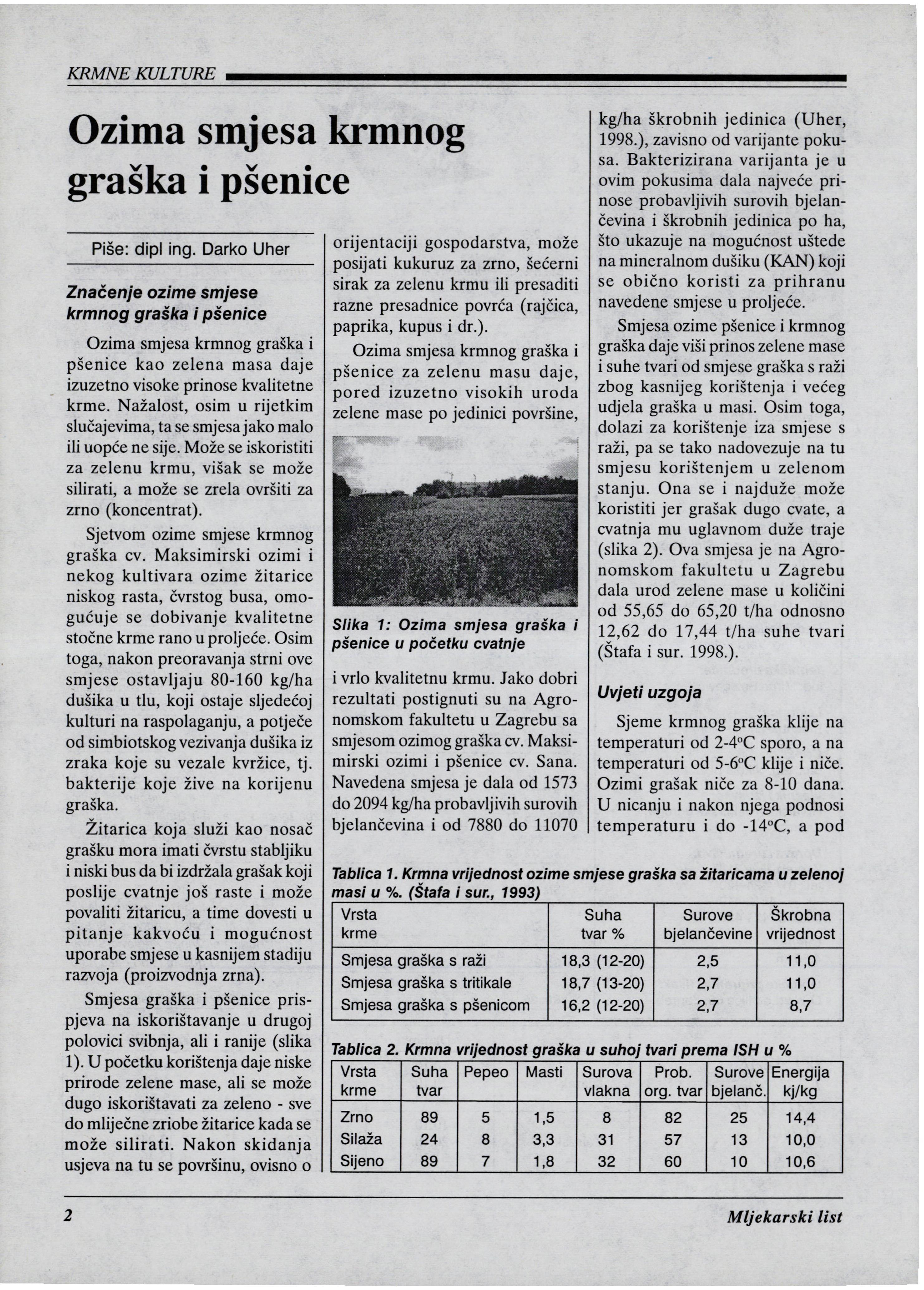 Tablica 1. Krmna vrijednost ozime smjesegraška sa žitaricama u zelenoj masi u % (Štafa i sur , 1993)