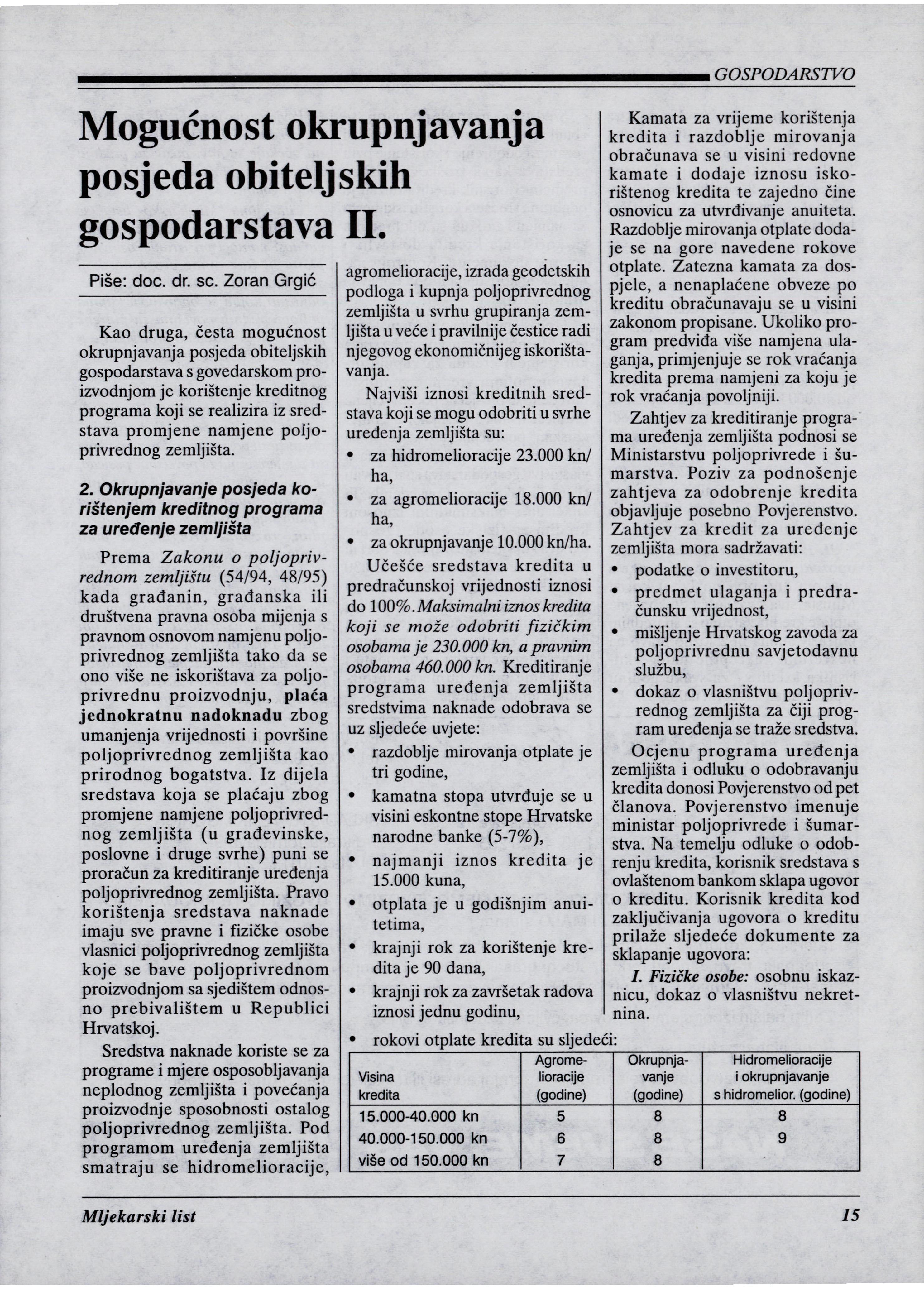 Str. 15-16 Mogućnost okrupnjavanjaposjeda obiteljskihgospodarstava dipl ing Darko Kantoci dipl ing JosipHaluška dipl. ing Stjepan Keglević