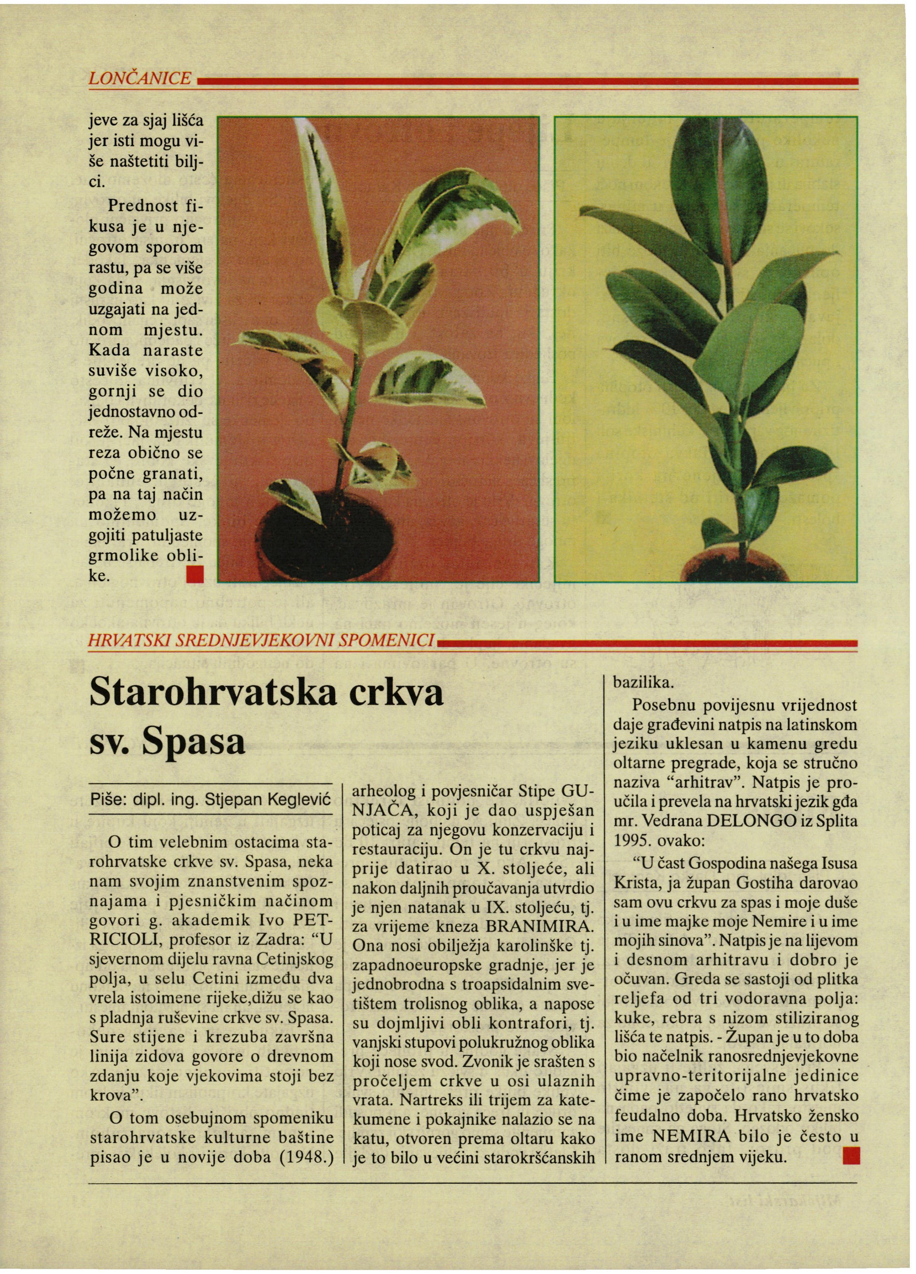 O tim velebnim ostacima starohrvatske crkve sv Spasa,neka nam svojimznanstvenim spoznajamai pjesničkimnačinom govori g akademik Ivo PETRICIOLI,profesor iz Zadra; “U sjevernomdijelu ravna Cetinjskog polja, u selu Cetini između dva vrela istoimene rijeke,dižu se kao s pladnjaruševine crkve sv Spasa. Sure stijene i krezuba završna linijazidova govore o drevnom zdanjukojevjekovimastoji bez krova“