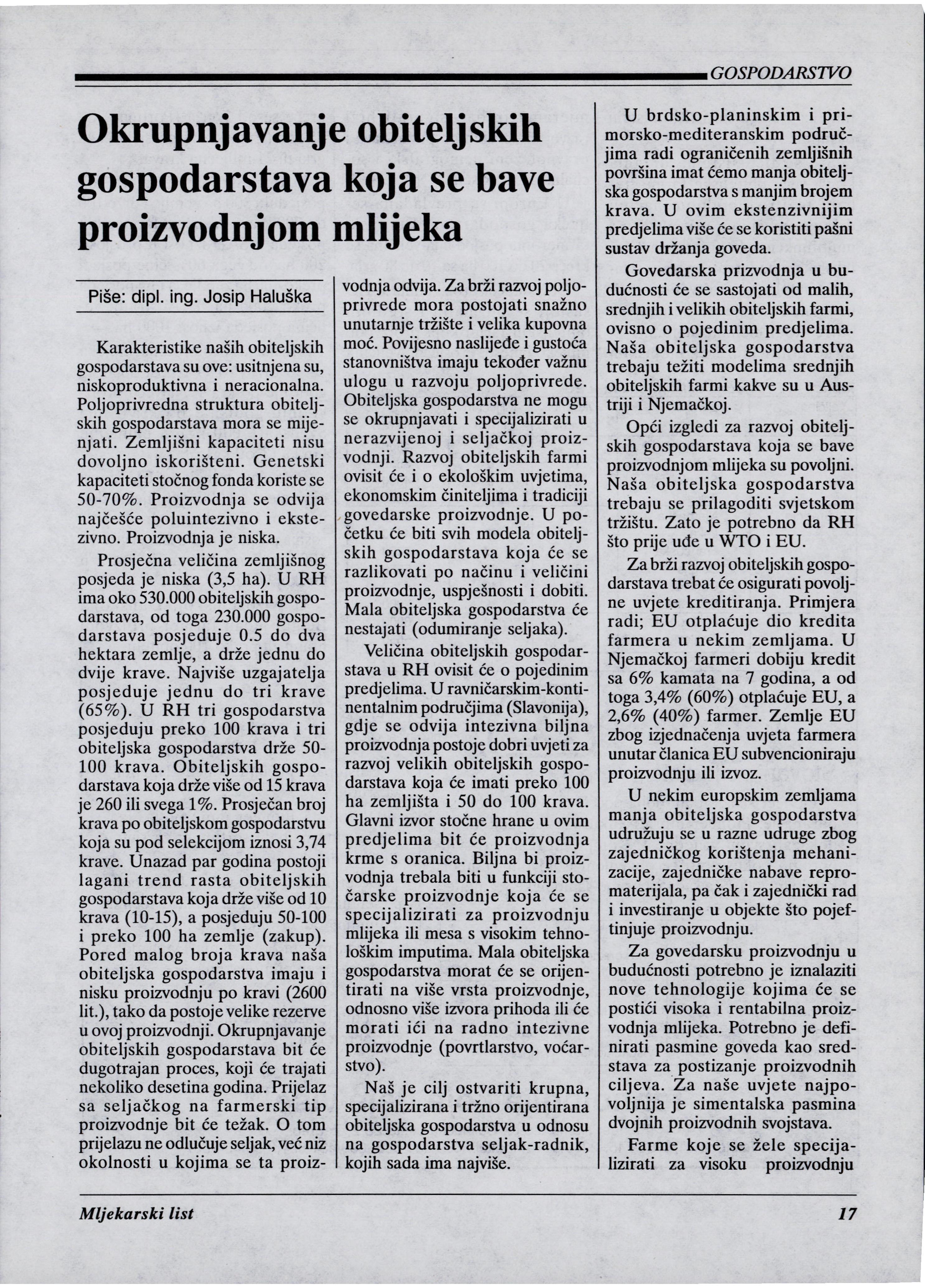 Str 17-18 Okrupnjavanjeobiteljskihgospodarstava koja se dipl ing Karmen Sinković bave proizvodnjom mlijeka prof.dr Zvonimir Štafa Dr sc Petar Bosnić