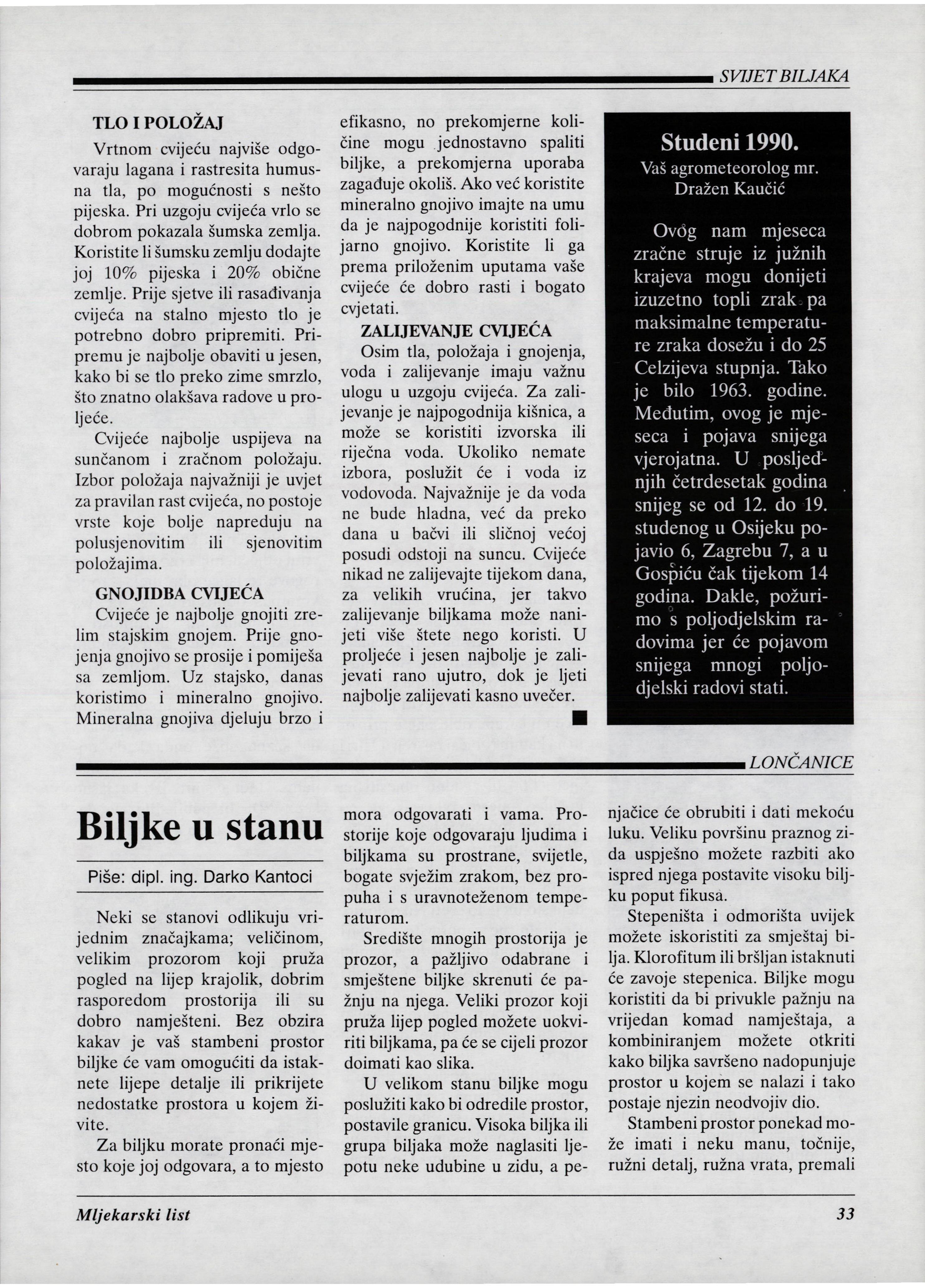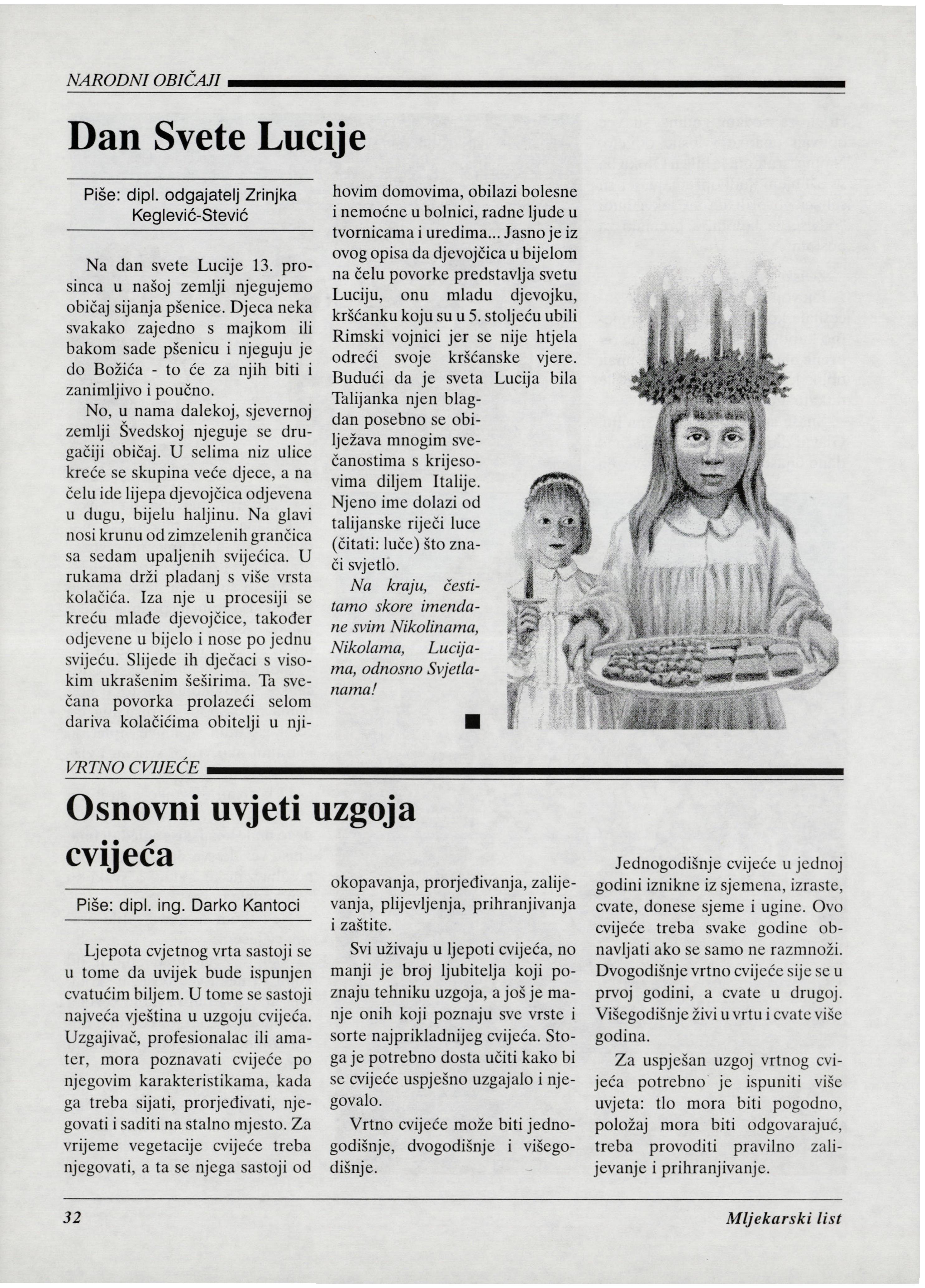 -Drenovci '99 dipl.ing.Nikola Jagačić. Pogled na razvojgovedarstva sisačke Posavine s gledištaprirodnihpašnjaka ooipring.Stjepan Keglevć Kronika čovječanstva dipl. ing.Stjepan Keglević _Oltapregrada iz Svete Nediljice dipl.ing.Josip Haluška Običajiu slavonskom selu Otok dipl.odaje ZrinjkaKeglevićStevićDan Svete Lucije dipl.ing.Darko KantociOsnovni uvjetiuzgoja cvijeća dipl.ing.Darko Kantoci Biljkeu stanu