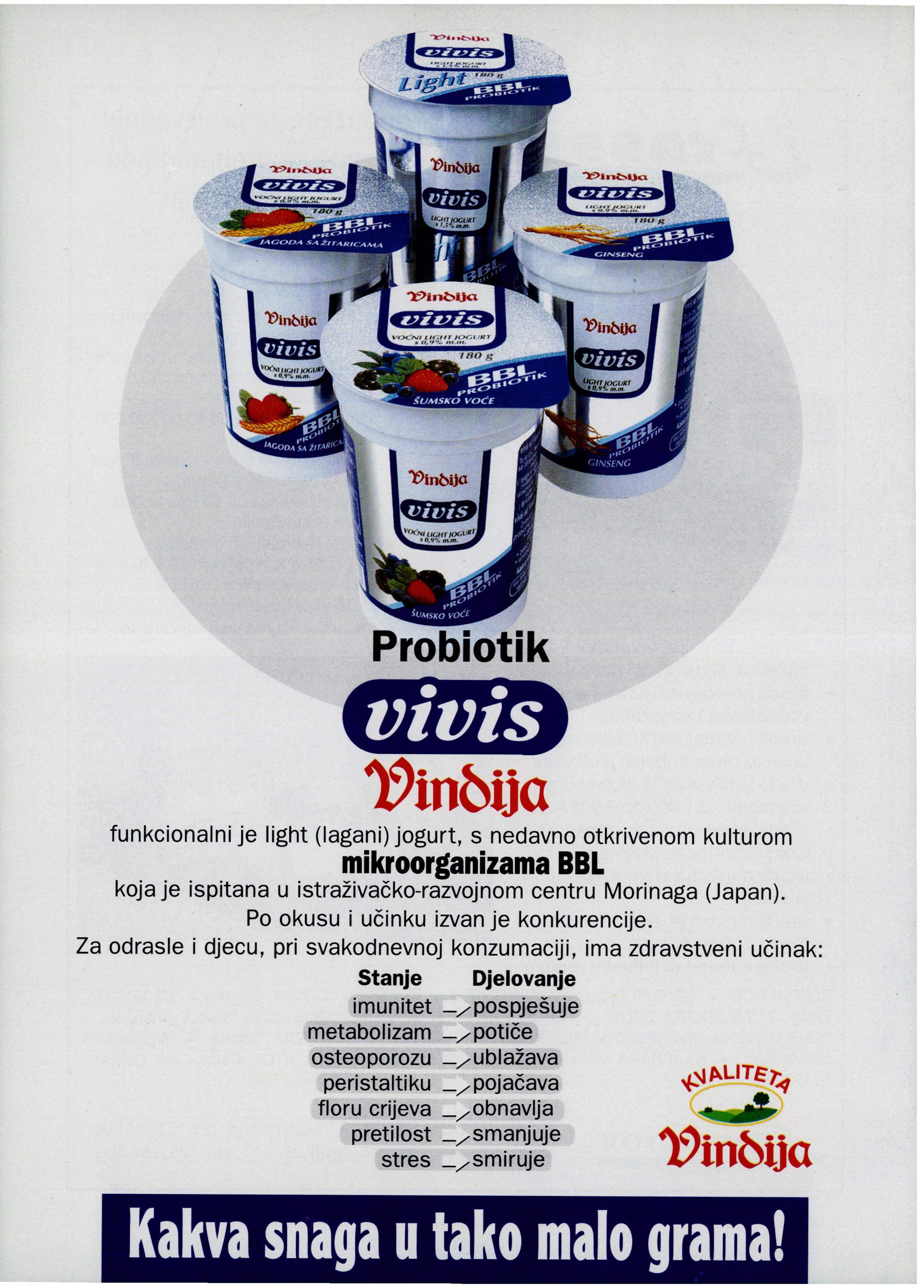 funkcionalnije light(lagani)jogurt, s nedavno otkrivenom kulturom mikroorganizama BBL kojaje ispitanau istraživačkorazvojnom centru Morinaga (Japan). Po okusu iučinku izvanje konkurencije.