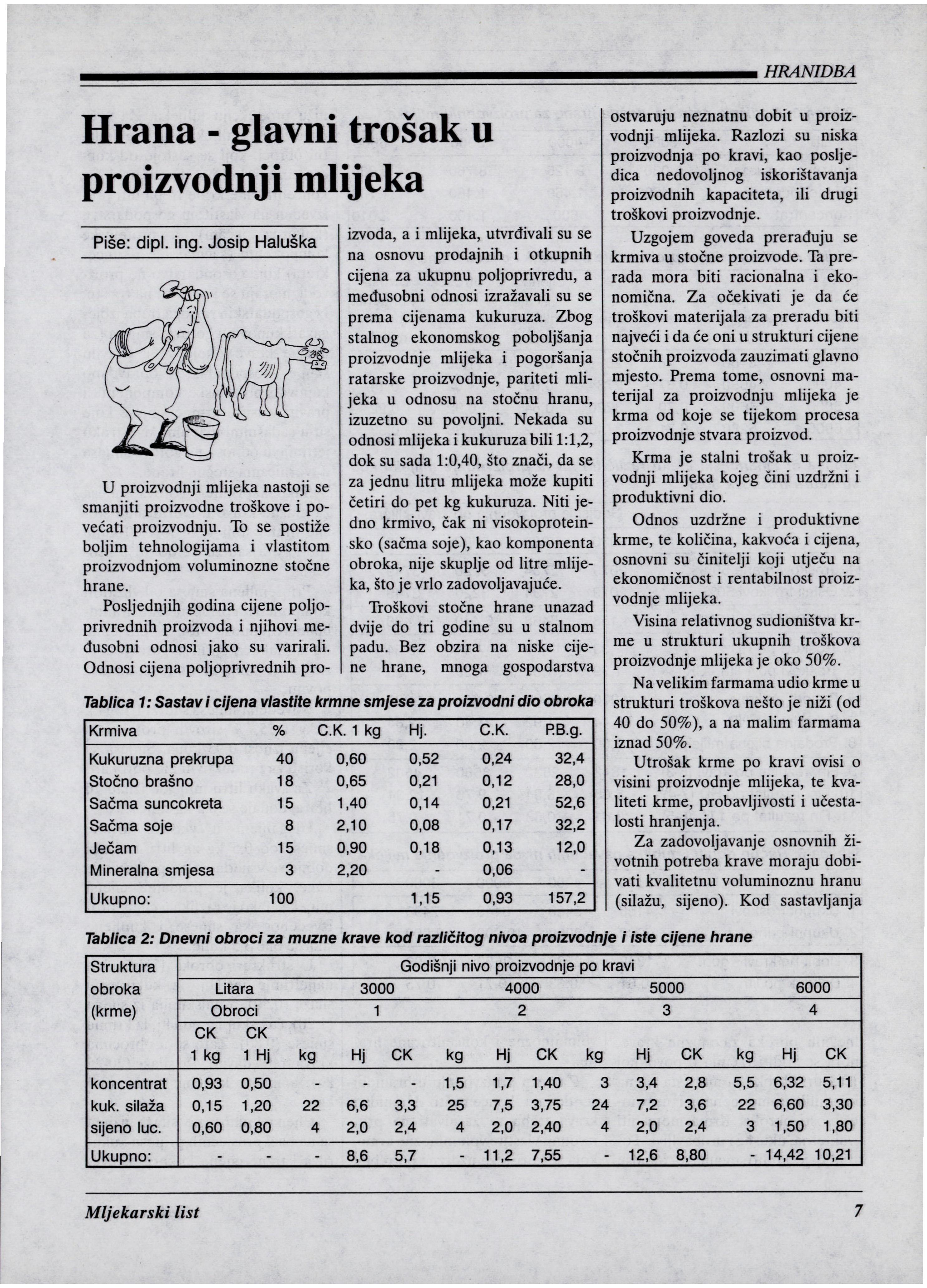 ijakrmnih kultura u slijeduna oranicama osipHaluška, dipl ing glavnitrošak u proizvodnjimlijeka