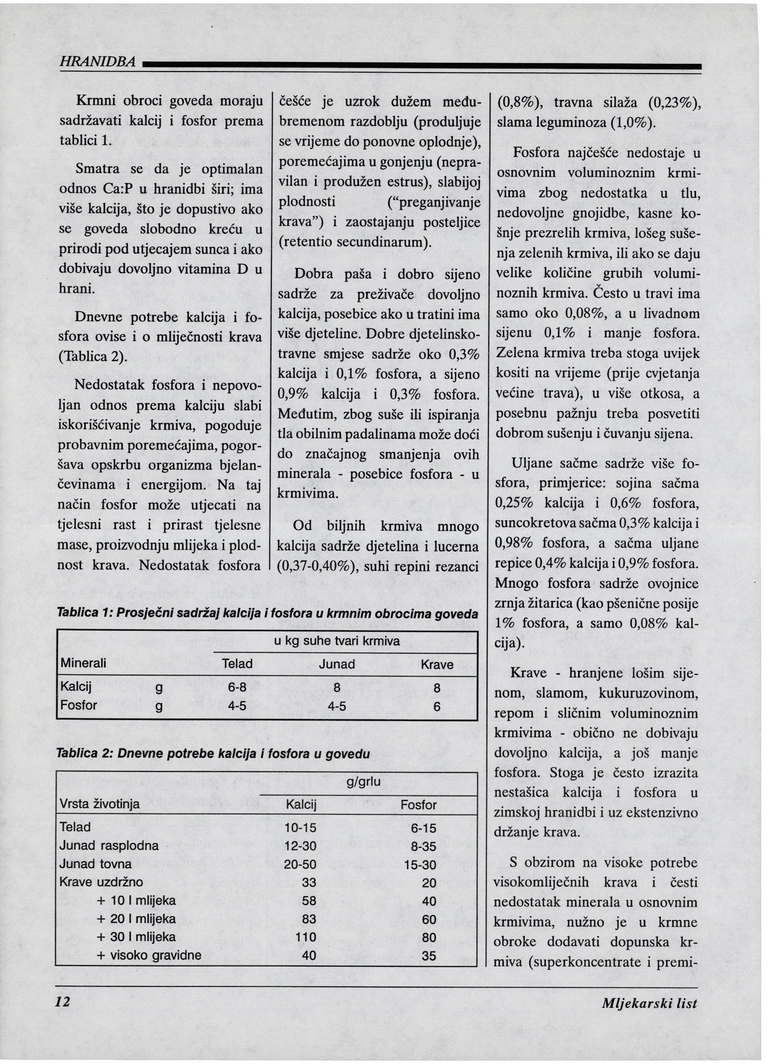 Kalcij 1fosforznačajniminerali u hranidbi goveda