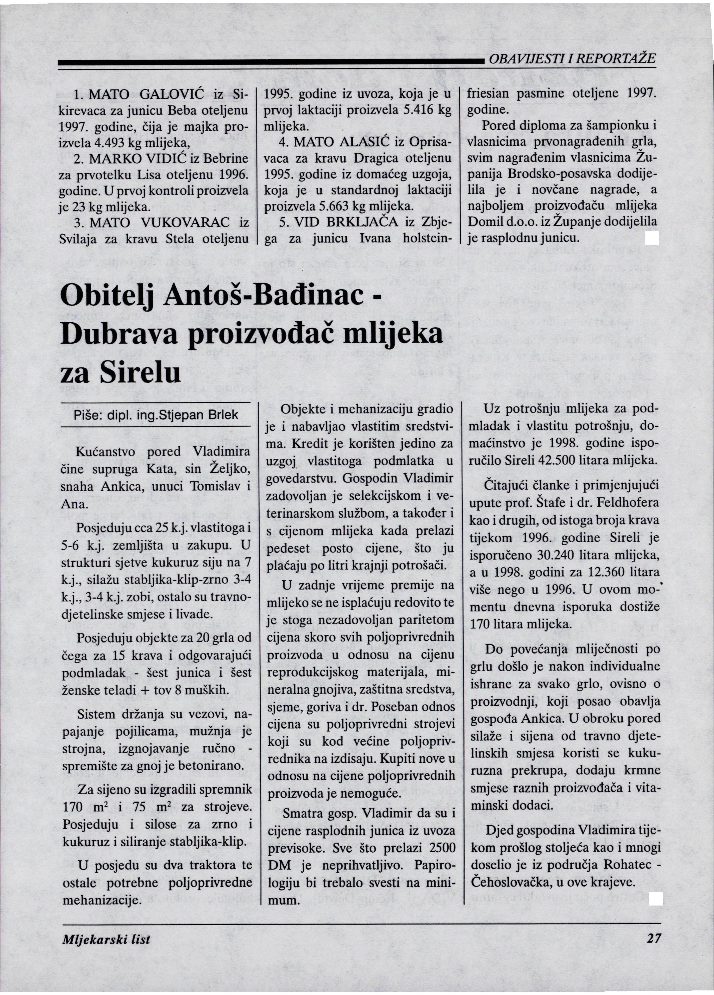 Str 27 ObiteljAntoš-Bađinac - Dubrava proizvođač mlijeka za Sirelu
