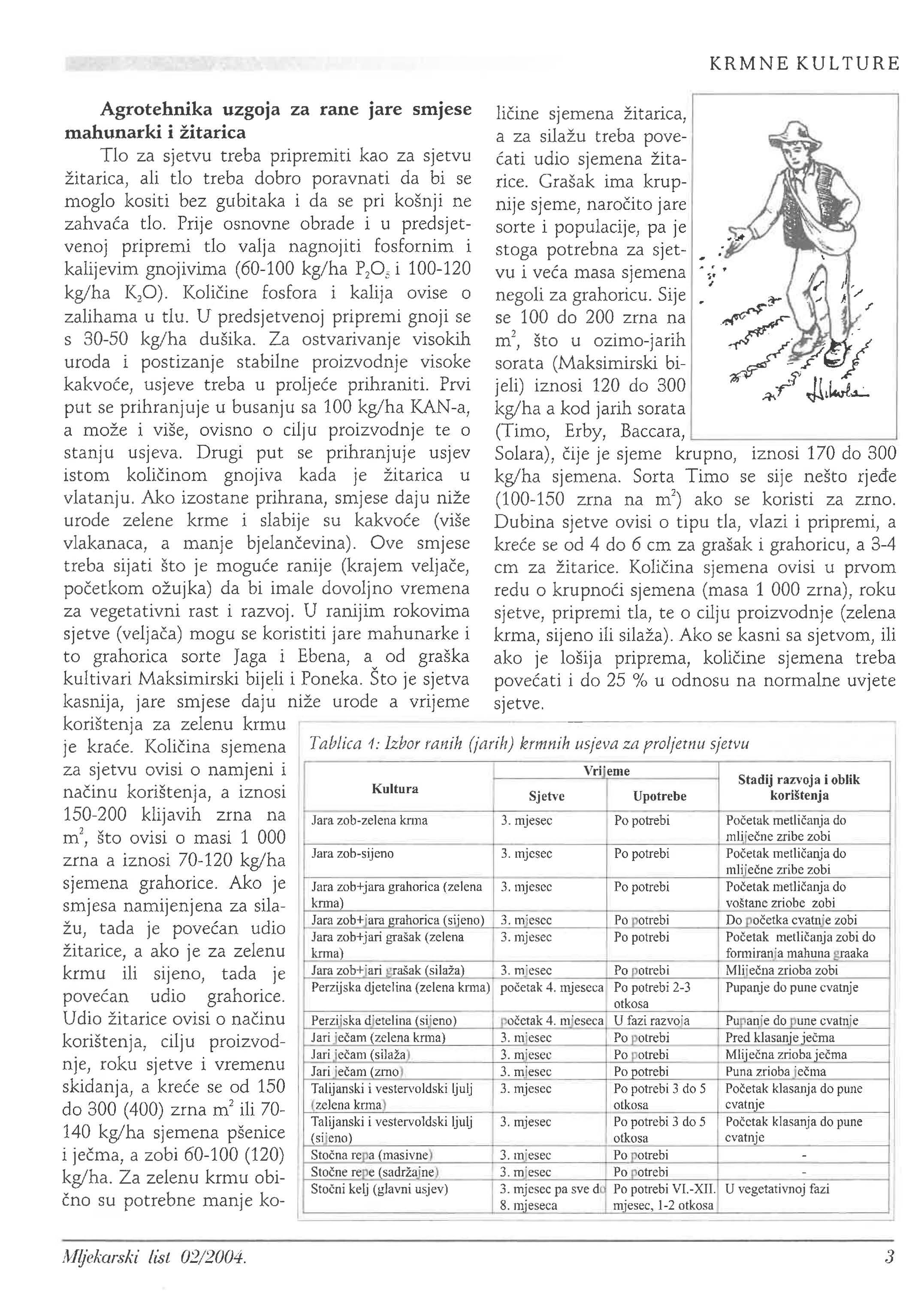 Tablica 1: Izbor ranih (jarih) krmnih usjevaza proljetnusjetvu