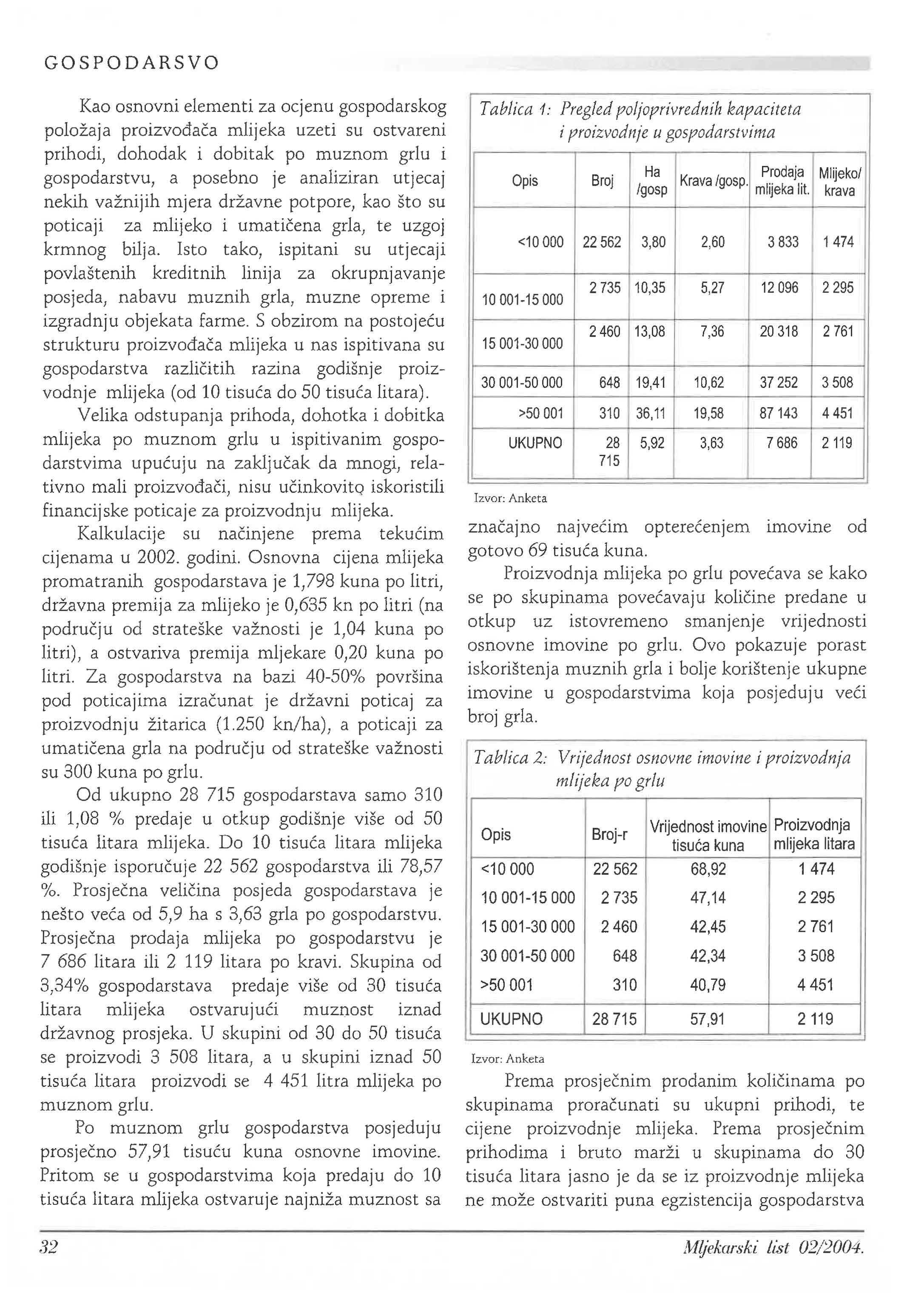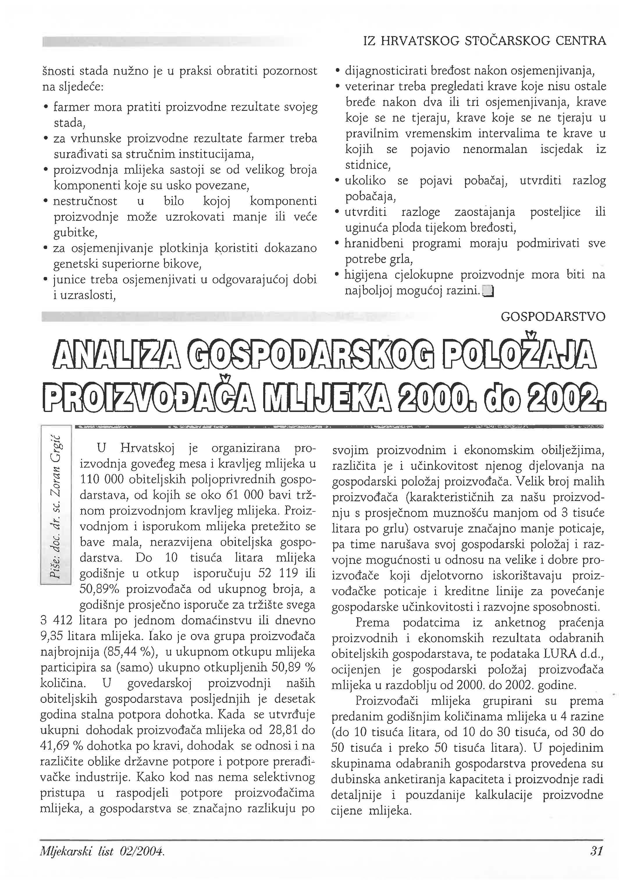 Analiza gospodarskog položaja mlijeka 2000. do 2002 .. __________________