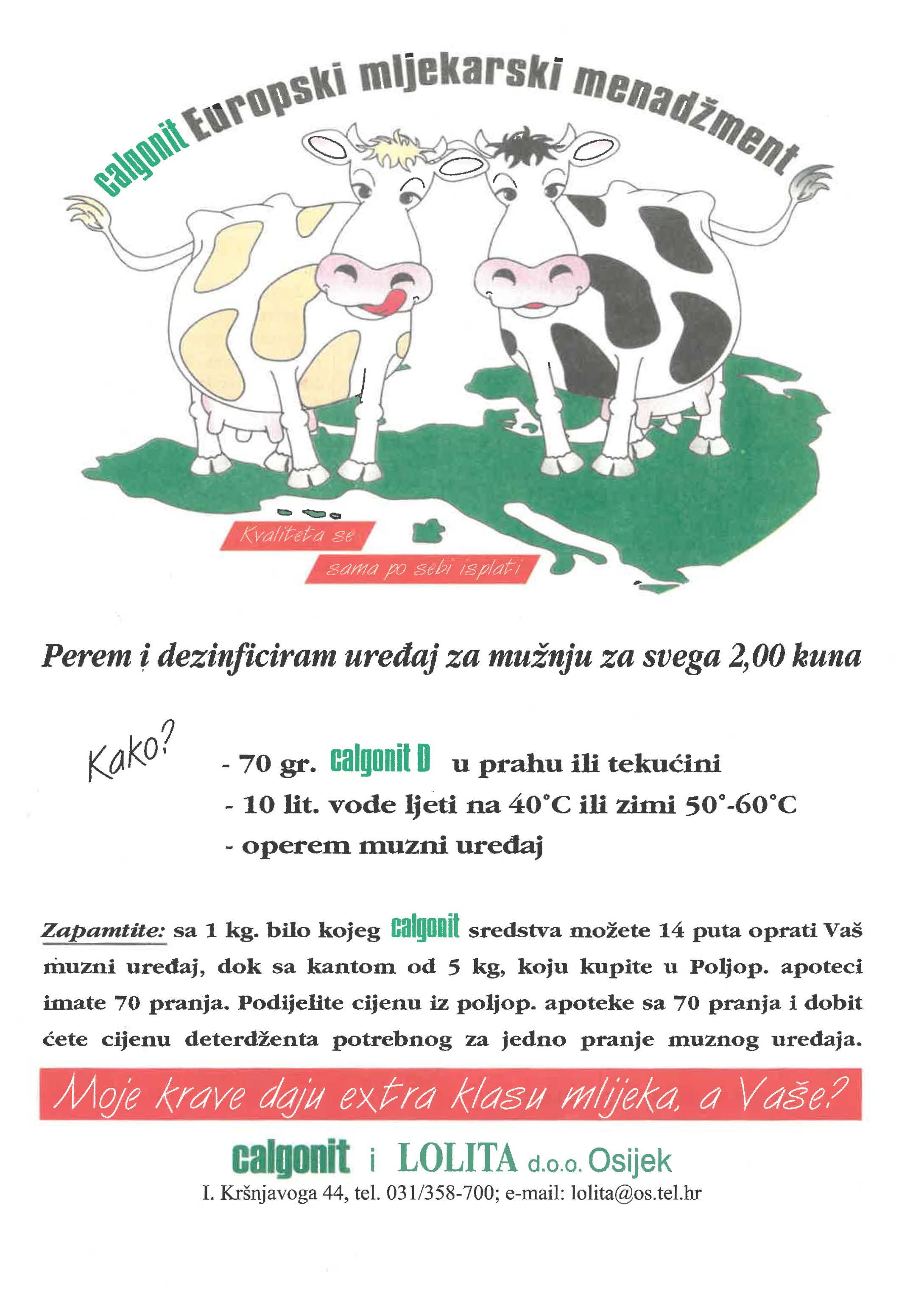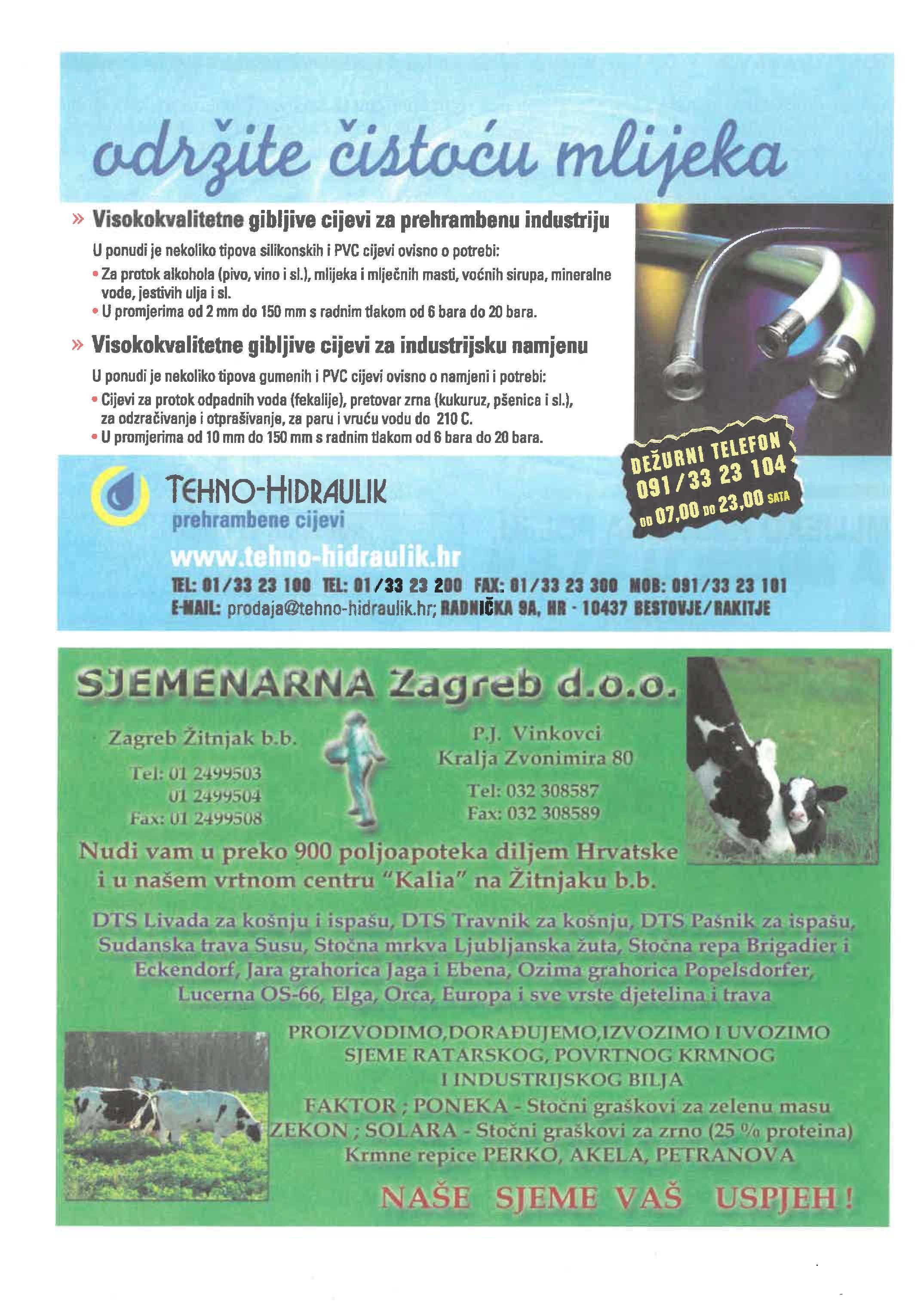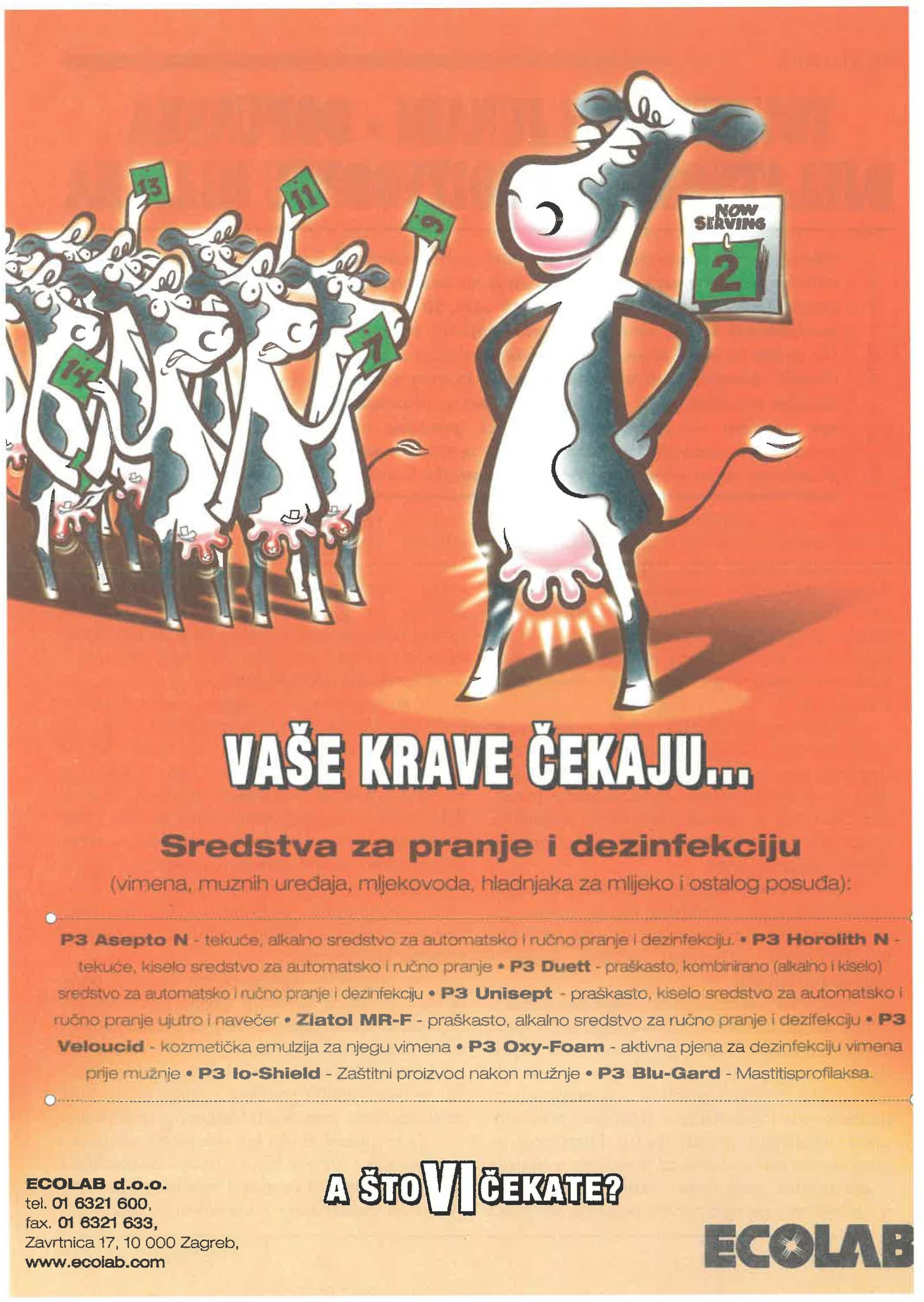 • mlijeko mora udovoljavati ekstra (E) dr. Ivo Belan, dipl. ing. Stjepan Brlek, dr. Stjepan Feldhofer, dr. odnosno prvoj (I.) klasi (podatci Hrvatskog stodipl. ing. Ljiljana Husinec, dipl. ing. Darko Kantoci, mr. se. Antun dipl. centra, Zagreb) ing. Darko Uher, Glavni i odgovorni urednik: dipl. ing. Juraj Podatke za protekli mjesec treba slati poštom Redaktorica: dipl. ing. Vera urednica: ing. Mirna na priloženom obrascu na adresu: Hrvatska Lektorica: Katarina-Zrinka prof., Vlasnik i Hrvatska mljekarska udruga, Zagreb, Uprava i uredništvo: Zagreb, mca 31/111,tel.: mljekarska udruga Zagreb, Ilica 31/III. 01/4833-349, 4831-265, fax: 01/4833-349, e-mail: hmu@zg.htnet.hr, MB: Podatke tijekom godine razmatrati i pro3206599, Žiro 2360000-1101408596, Cijena: 5,00 kn, cijeniti Povjerenstvo za dodjelu nagrade priprema i tisak: "Hlad", Pluska, Nikole Halpera 1, «Zlatni rog» a nagrada se Naklada: 43.ooo primjeraka godine.