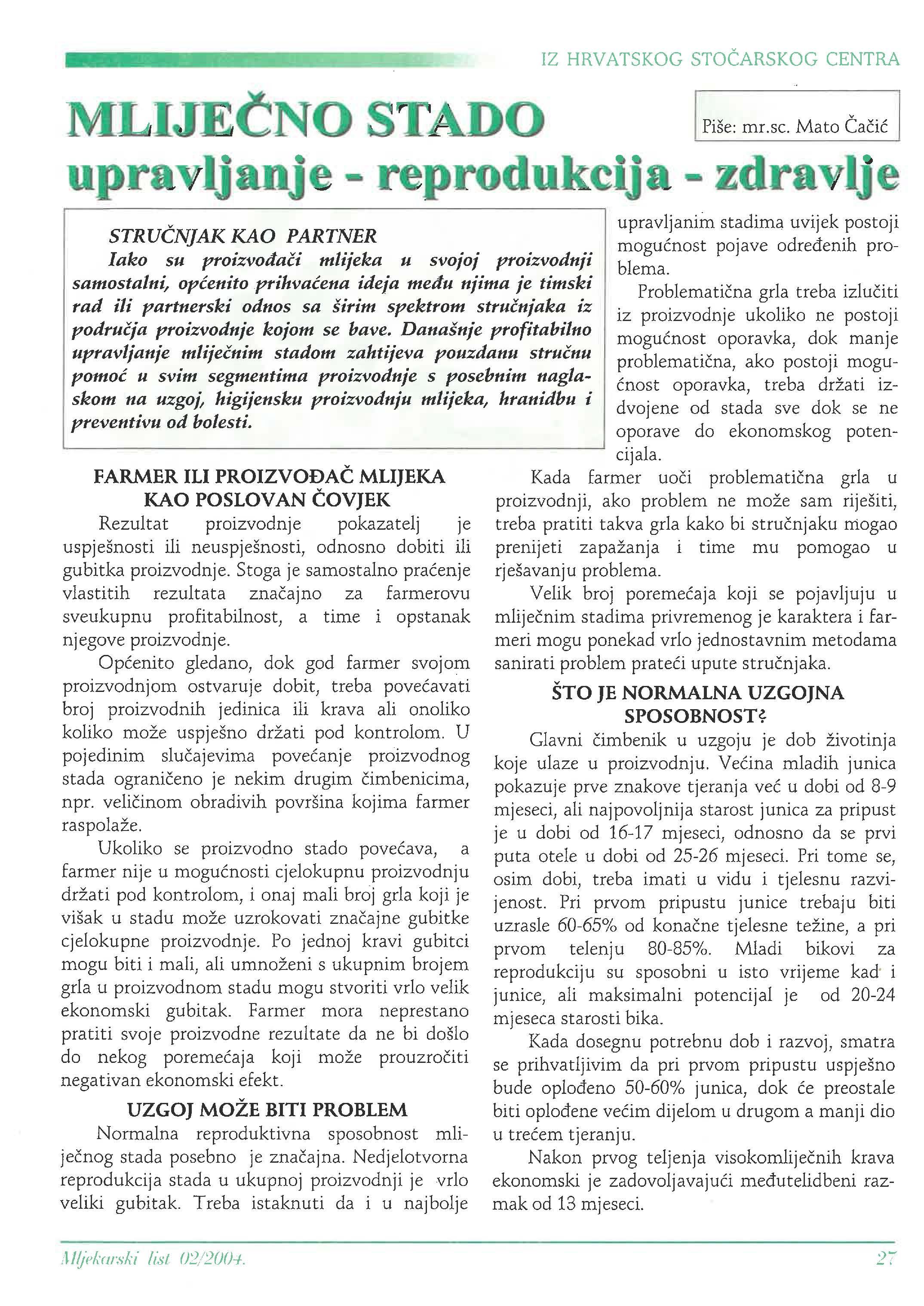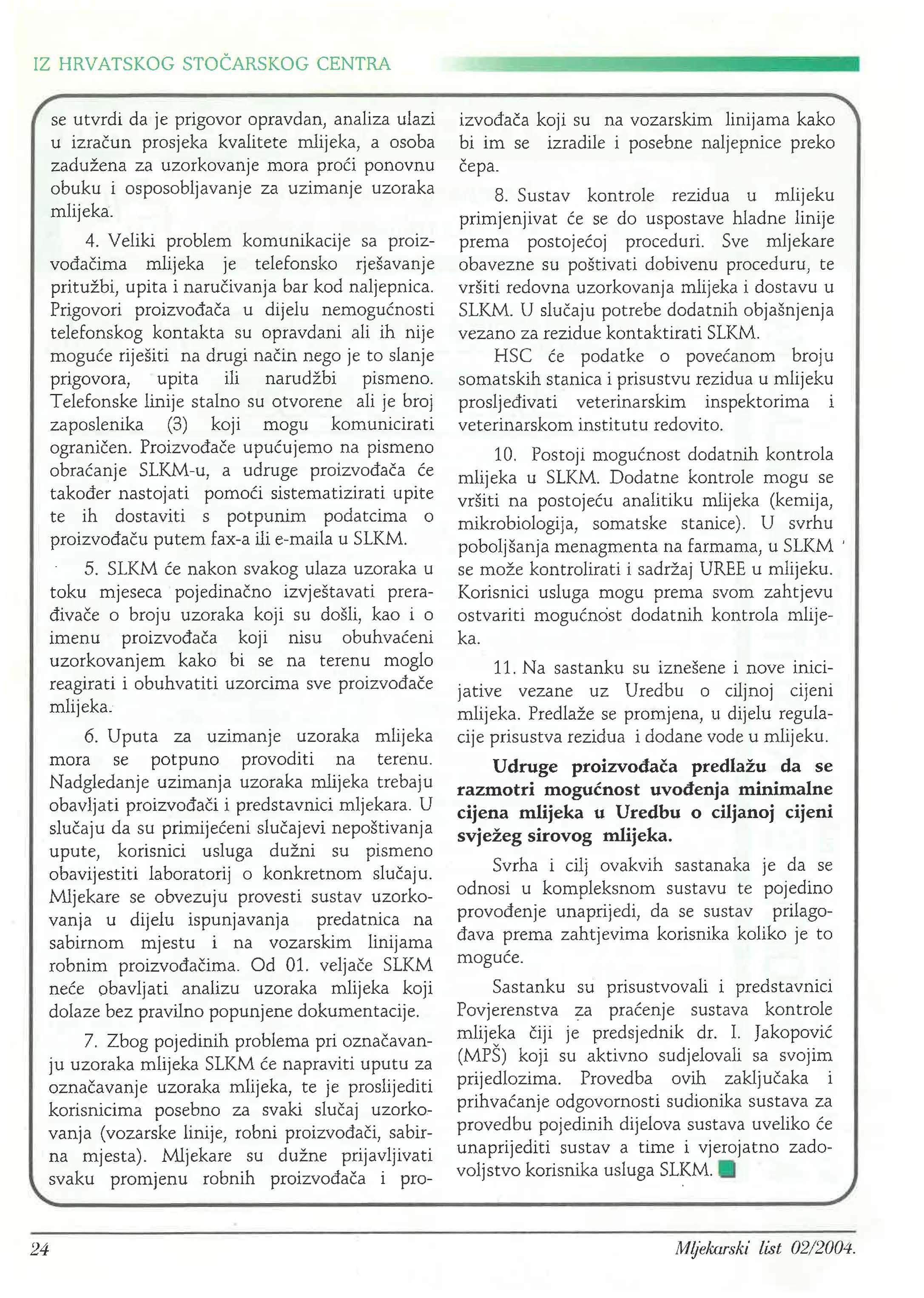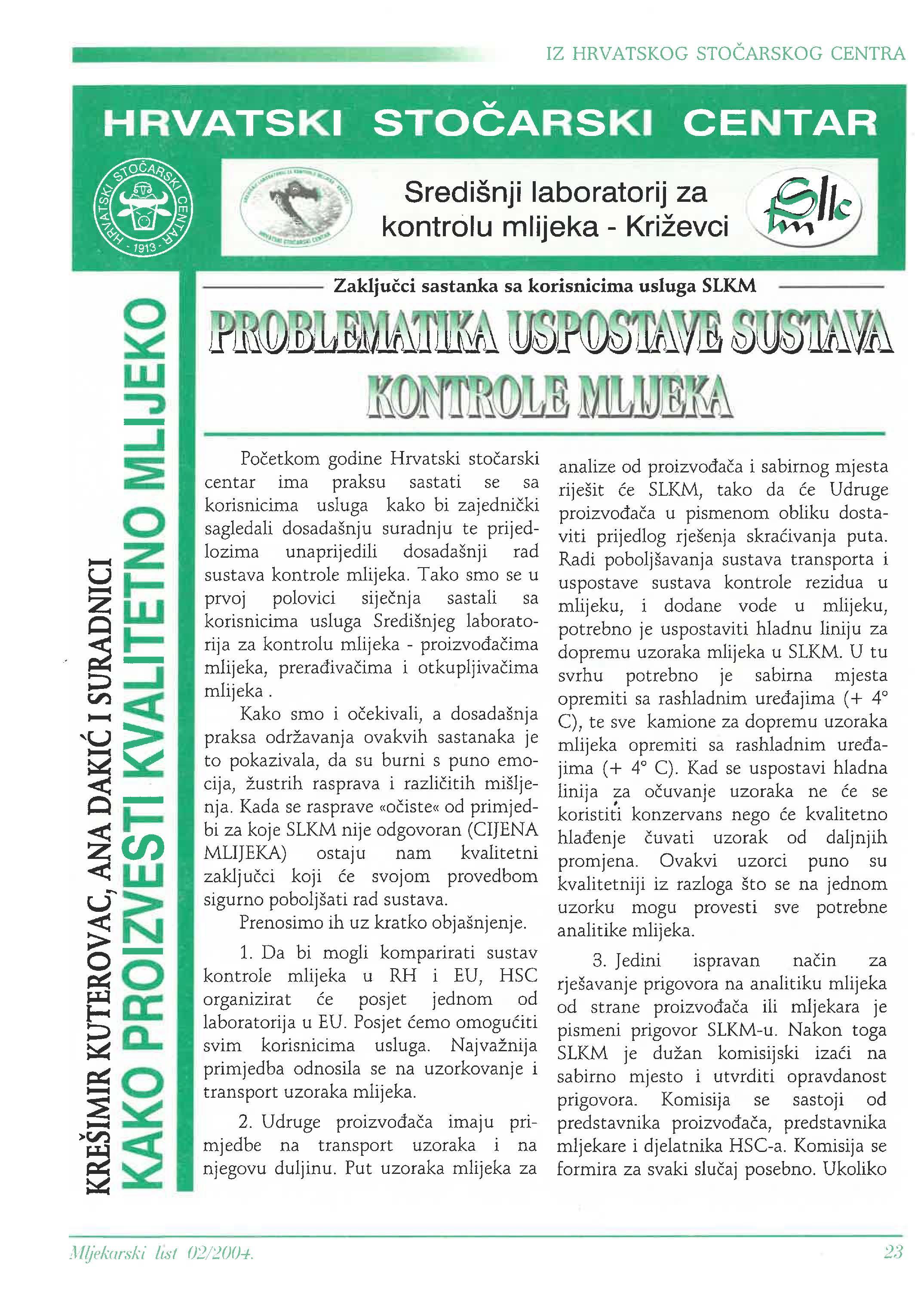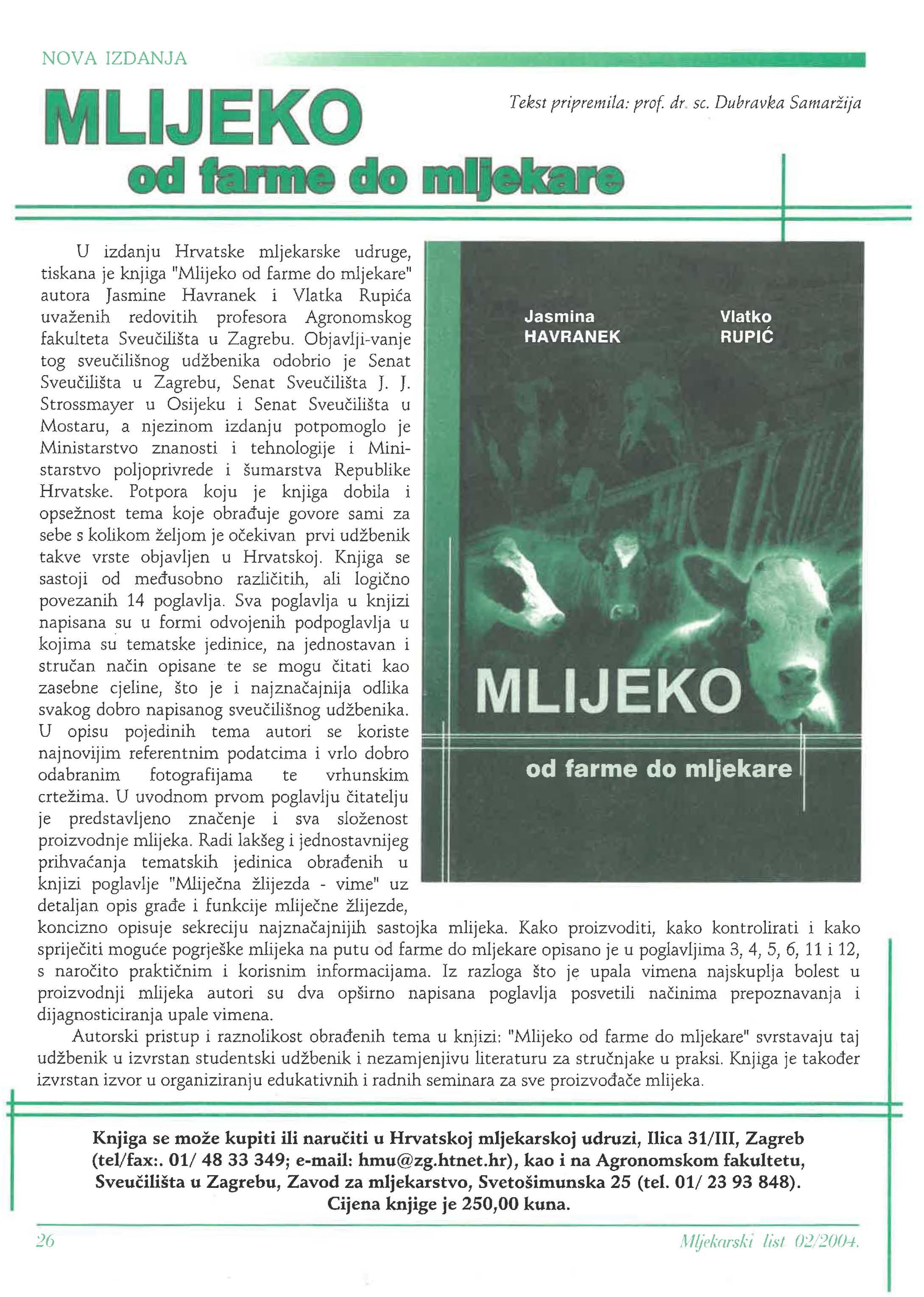 • mlijeko mora udovoljavati ekstra (E) dr. Ivo Belan, dipl. ing. Stjepan Brlek, dr. Stjepan Feldhofer, dr. odnosno prvoj (I.) klasi (podatci Hrvatskog stodipl. ing. Ljiljana Husinec, dipl. ing. Darko Kantoci, mr. se. Antun dipl. centra, Zagreb) ing. Darko Uher, Glavni i odgovorni urednik: dipl. ing. Juraj Podatke za protekli mjesec treba slati poštom Redaktorica: dipl. ing. Vera urednica: ing. Mirna na priloženom obrascu na adresu: Hrvatska Lektorica: Katarina-Zrinka prof., Vlasnik i Hrvatska mljekarska udruga, Zagreb, Uprava i uredništvo: Zagreb, mca 31/111,tel.: mljekarska udruga Zagreb, Ilica 31/III. 01/4833-349, 4831-265, fax: 01/4833-349, e-mail: hmu@zg.htnet.hr, MB: Podatke tijekom godine razmatrati i pro3206599, Žiro 2360000-1101408596, Cijena: 5,00 kn, cijeniti Povjerenstvo za dodjelu nagrade priprema i tisak: "Hlad", Pluska, Nikole Halpera 1, «Zlatni rog» a nagrada se Naklada: 43.ooo primjeraka godine.