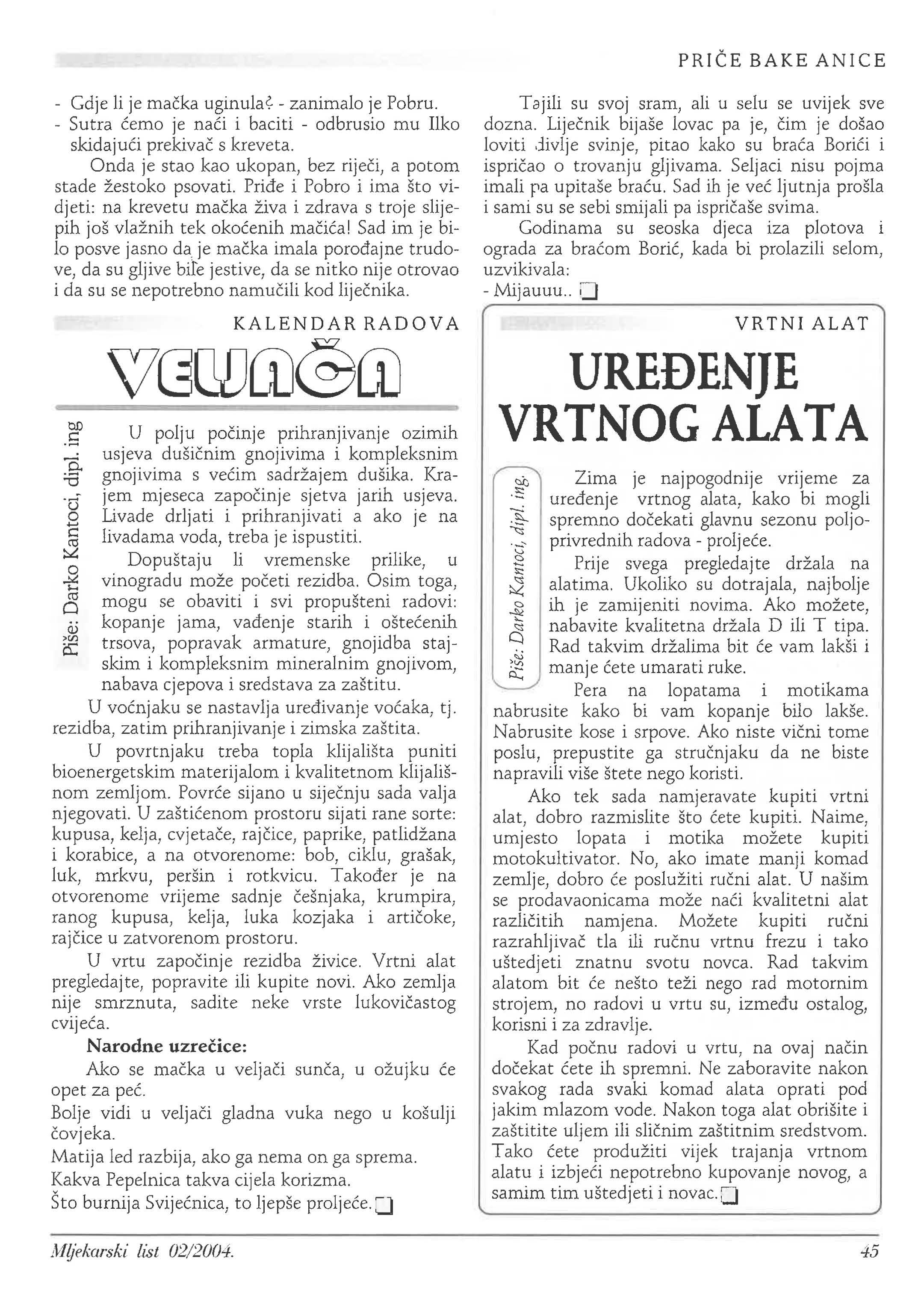 -~ U polju prihranjivanje ozimih usjeva gnojivima i kompleksnim o. :e gnojivima s sadržajem dušika. Krajem mjeseca sjetva jarih usjeva. Livade drljati i prihranjivati a ako je na livadama voda, treba je ispustiti.