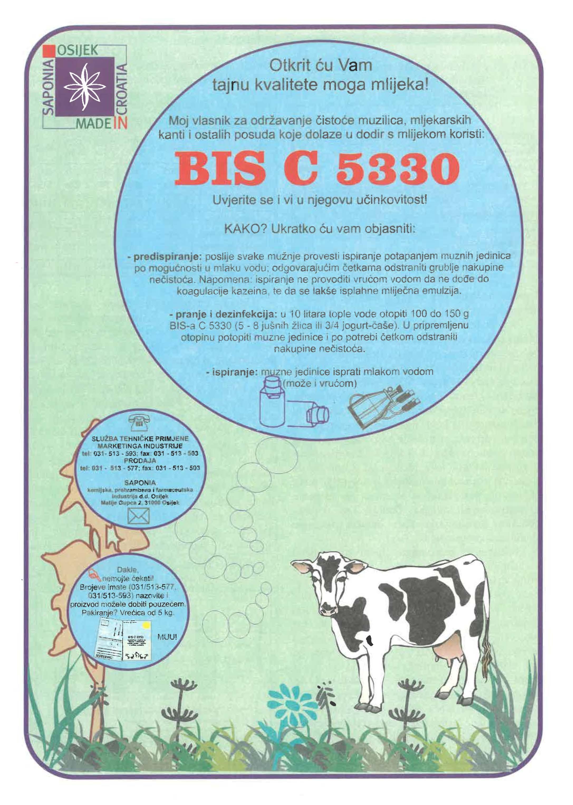 redstva za pran a dazl vimena, muznih mljekovoda. hladnjaka za mlijeko I ostalog
