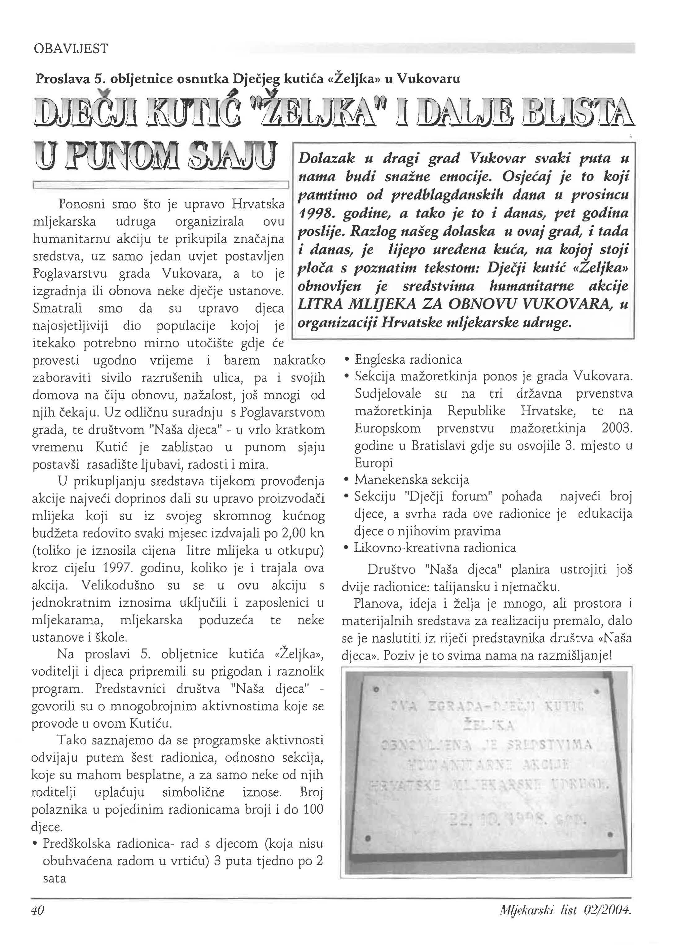 OBAVIJEST "Željka" i dalje blista u punom sjaju_ _ _ 40 • Priložena potvrda o