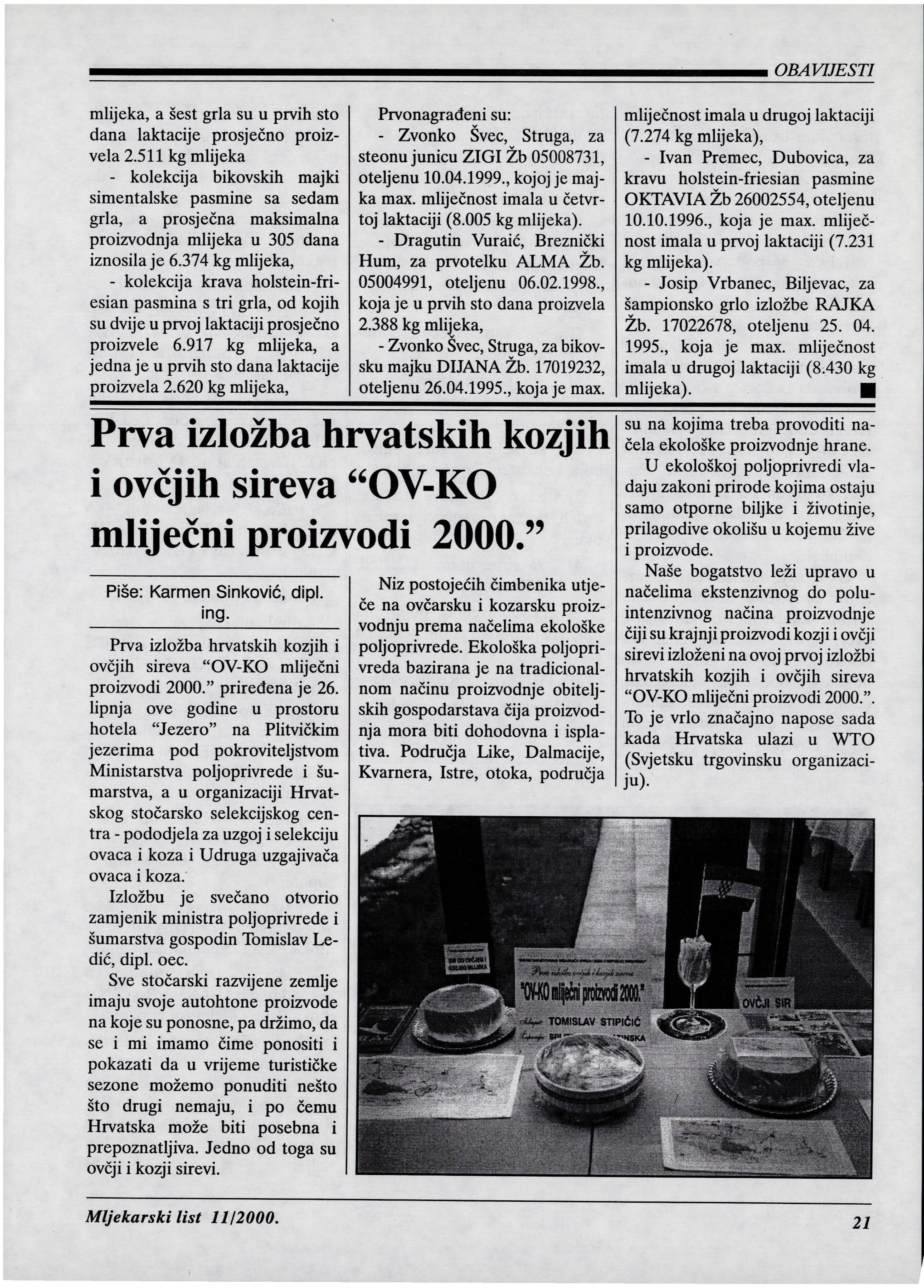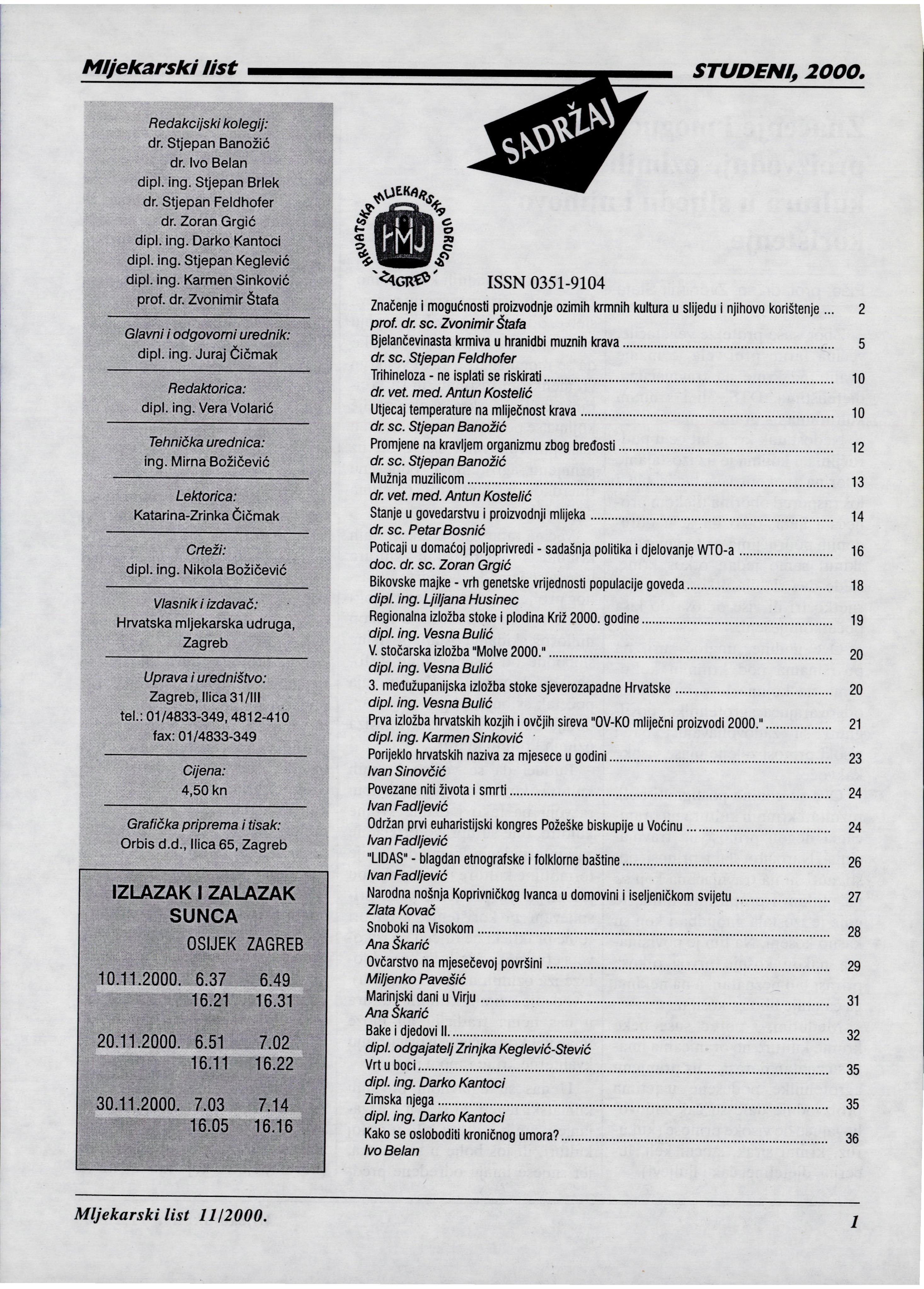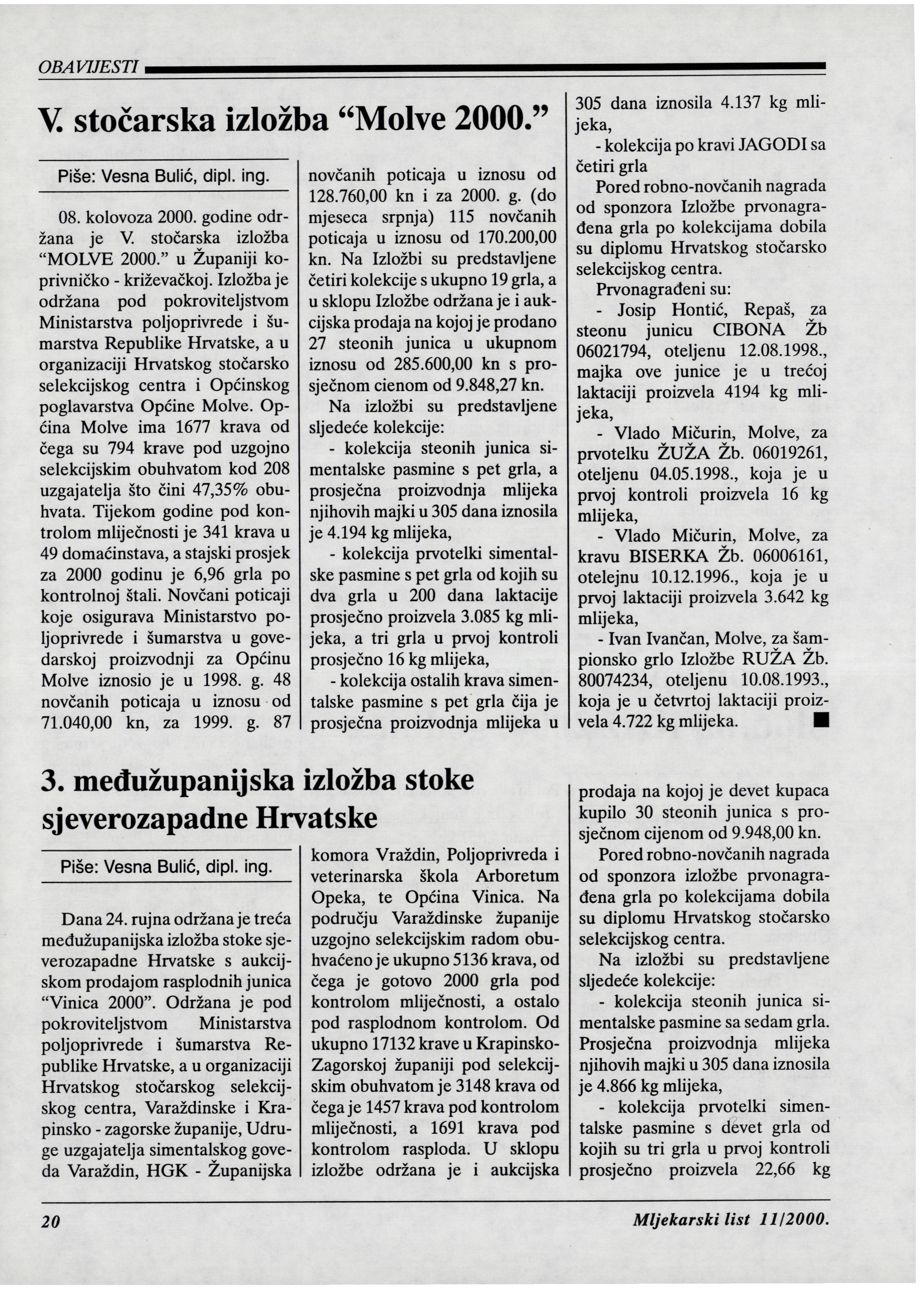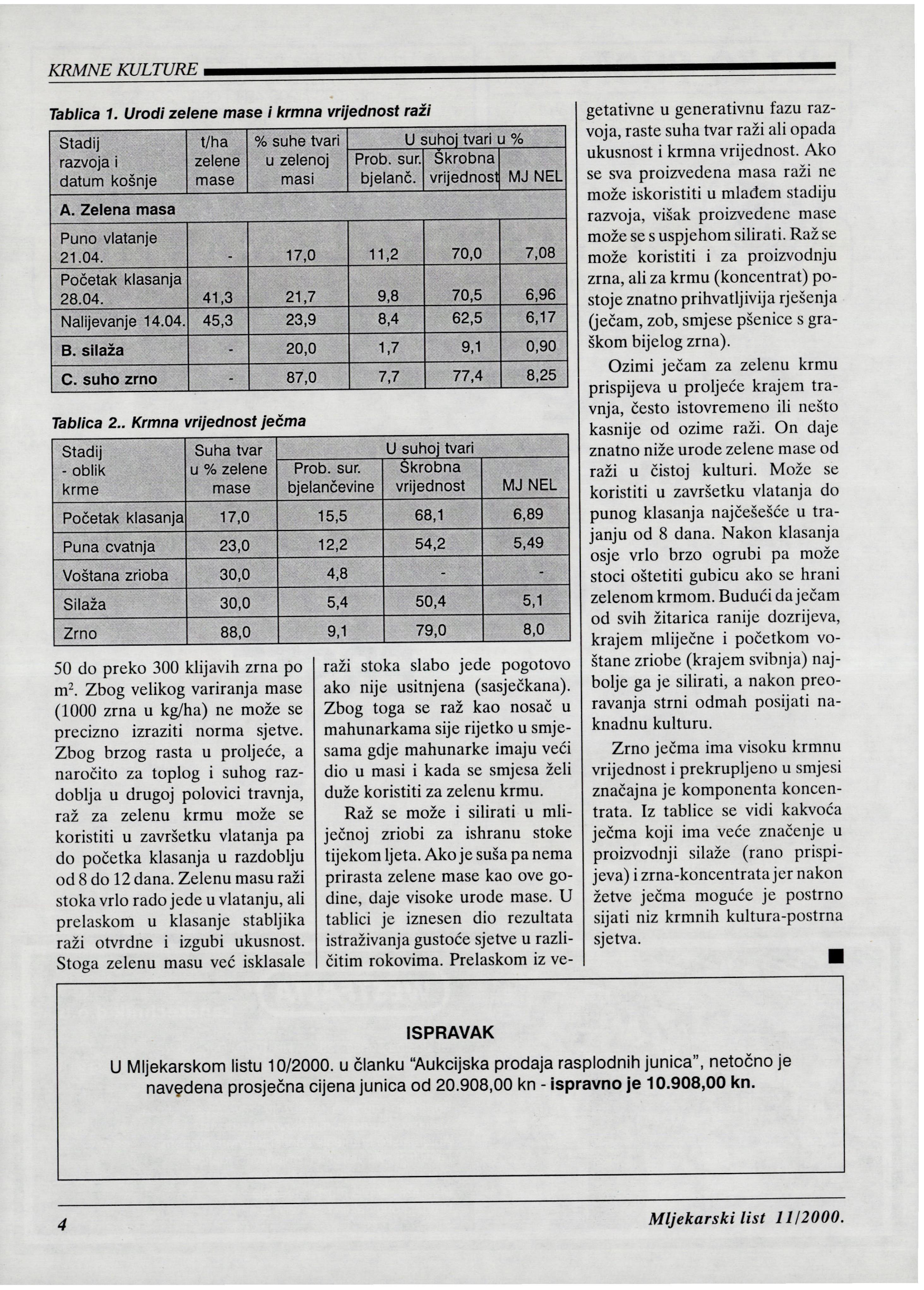 U Mljekarskomlistu 10/2000. u članku “Aukcijskaprodajarasplodnihjunica",netočno je navedenaprosječnacijenajunica od 20.908,00 kn - ispravnoje10.908,00 kn