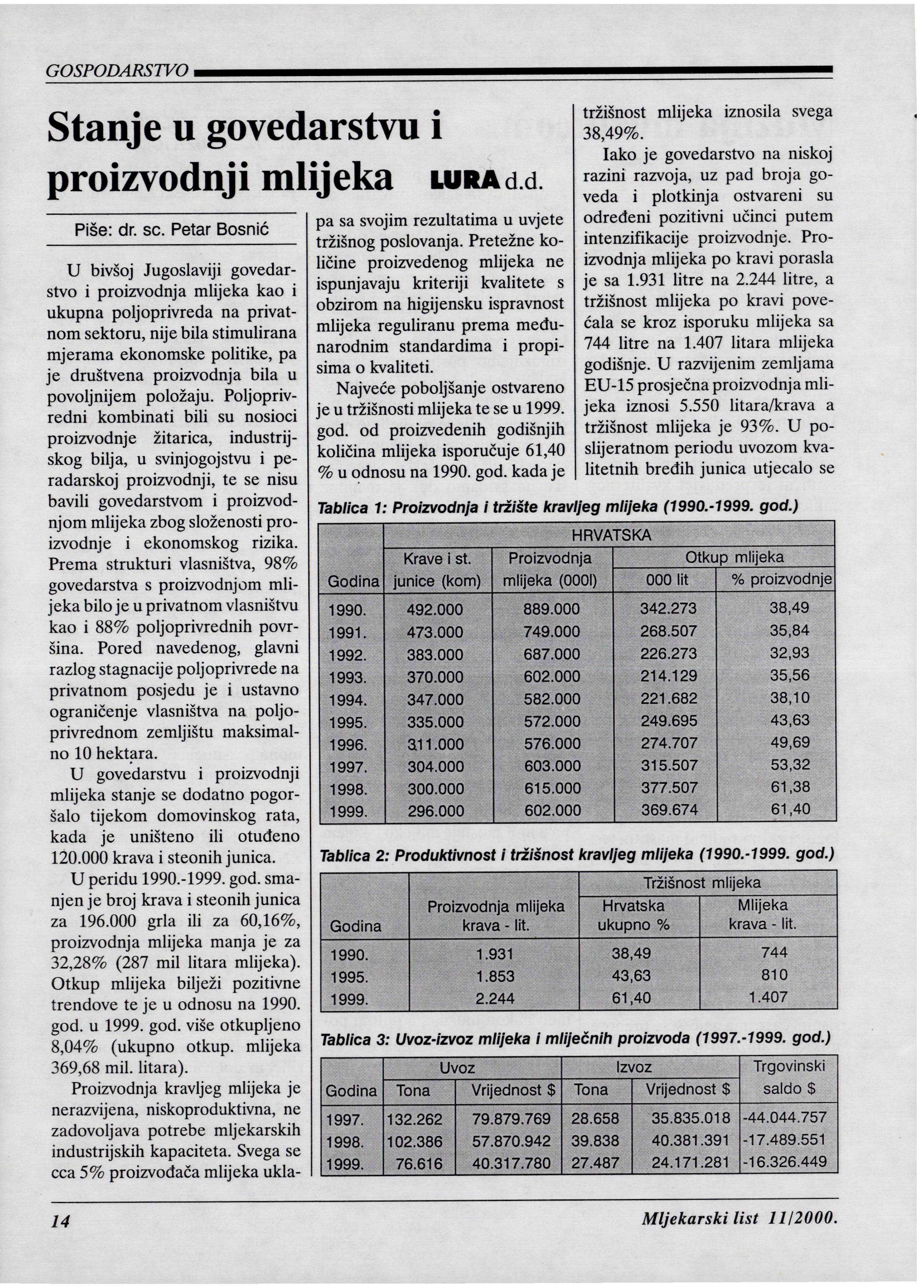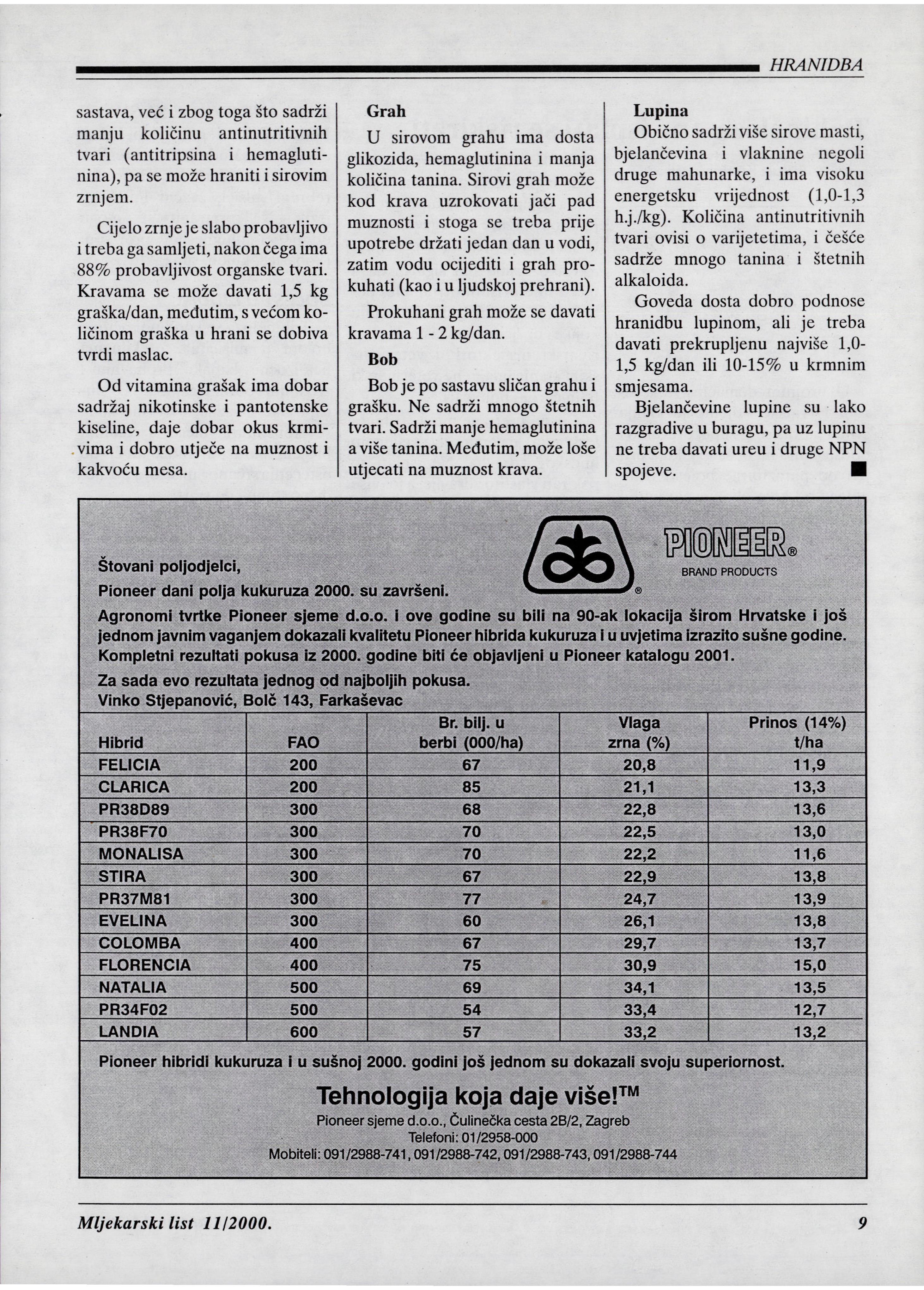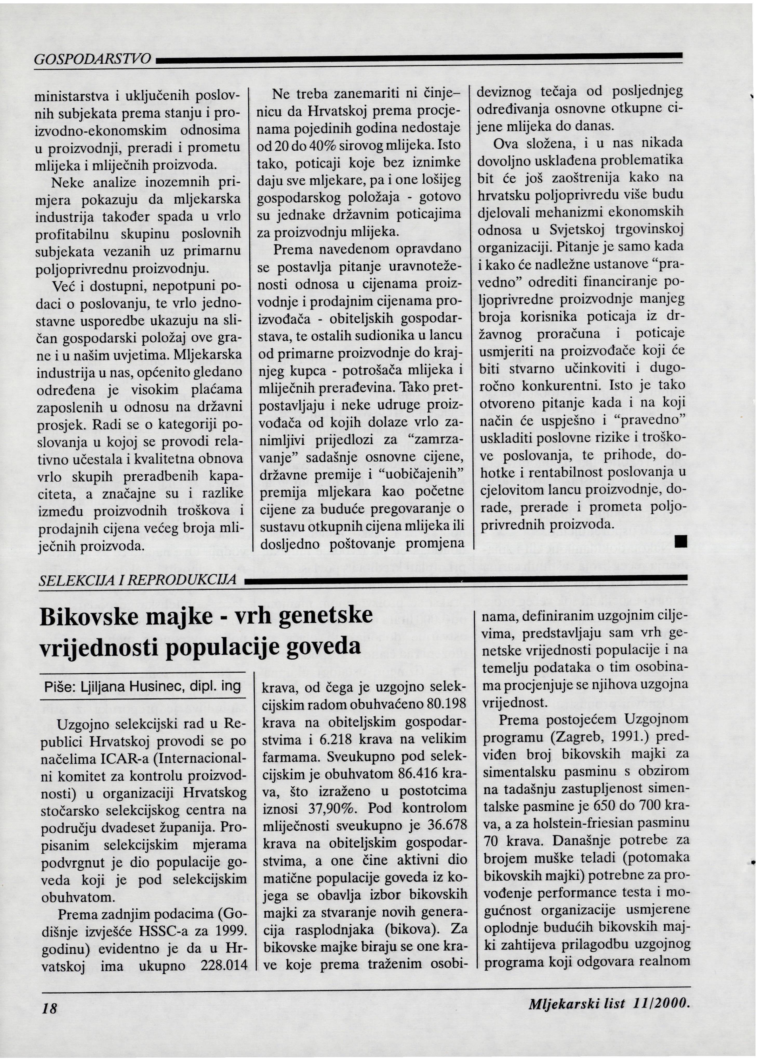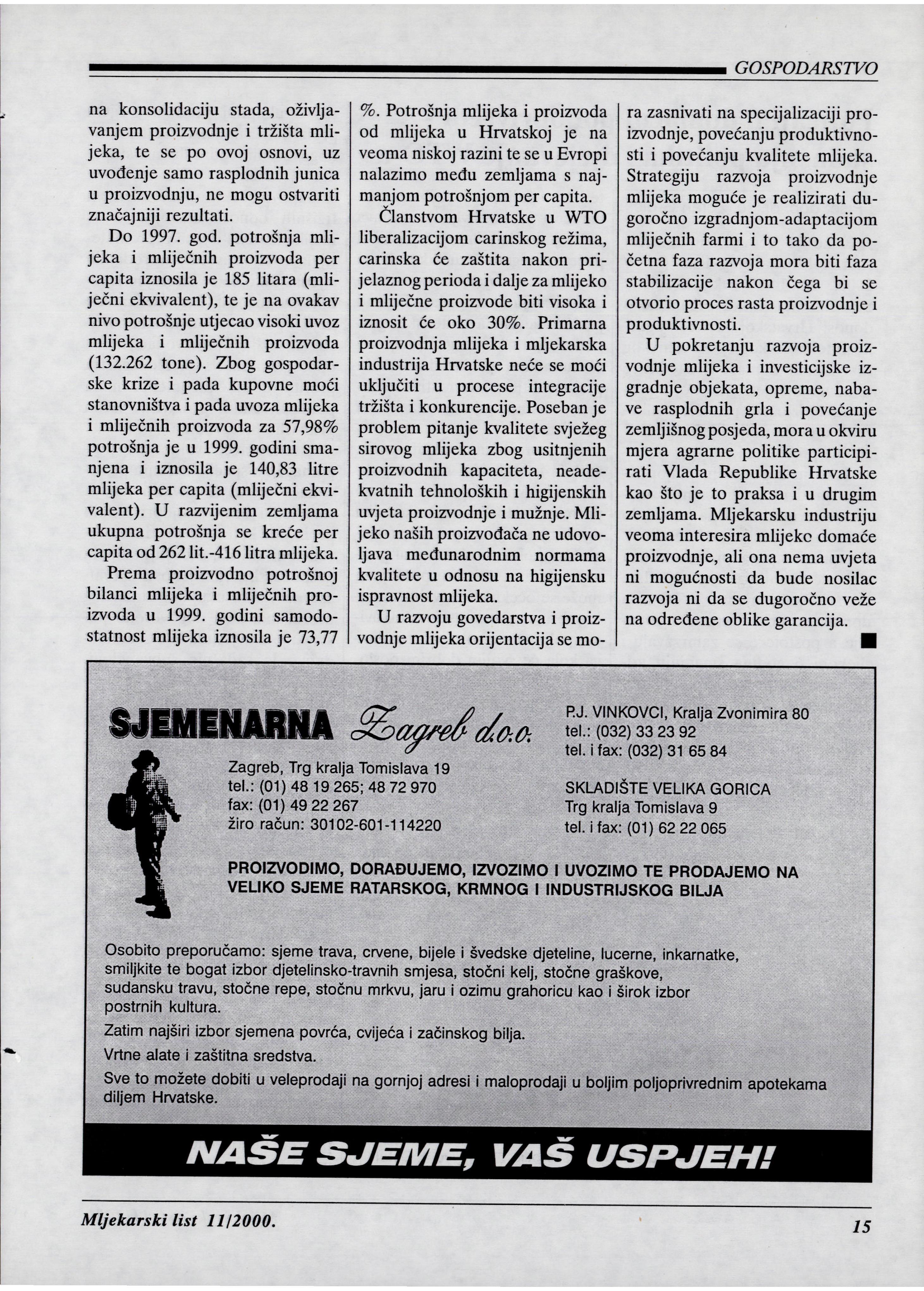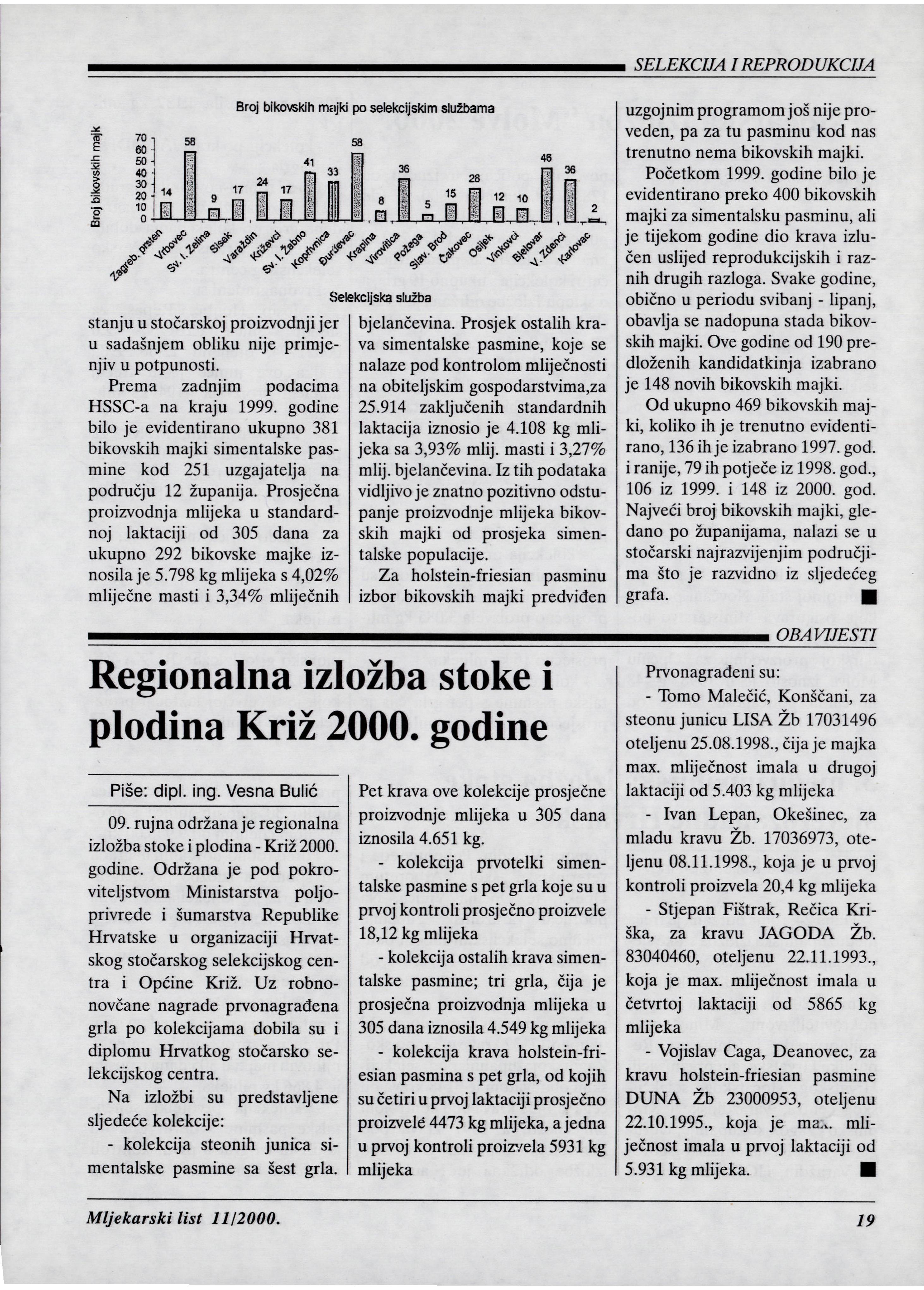 U Mljekarskomlistu 10/2000. u članku “Aukcijskaprodajarasplodnihjunica",netočno je navedenaprosječnacijenajunica od 20.908,00 kn - ispravnoje10.908,00 kn