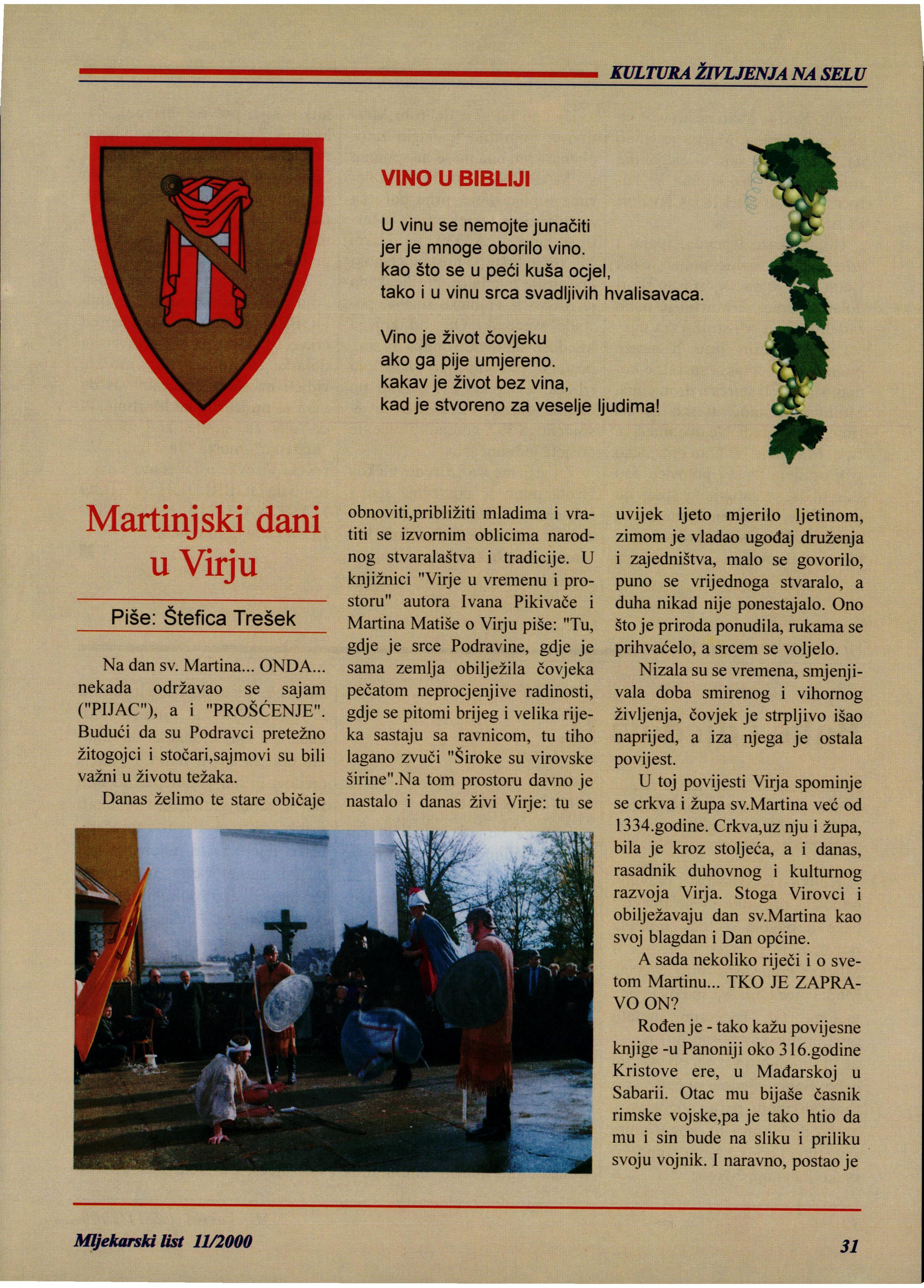 I u čast ljubavi i dobrote, u čast svijuonih koji su mislili i činili DOBRO, u Virju se izvodi ispred crkve sv Martina scenska vizija dolaska sv Martina (štomožete vidjeti na slici).Pozivam vas da nam se pridružite na Martinje, ili da nas se sjetite kod obreda “krštenja" mošta Ja i mojiVirovci i Virovke ostat ćemo u uvjerenju da DOBRI DUH SVETOG MARTINA LUTA NAŠIM SELOM i čini dobra djela...