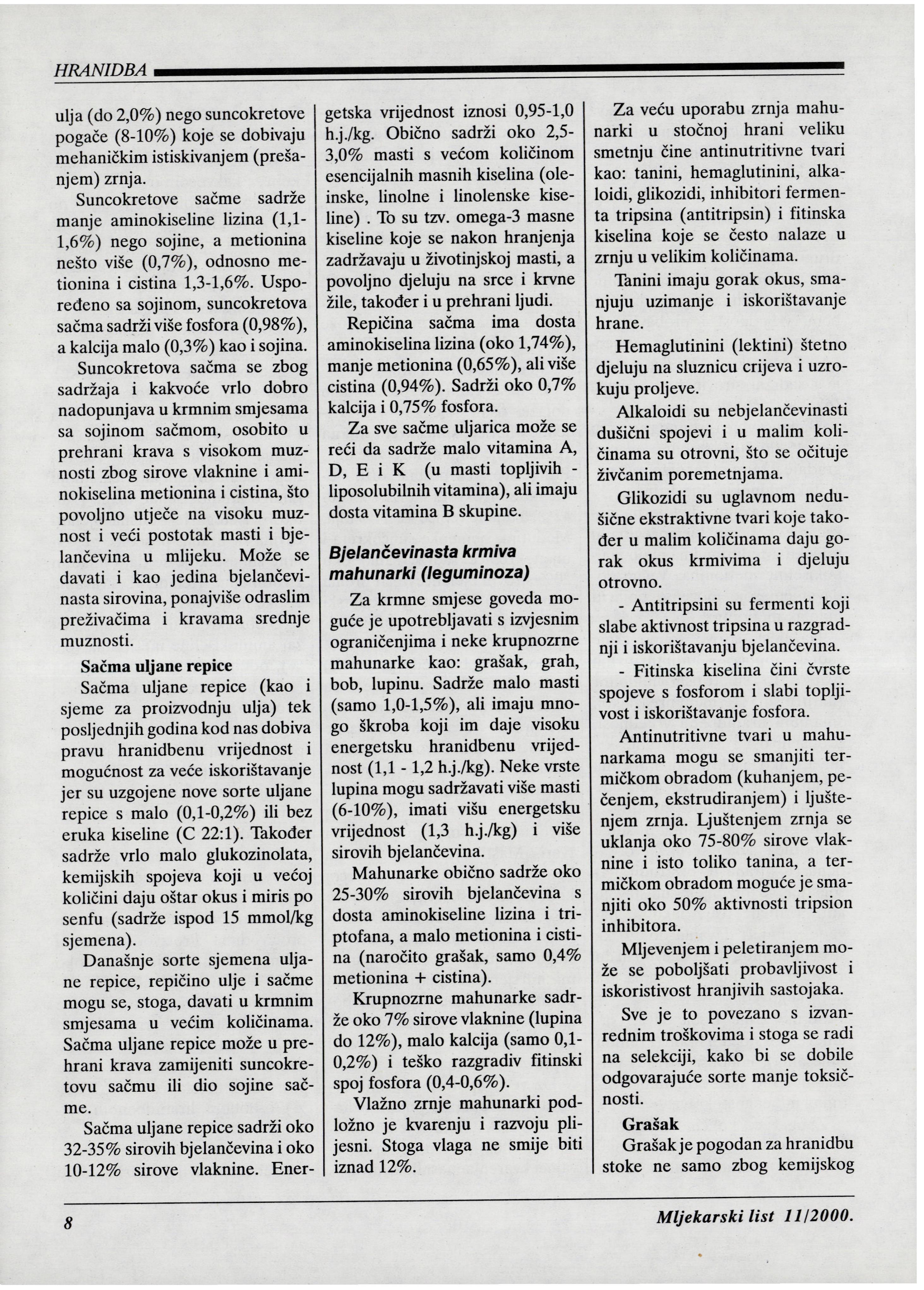 davati kravama s visokom mliječnosti u količini iznad 1,01,5 kg dnevno ili u potpunimkrmnim smjesamatreba davati najviše 1015%
