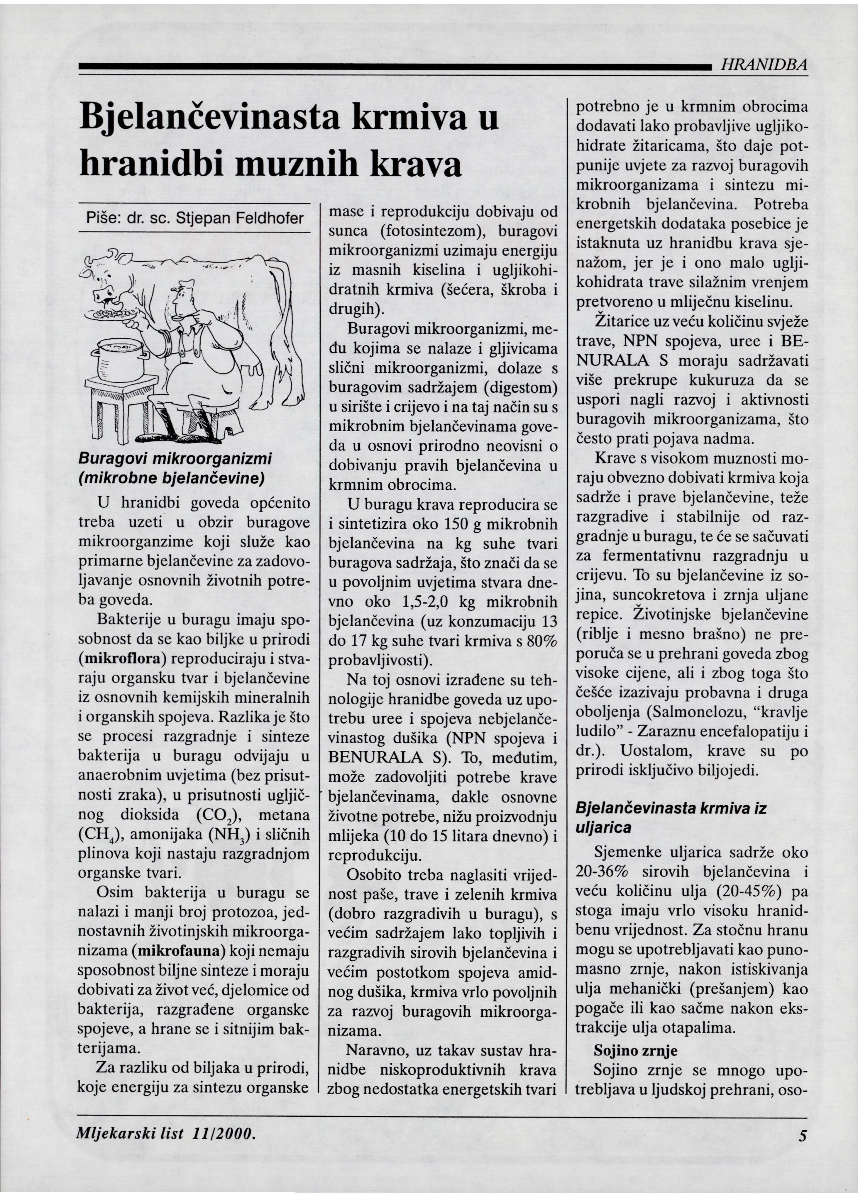 U hranidbi govedaopćenito treba uzeti u obzir buragove mikroorganzimekojisluže kao primarnebjelančevine za zadovoljavanjeosnovnih životnih potre- ba goveda.