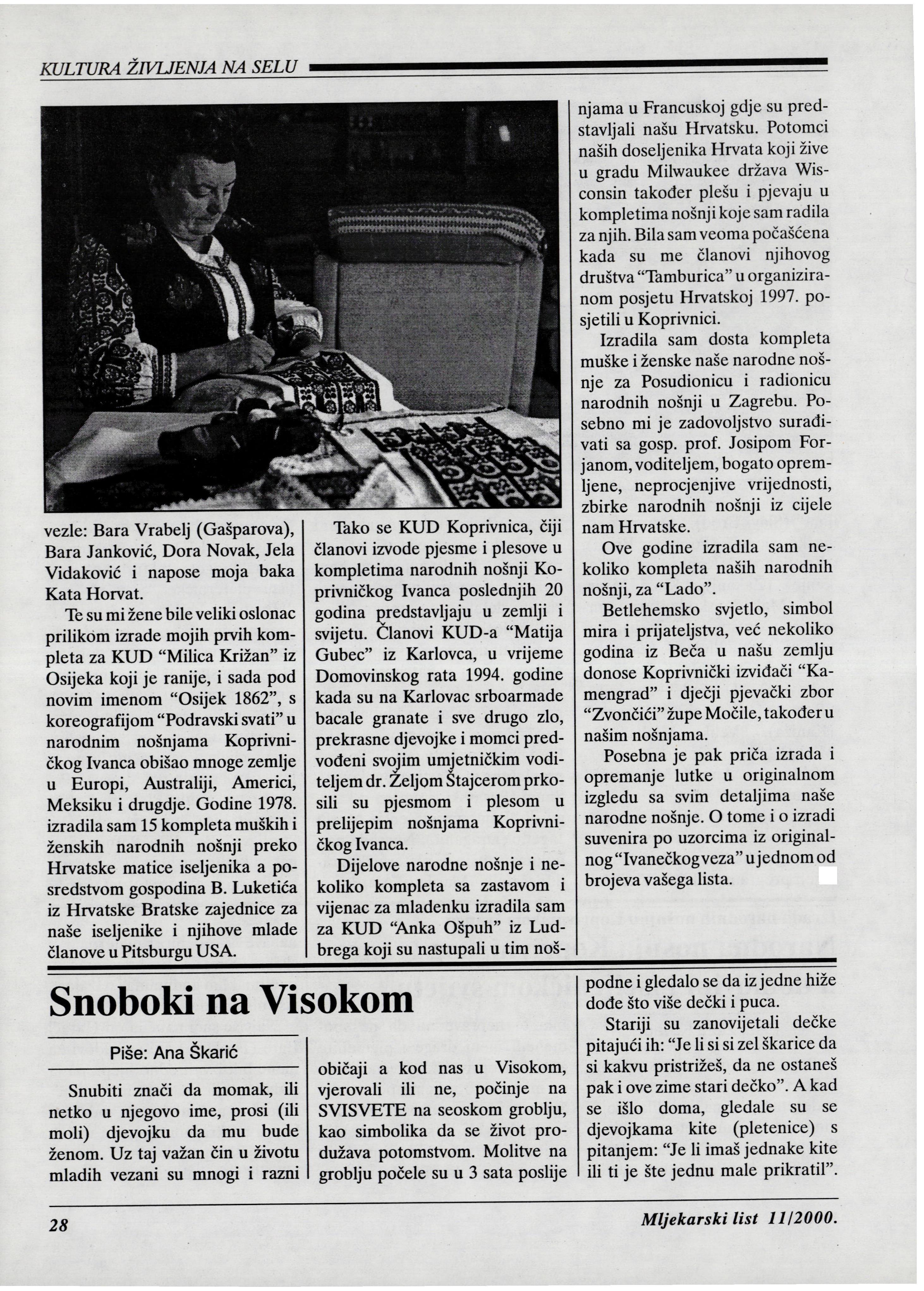 Pripremiti su se morale mnoge važne i sitne stvari Mladenec je vodil brigu za mužikaše, dok su pri puciužurbano čihali perjejerje mlada morala dopeljati tri nabita vanjkuša,blazinu s perjemilijepu posteljinu.Kopertaje bila ili našita ili štikana kao i stolnjaci kojejemlada sama napravilajer se kod nas pune držale do ručnog rada Kod nas u Visokom bila je nekad podukaiz kuhanja,ručnog rada u što spada:našivanje, štikanje i štrikanje. Imali smo i Djevojačkiklub,gdjesu se puce vučile plestikošare i cekere z ogulinja od kukuruza A to su si delale i na pašiz kravami i svinjami.