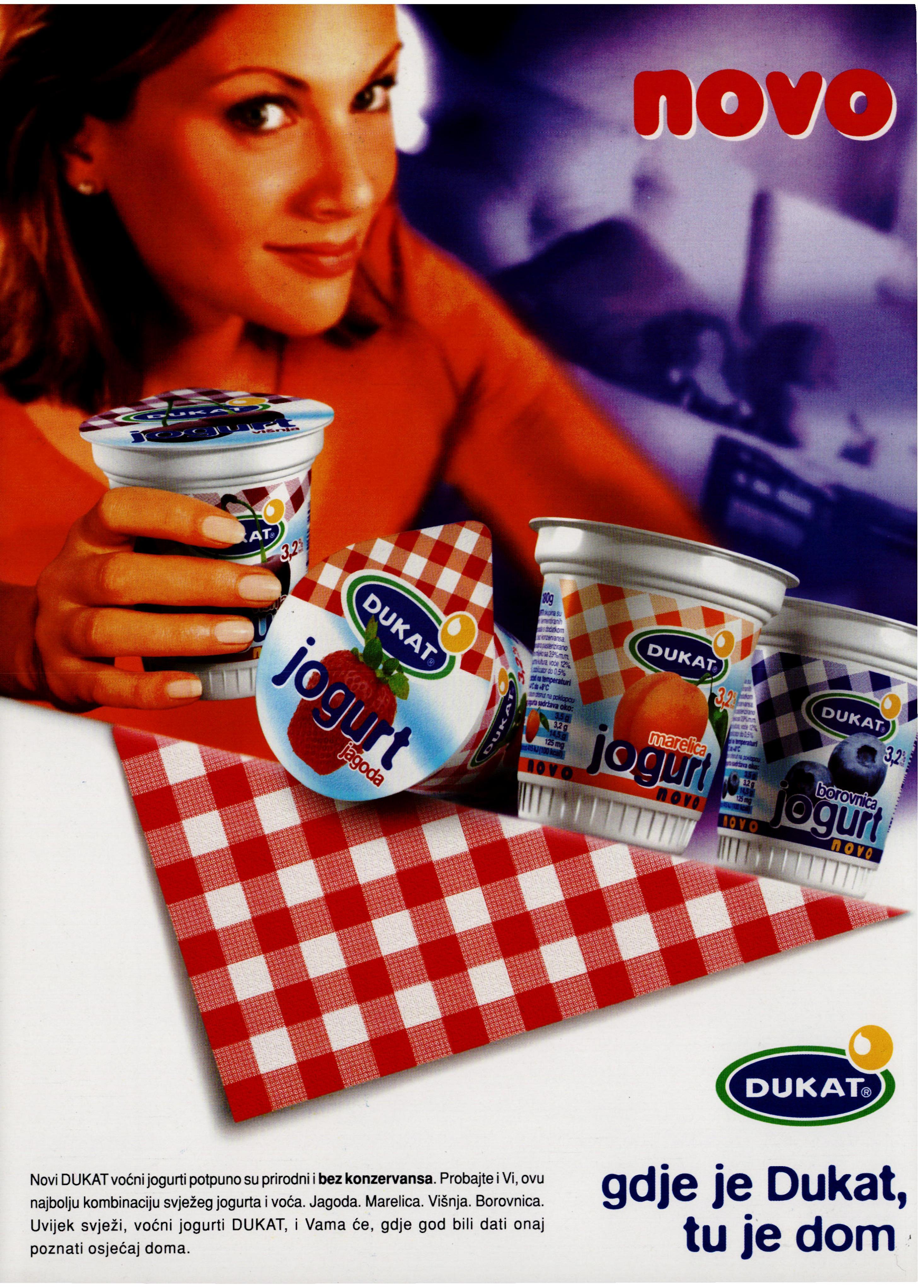 e Novi DUKAT voćnijogurtipotpuno su prirodniibezkonzervansa Probajte iVi,ovu g d ) e je D u k at 9 najboljukombinacijusvježegjogurta i voća Jagoda.Marelica Višnja Borovnica Uvijeksvježi, voćni jogurtiDUKAT, i Vama će, gdjegodbili dati onaj t 2 d poznatiosjećaj doma u je om j