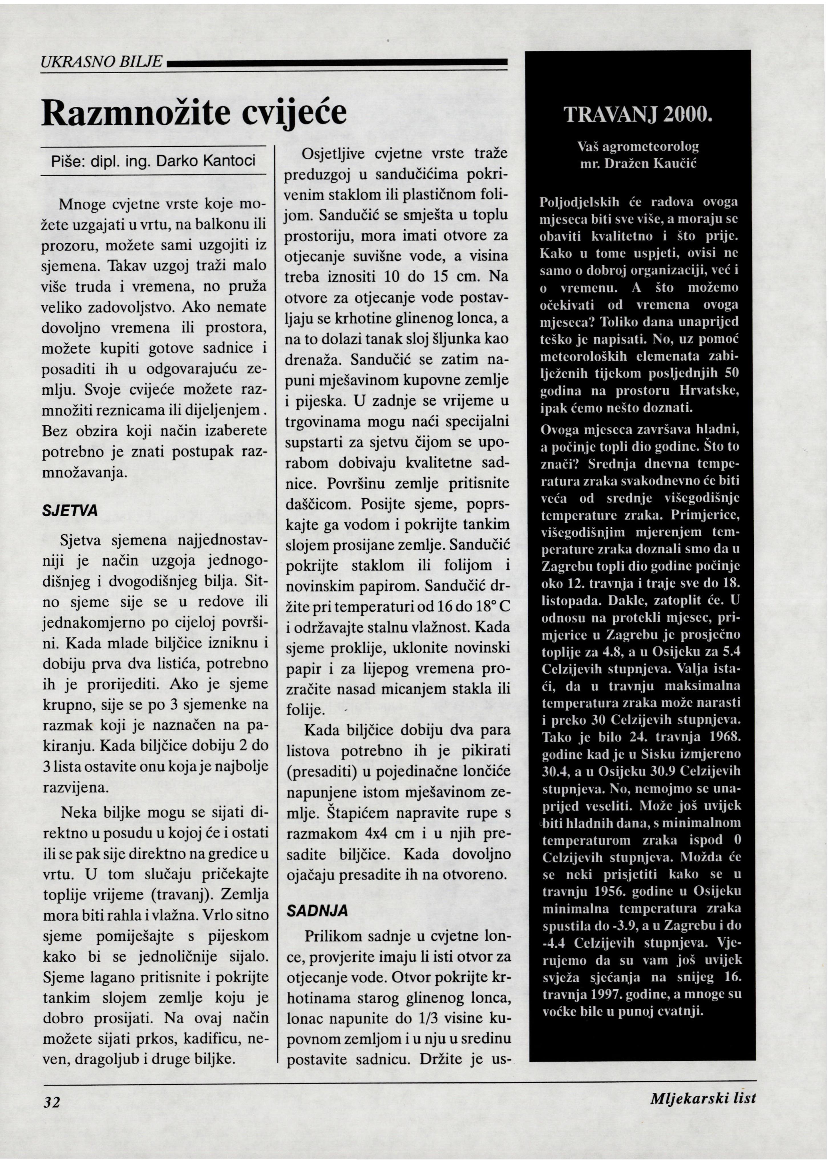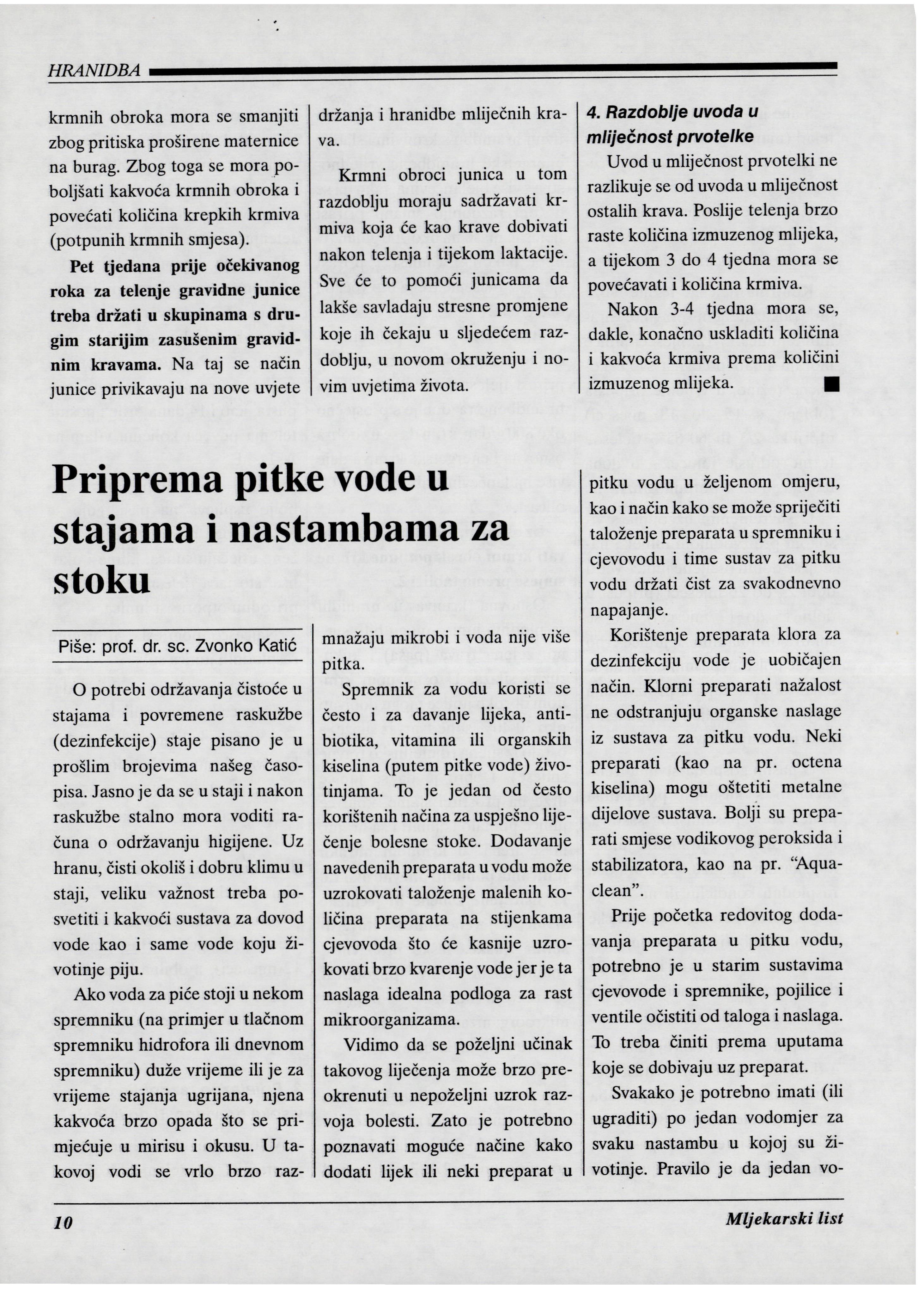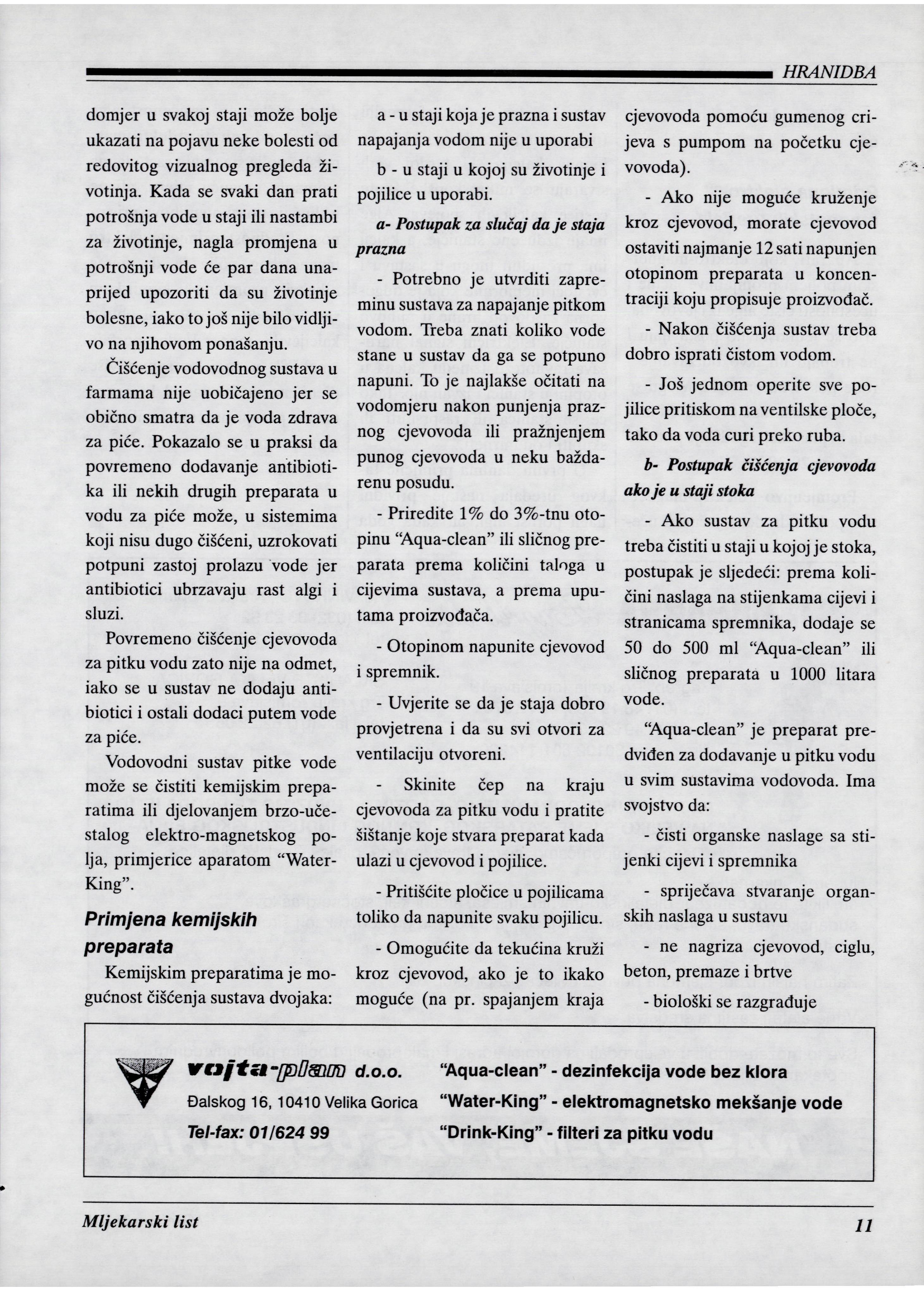 O potrebiodržavanjačistoće u stajama i povremene raskužbe (dezinfekcije)stajepisanoje u prošlimbrojevimanašegčasopisa.Jasno jeda se u stajiinakon raskužbe stalno mora voditi računa o održavanjuhigijene. Uz hranu,čistiokoliš i dobru klimu u staji,veliku važnost treba posvetiti ikakvoći sustava za dovod vode kao i same vode kojuživotinjepiju.