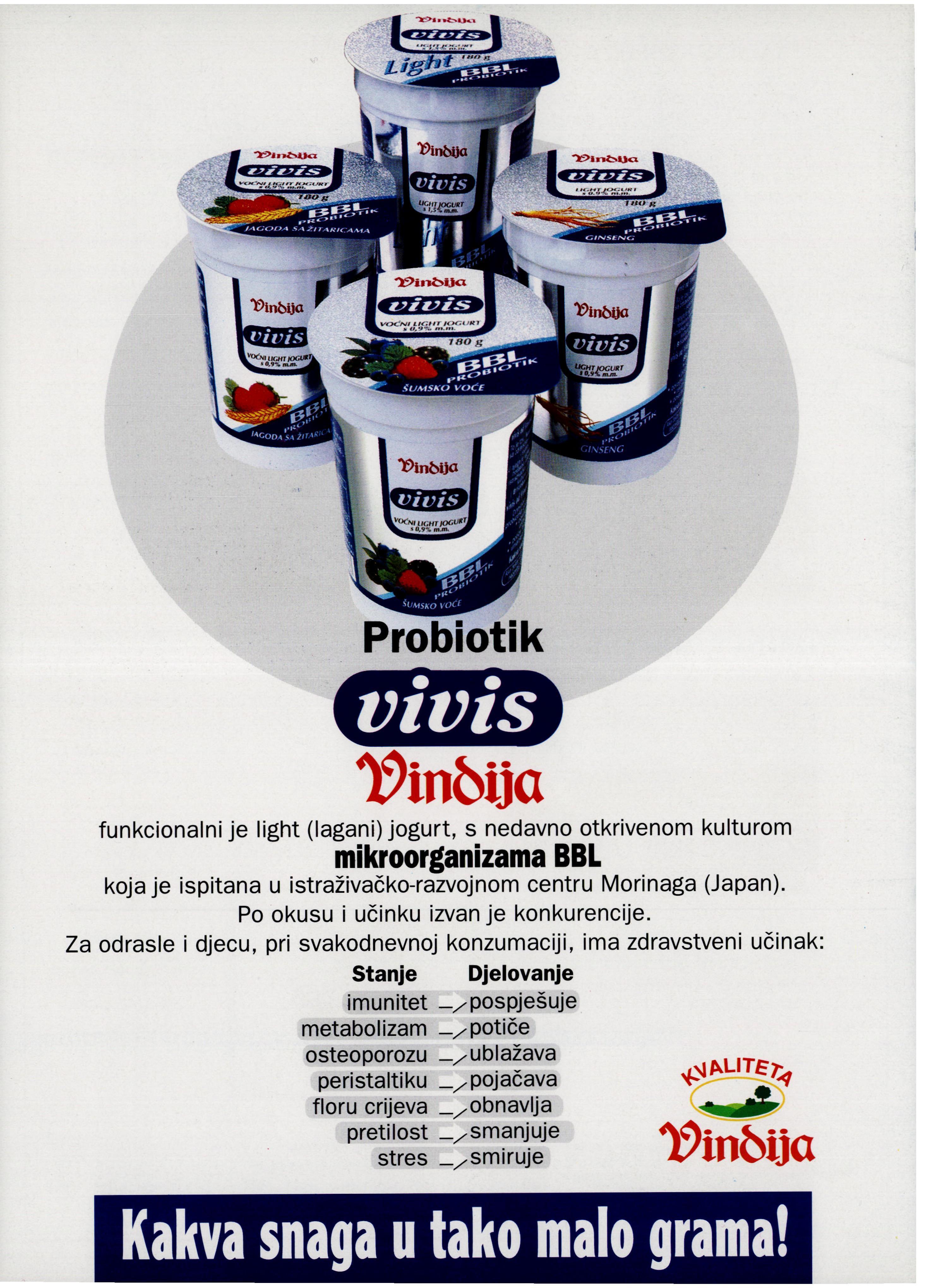 funkcionalnije light(lagani)jogurt, s nedavno otkrivenom kulturom mikroorganizama BBL kojaje ispitanau istraživačkorazvojnom centru Morinaga (Japan). Po okusu iučinku izvanje konkurencije.