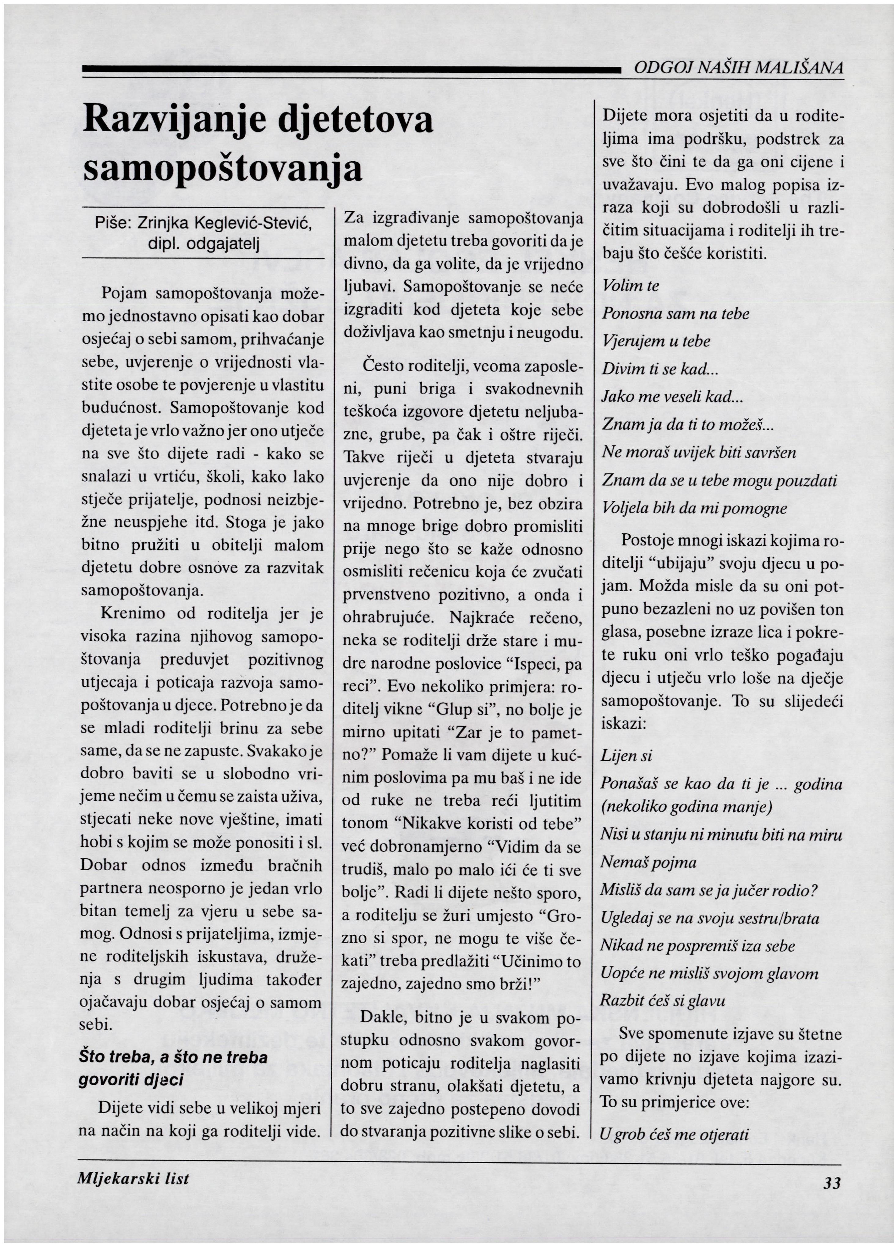 Bitno jeuvijekpostupati prema djetetu s poštovanjem,saslušati strpljivonjegovestavove pa i onda kada se ne slažete s njim.