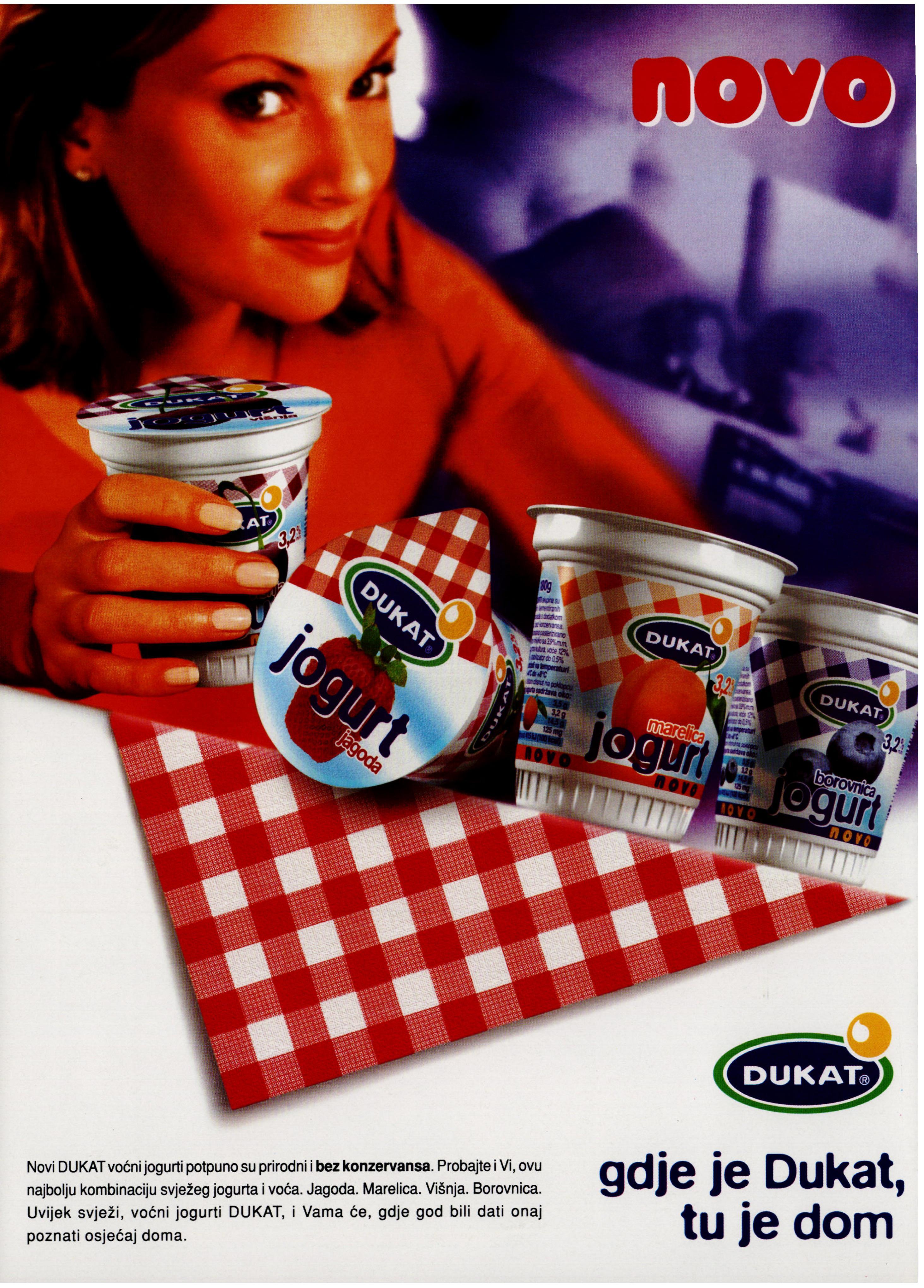 e e Novi DUKAT voćnijogurtipotpuno su prirodni ibez konzervansa ProbajteiVi,ovu g d ) e ) e D u k at 9 najboljukombinacijusvježegjogurta ivoća Jagoda.Marelica Višnja.Borovnica Uvijeksvježi, voćni jogurtiDUKAT, i Vama će, gdjegodbili dati onaj t H d poznatiosjećaj doma u je om