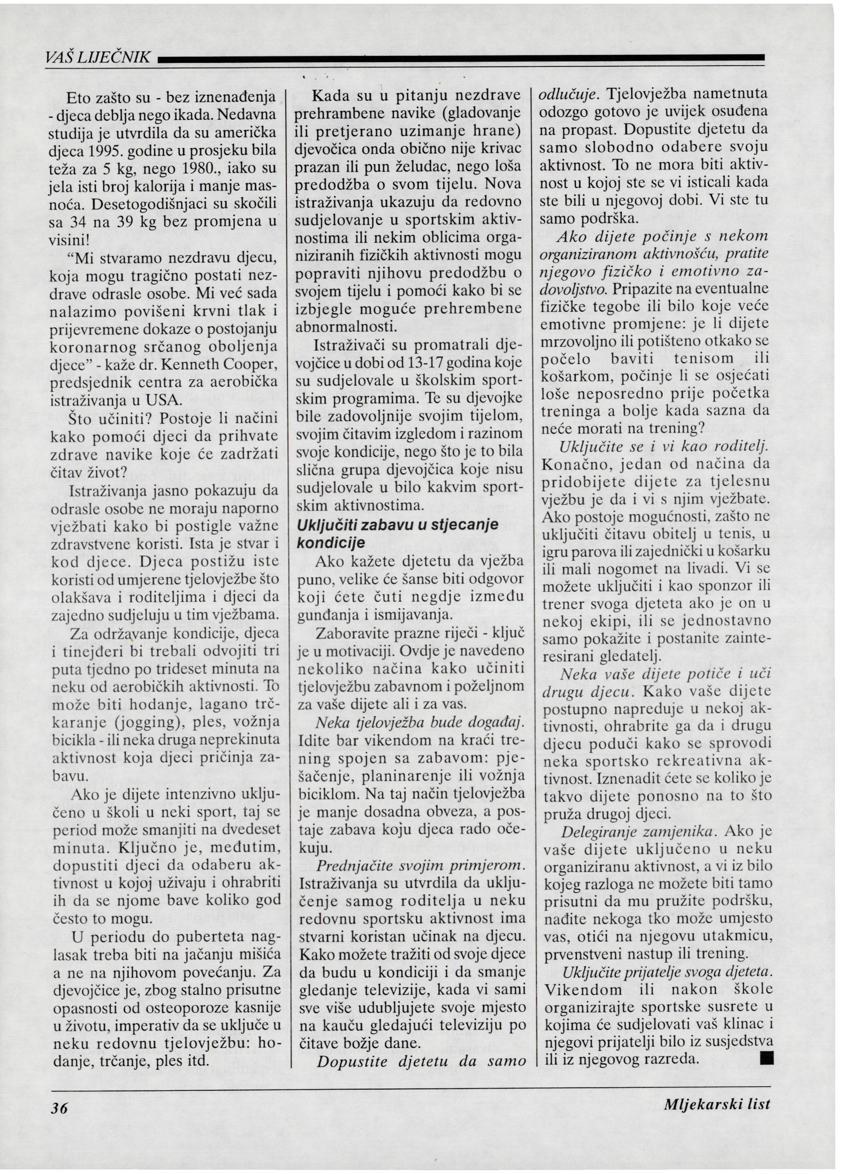 “Mi stvaramo nezdravu djecu, kojamogu tragičnopostati nezdrave odrasle osobe Mi već sada nalazimo povišenikrvni tlak i prijevremene dokaze o postojanju koronarnogsrčanogoboljenja djece" - kaže dr. Kenneth Cooper, predsjednik centra za aerobička istraživanja u USA.