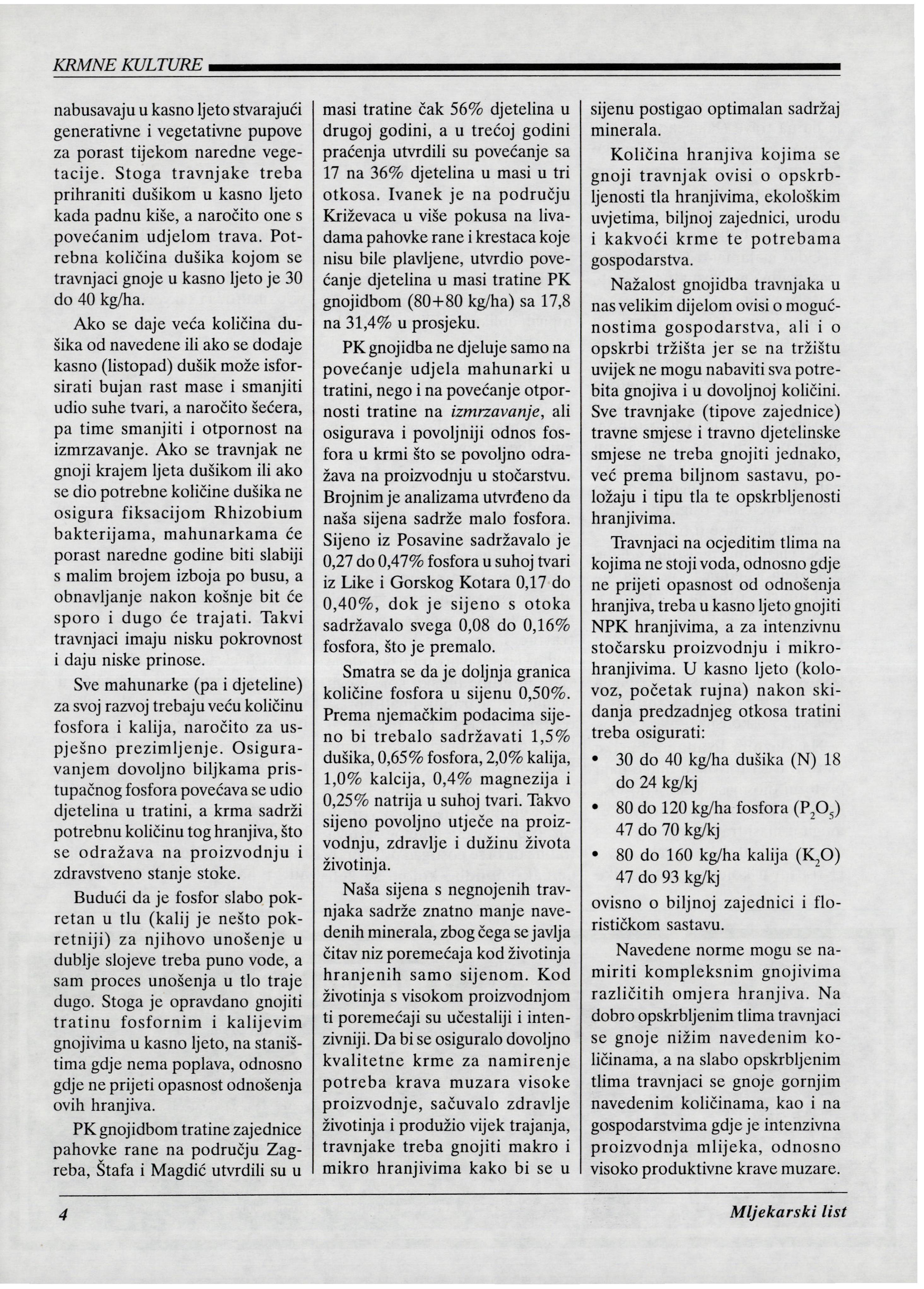 Naša sijena s negnojenih travnjakasadrže znatno manjenavedenih minerala,zbogčega se javlja čitav niz poremećaja kod životinja hranjenih samo sijenom.Kod životinja s visokom proizvodnjom ti poremećaji su učestaliji i intenzivniji. Da bi se osiguralodovoljno kvalitetne krme za namirenje potrebakrava muzara visoke proizvodnje,sačuvalo zdravlje životinja i produžiovijektrajanja, travnjaketreba gnojitimakro i mikro hranjivima kako bi se u