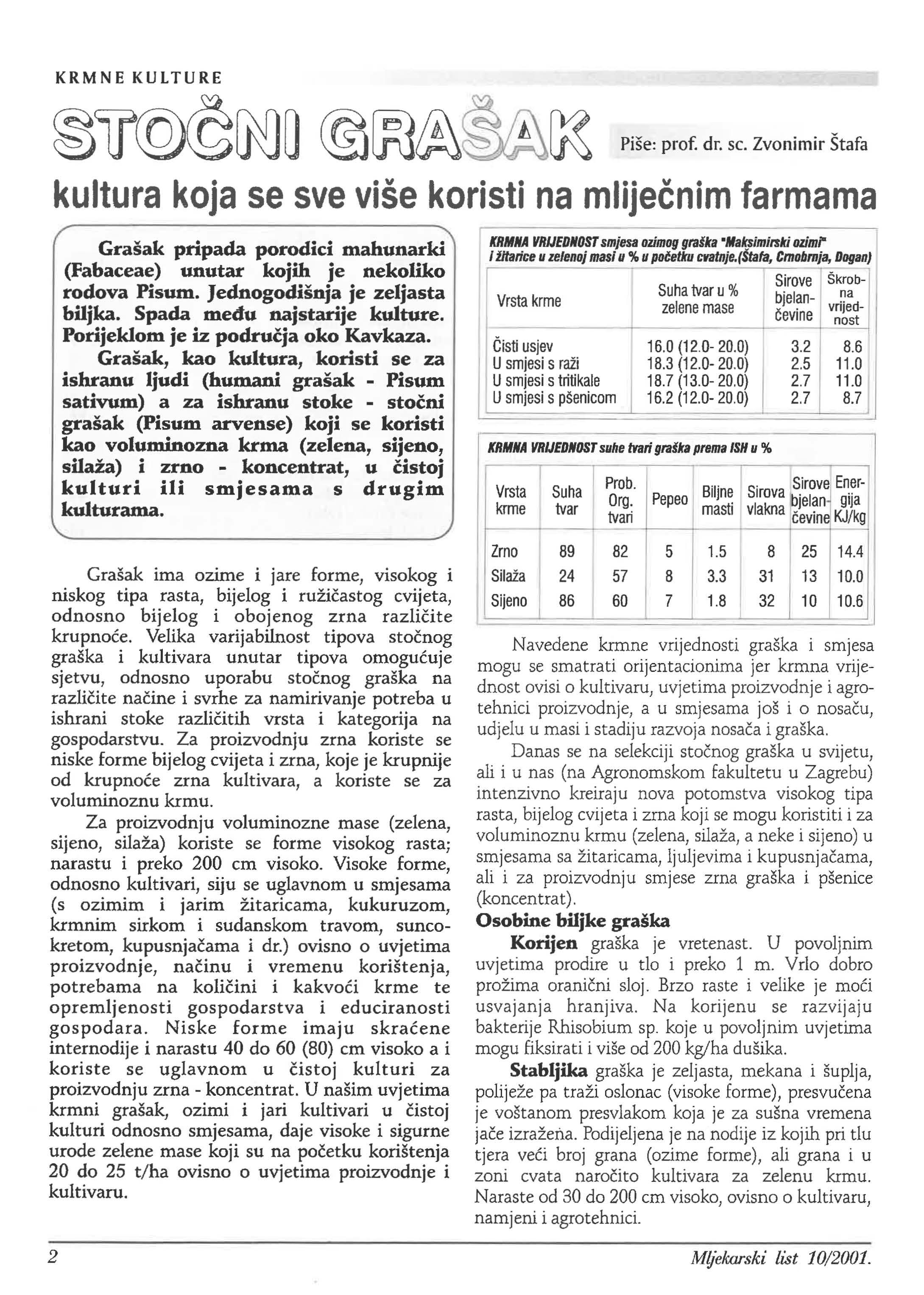 Navedene krmne vrijednosti graška i smjesa mogu se smatrati orijentacionima jer krmna vrijednost ovisi o kultivaru, uvjetima proizvodnje i agrotehnici proizvodnje, a u smjesama još i o udjelu u masi i stadiju razvoja i graška.