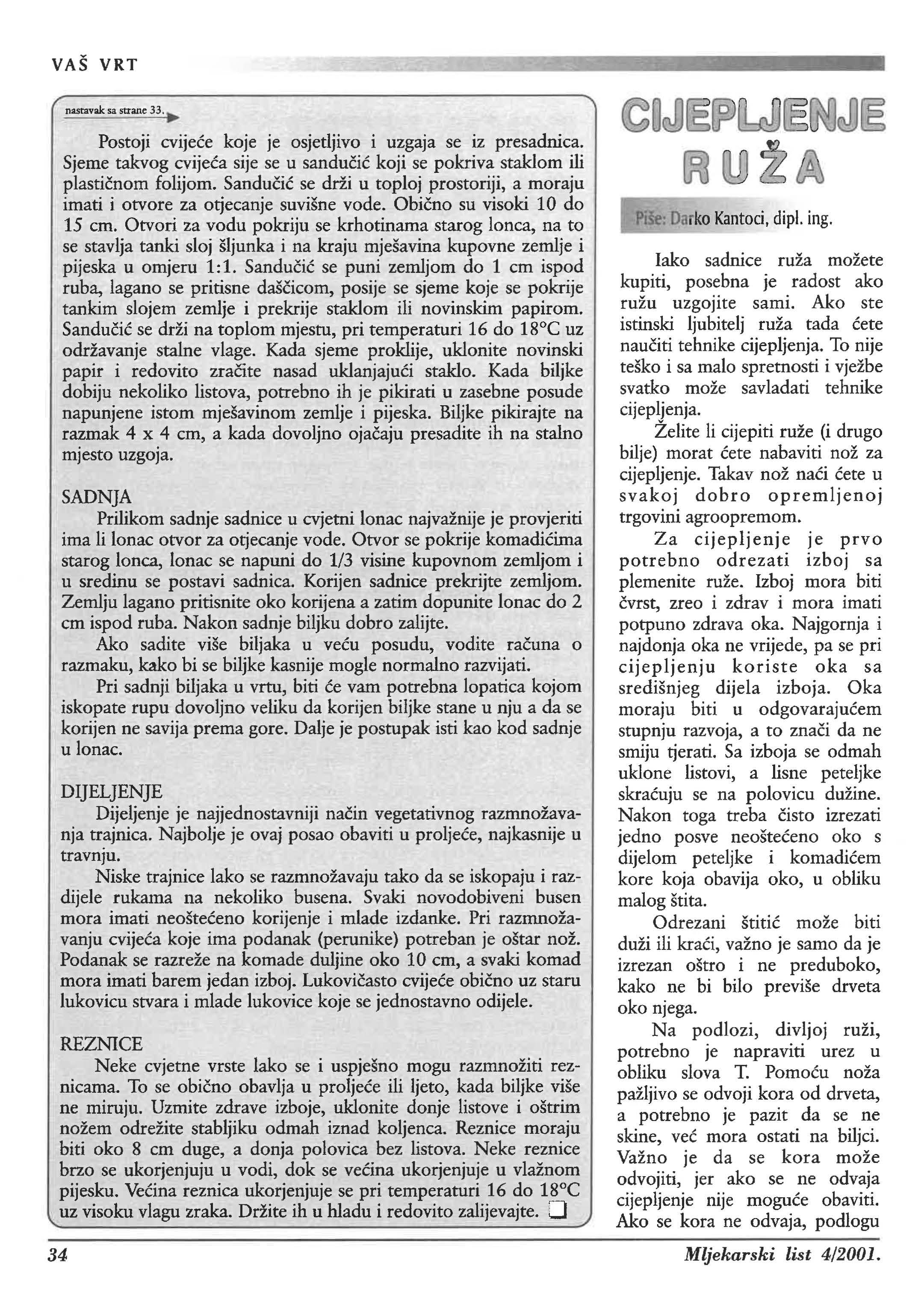 Iako sadnice ruža možete kupiti, posebna je radost ako ružu uzgojite sami. Ako ste istinski ljubitelj ruža tada tehnike cijepljenja. To nije teško i sa malo spretnosti i vježbe svatko može savladati tehnike cijepljenja.