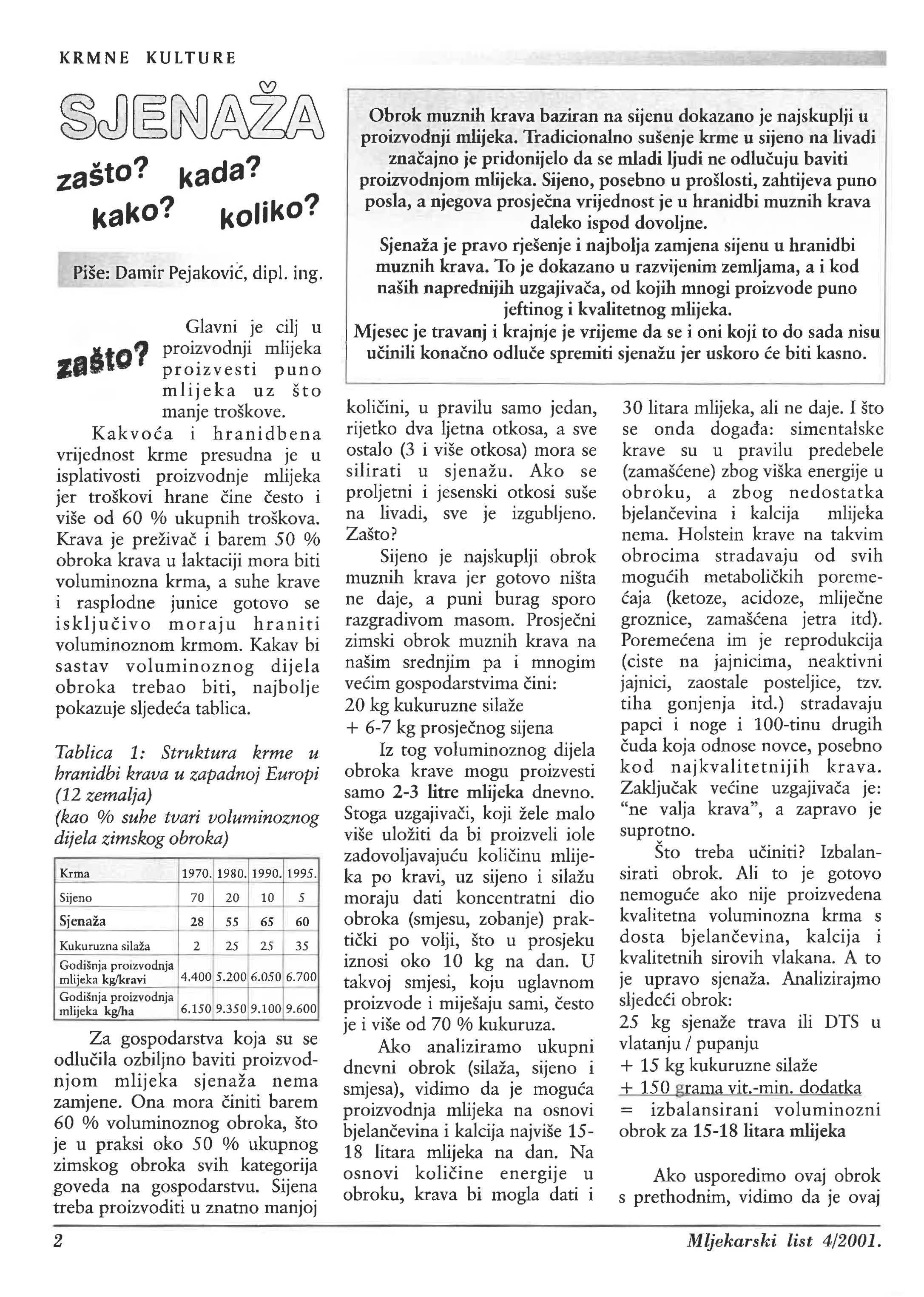 U ovom je u detalje samog spremanJa sjenaže pa navesti samo najvažnije Mljekarski list 4/2001.