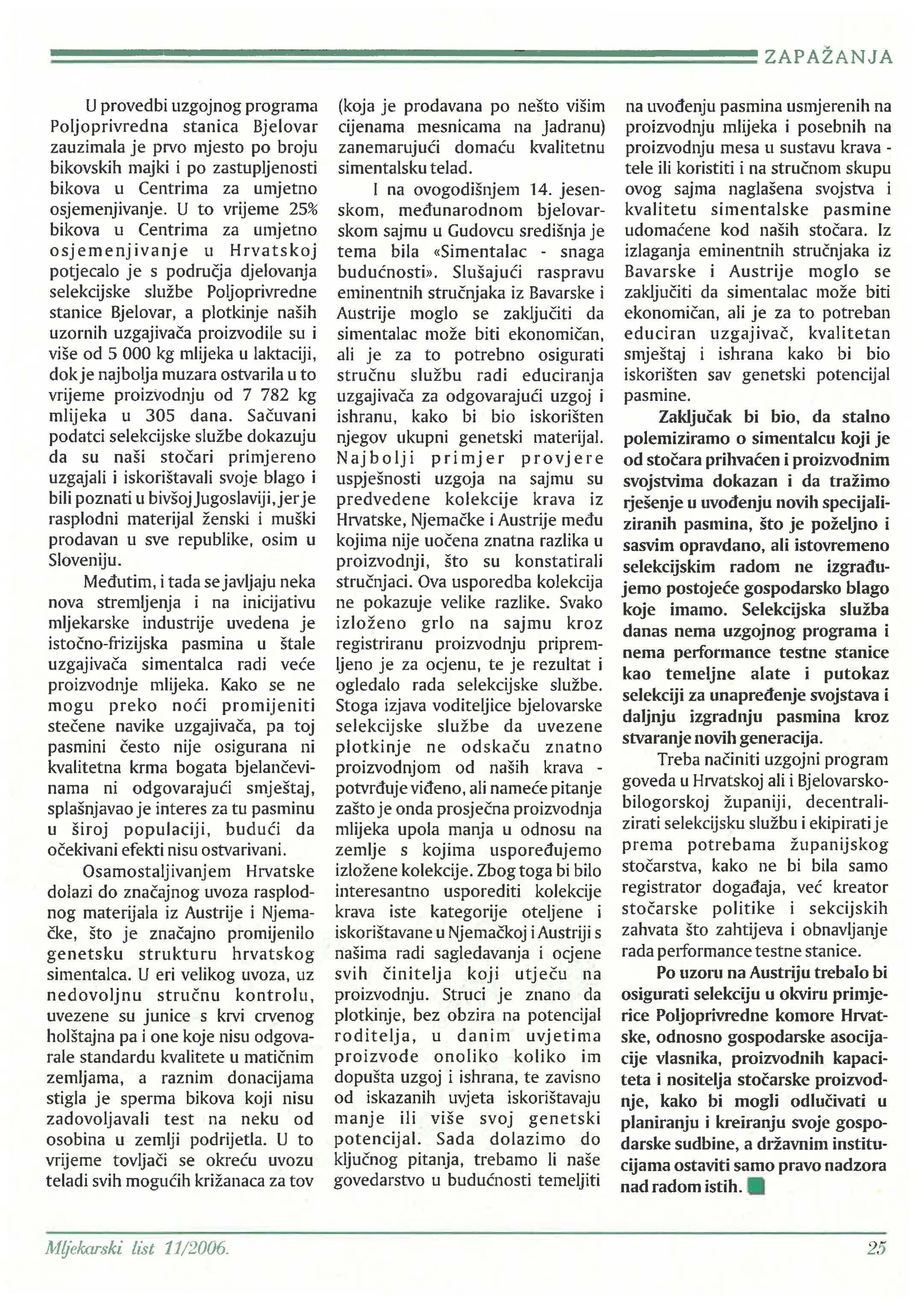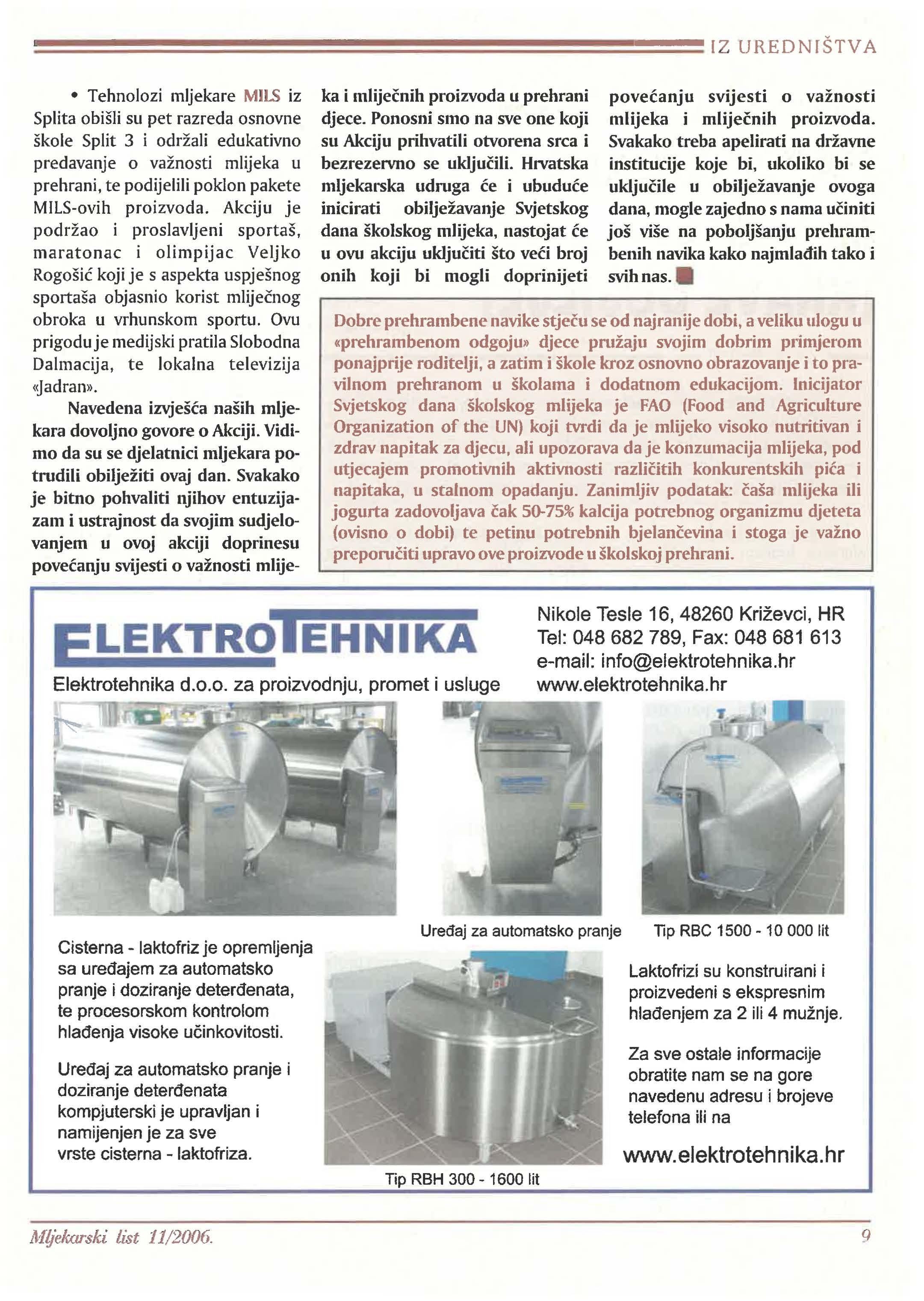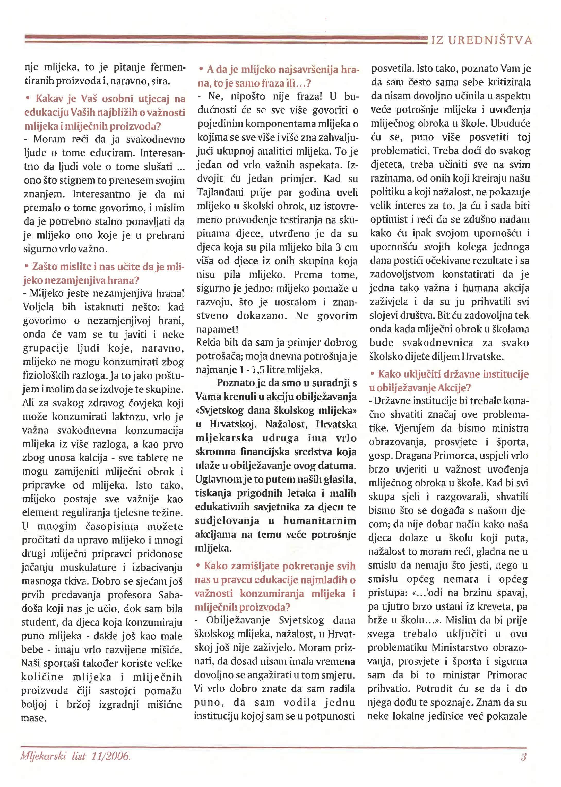3. problematika djelatnost, obilježavanje 7. svjetskog dana školskog mlijeka, putovanje suradnika Mljekarskog lista u Sloveniju).
