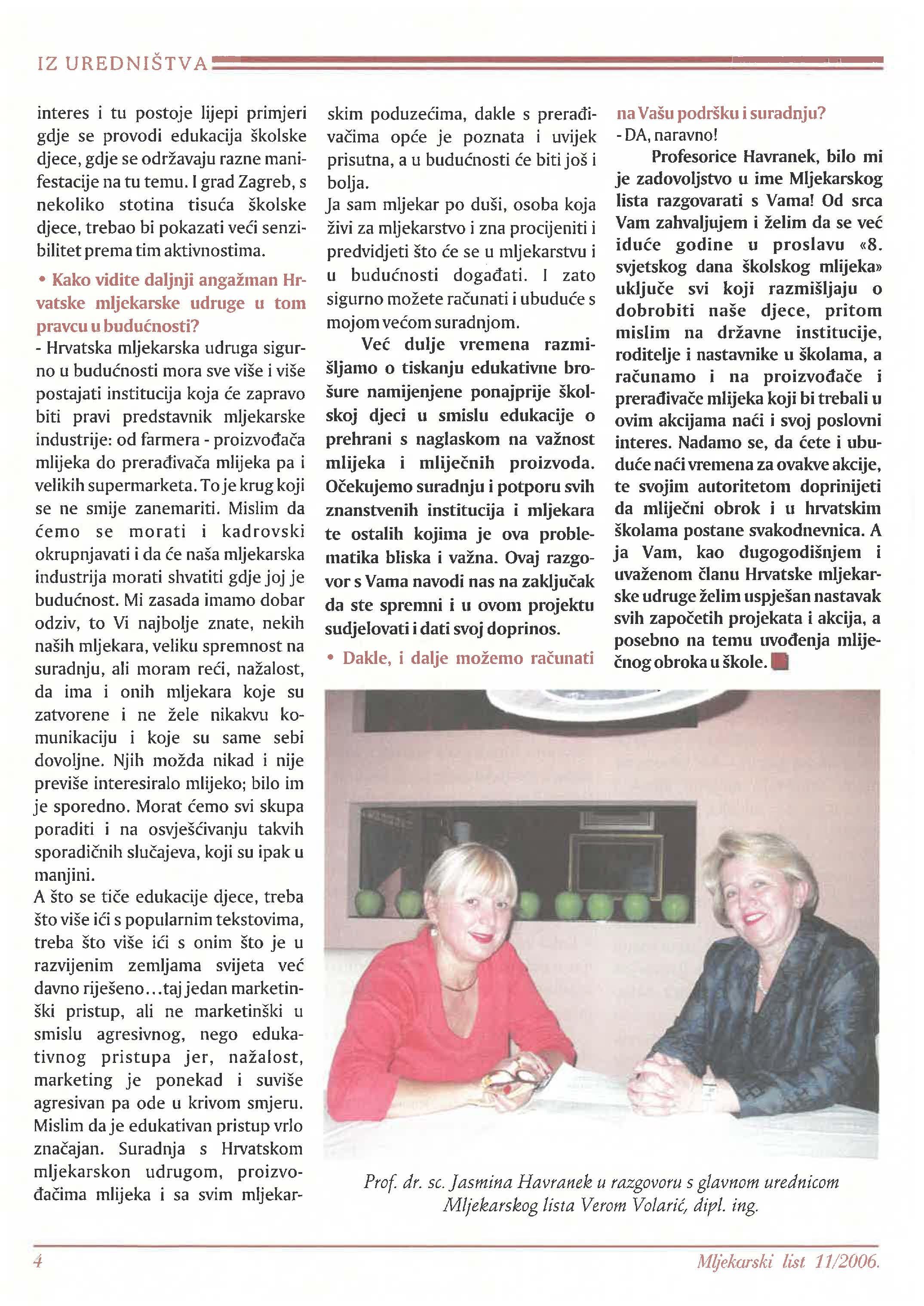 Prof dr. se.jasmina Havranek u razgovorus glavnom urednicom Mljekarskog lista Verom dipl. ing.
